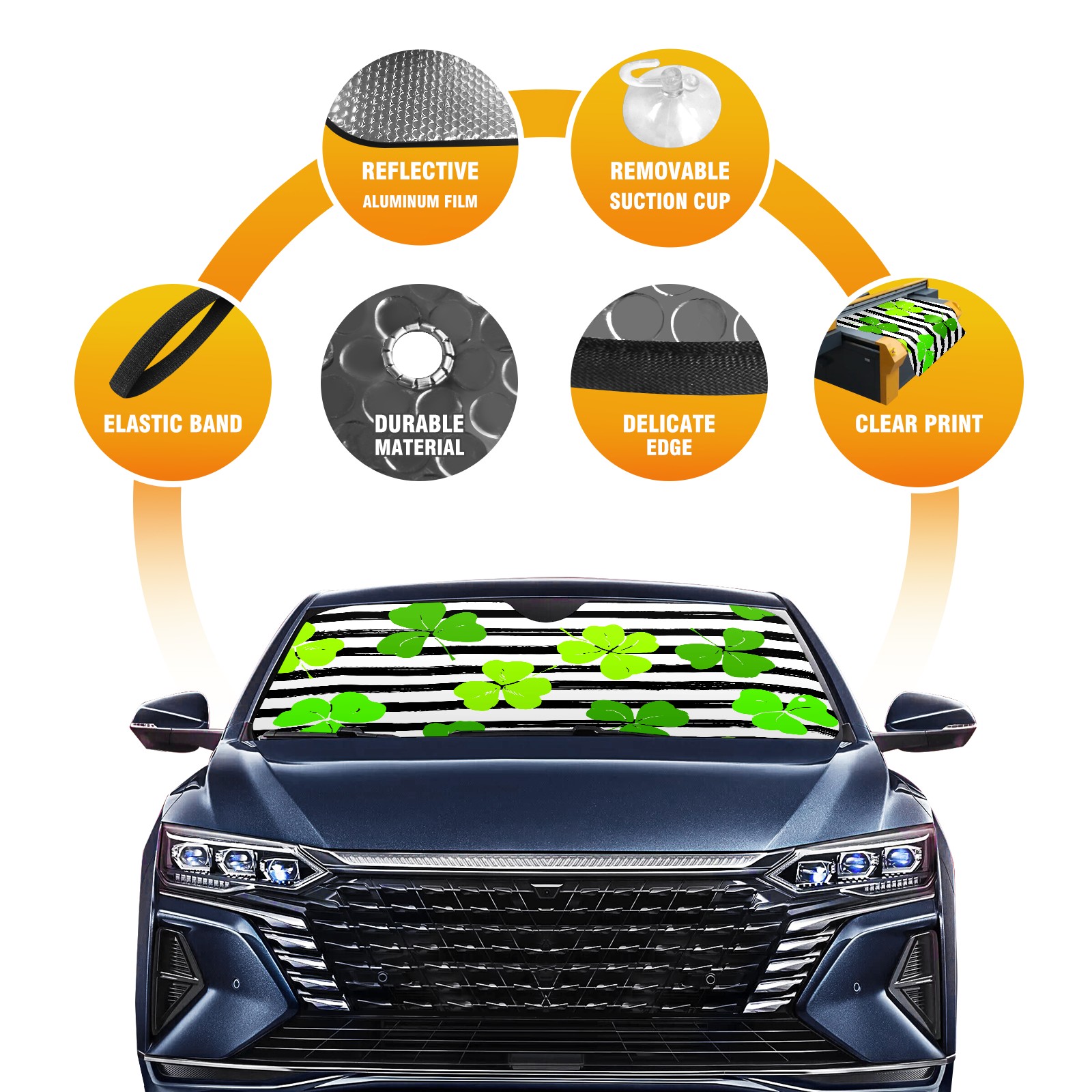 Aluminum foil polyester car sunshade pad, efficient heat insulation and sun protection artifactStripe Luck Leave