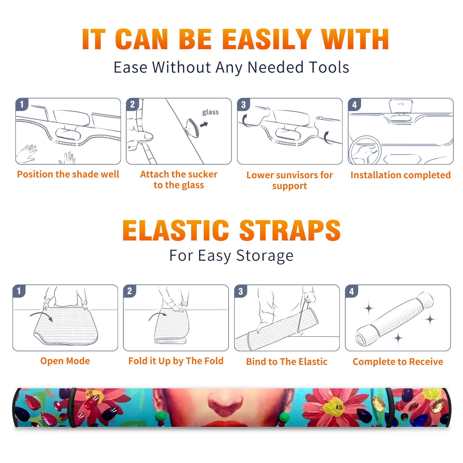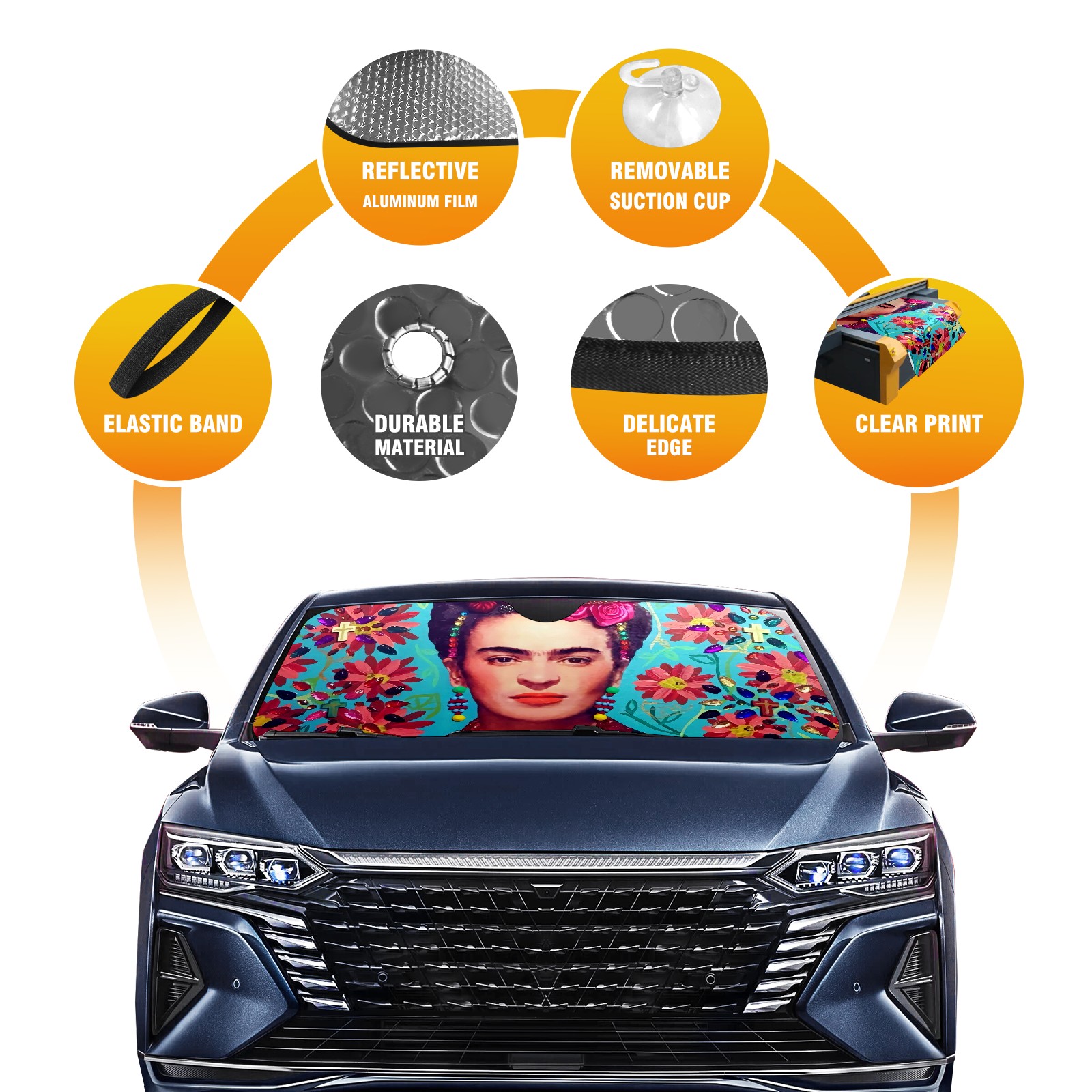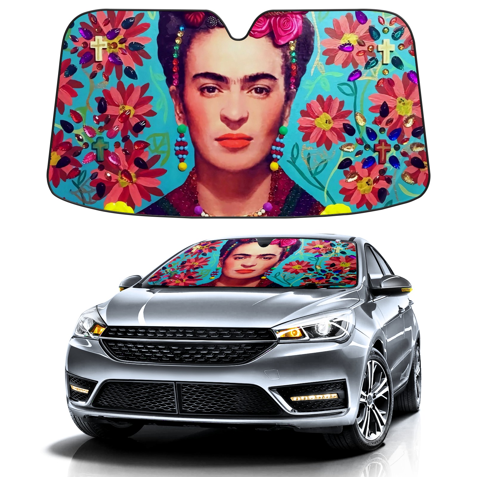 Aluminum foil polyester car sunshade pad, efficient heat insulation and sun protection artifactFrida Kahlo With Flower Portrait