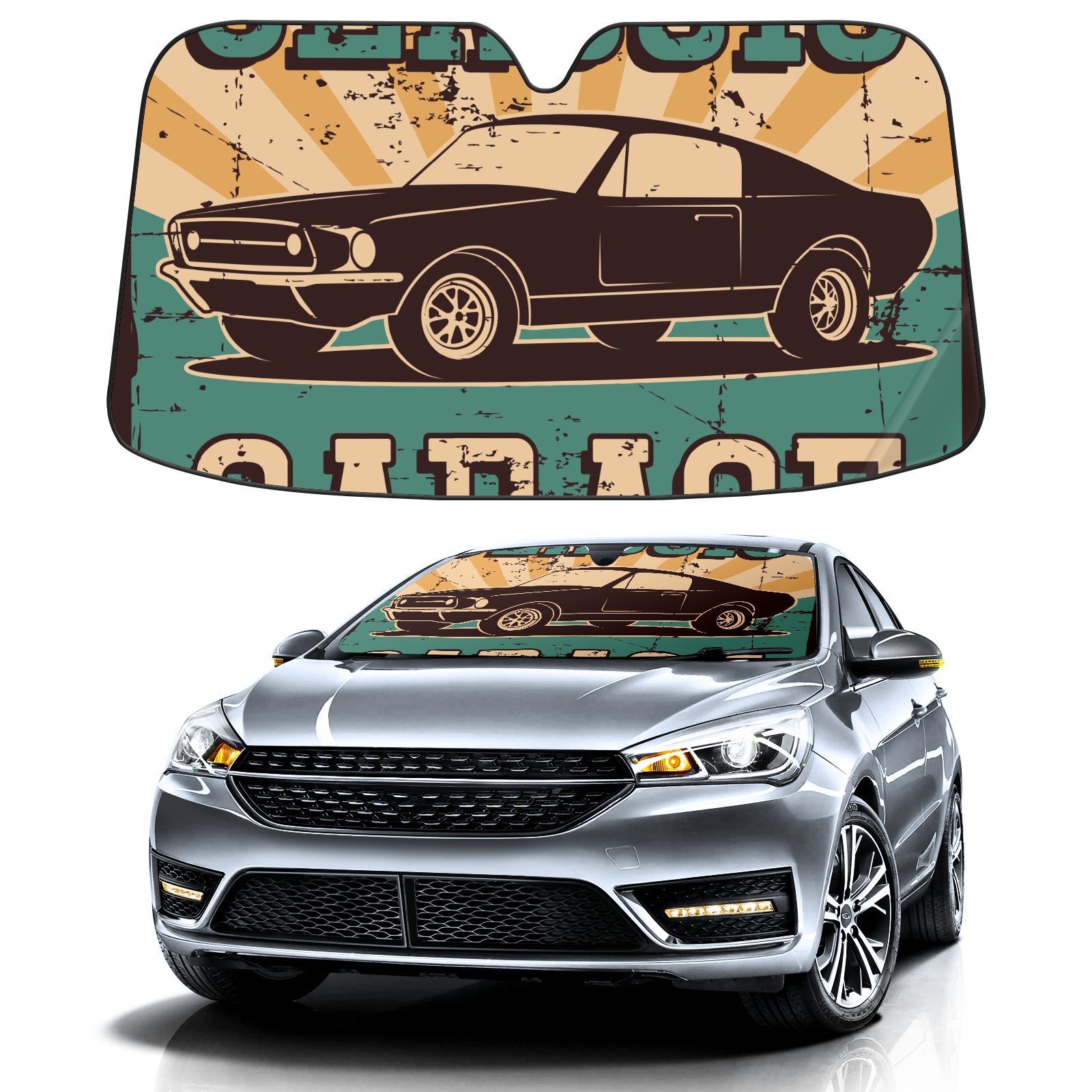 Aluminum foil polyester car sunshade pad, efficient heat insulation and sun protection artifactVintage Classic Race Car Green