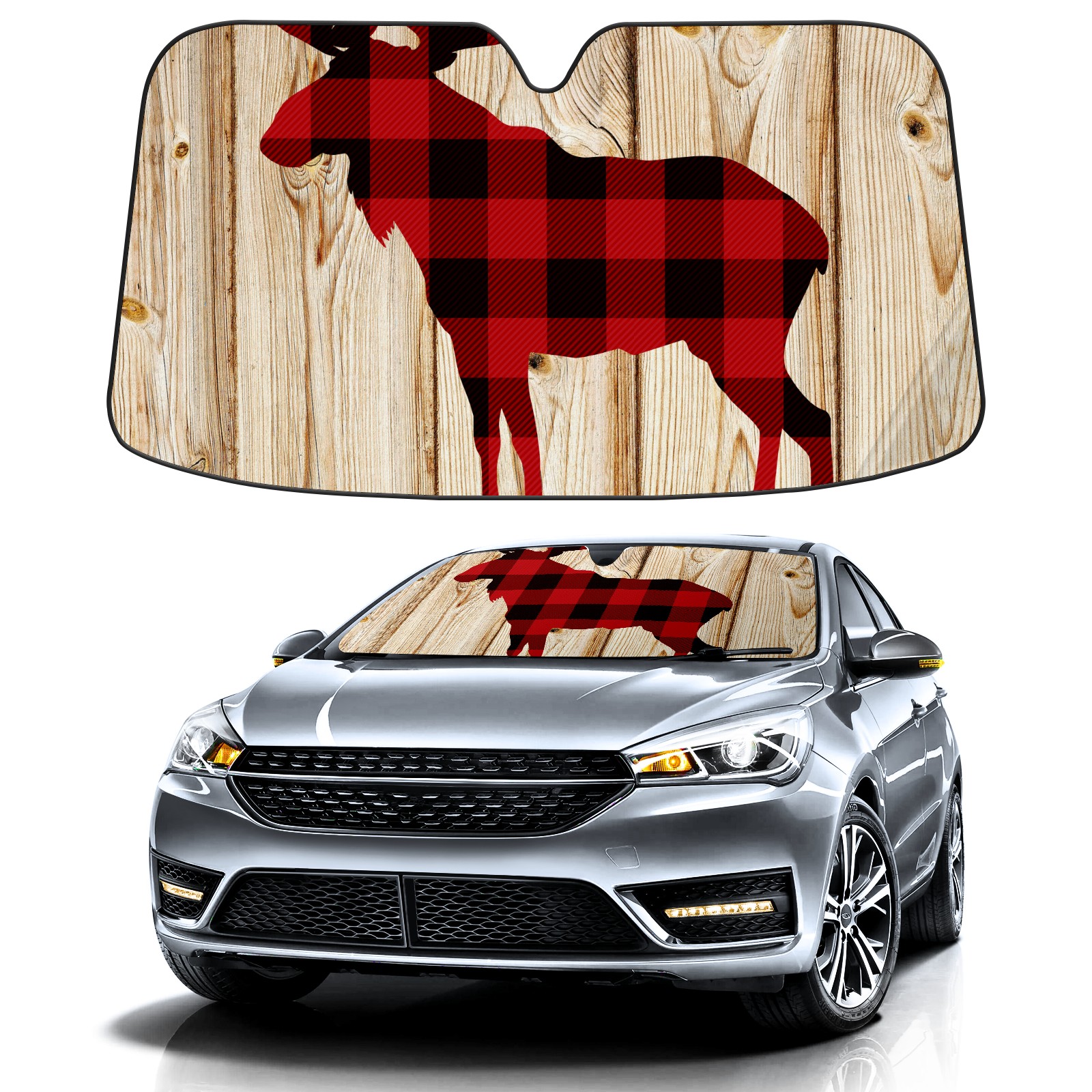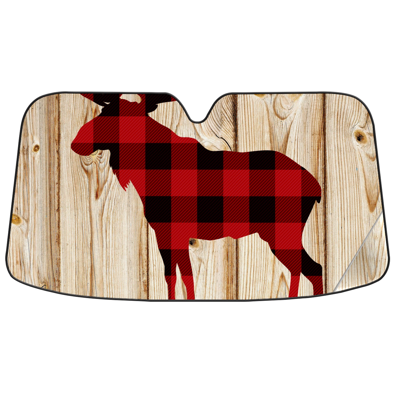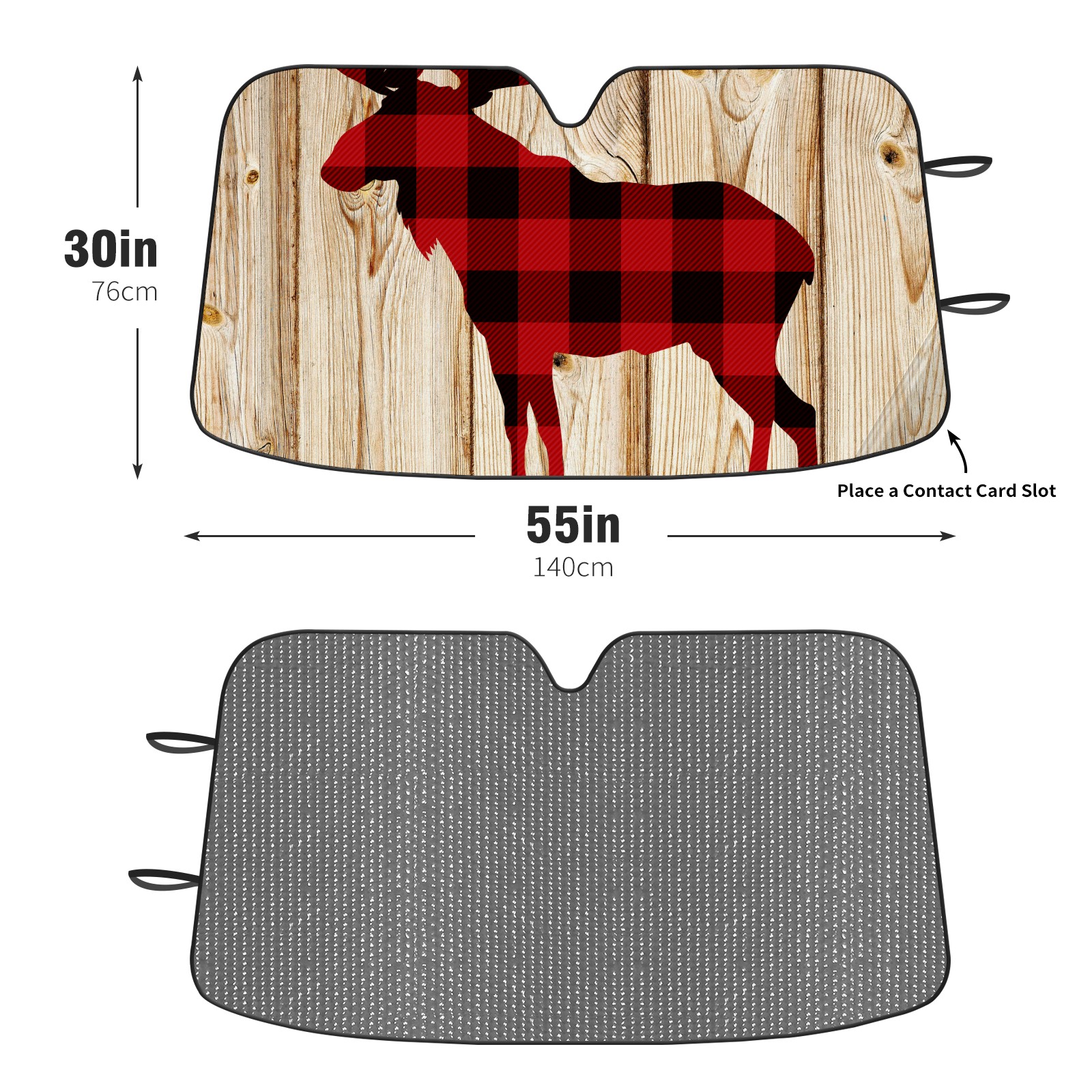 Aluminum foil polyester car sunshade pad, efficient heat insulation and sun protection artifactOld Wood Plaid Deer Cute