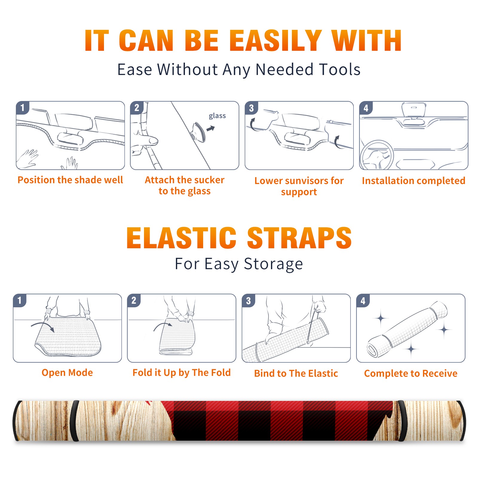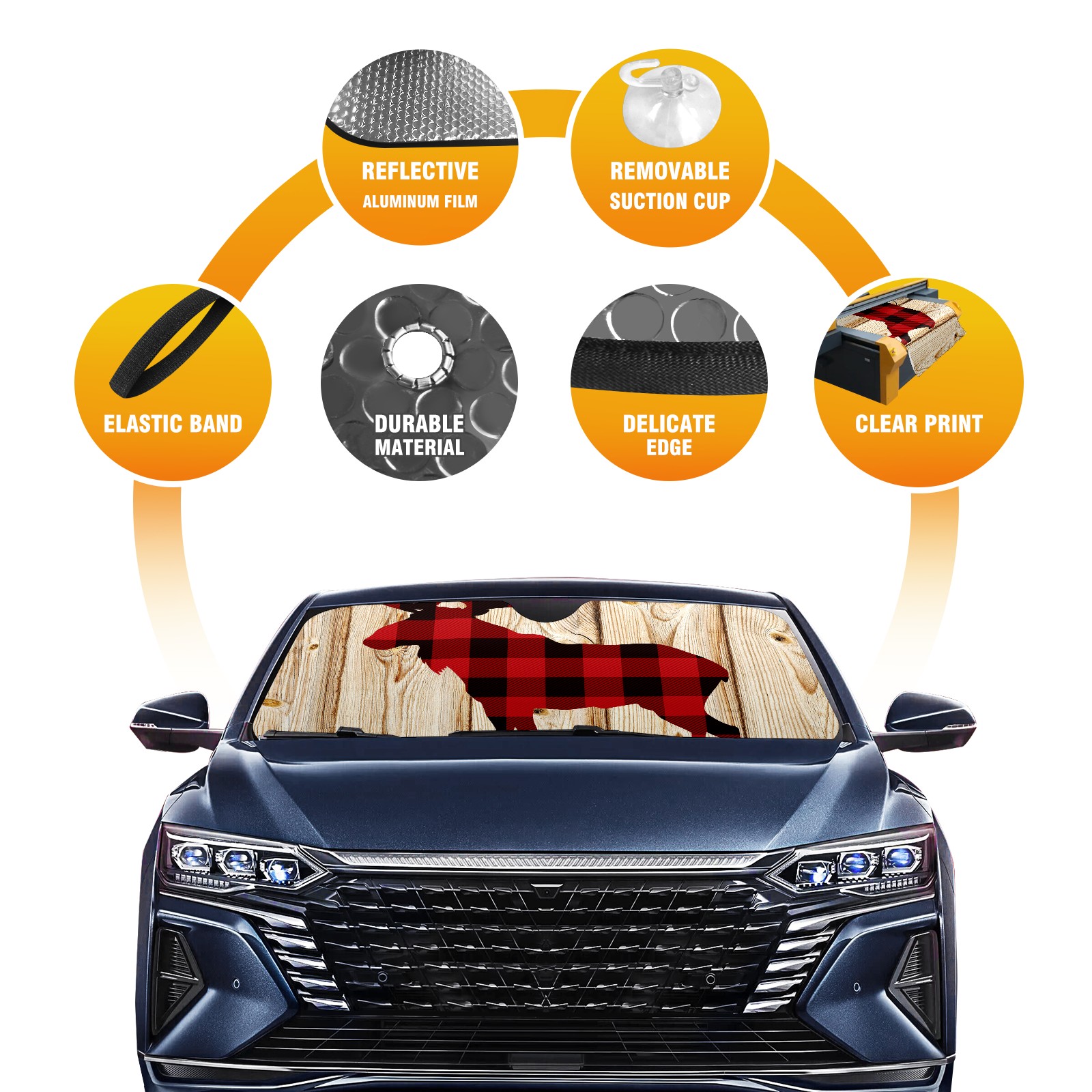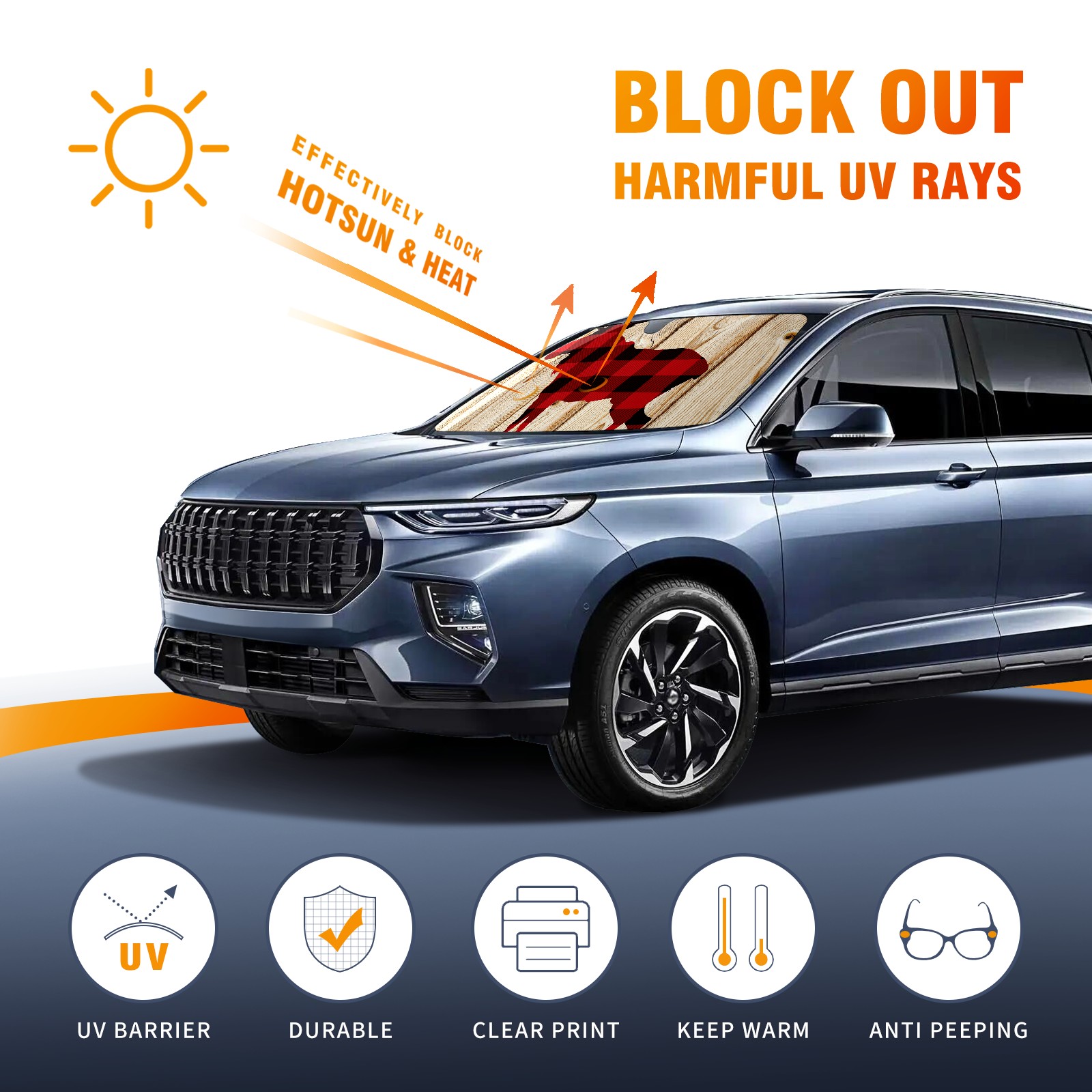 Aluminum foil polyester car sunshade pad, efficient heat insulation and sun protection artifactOld Wood Plaid Deer Cute