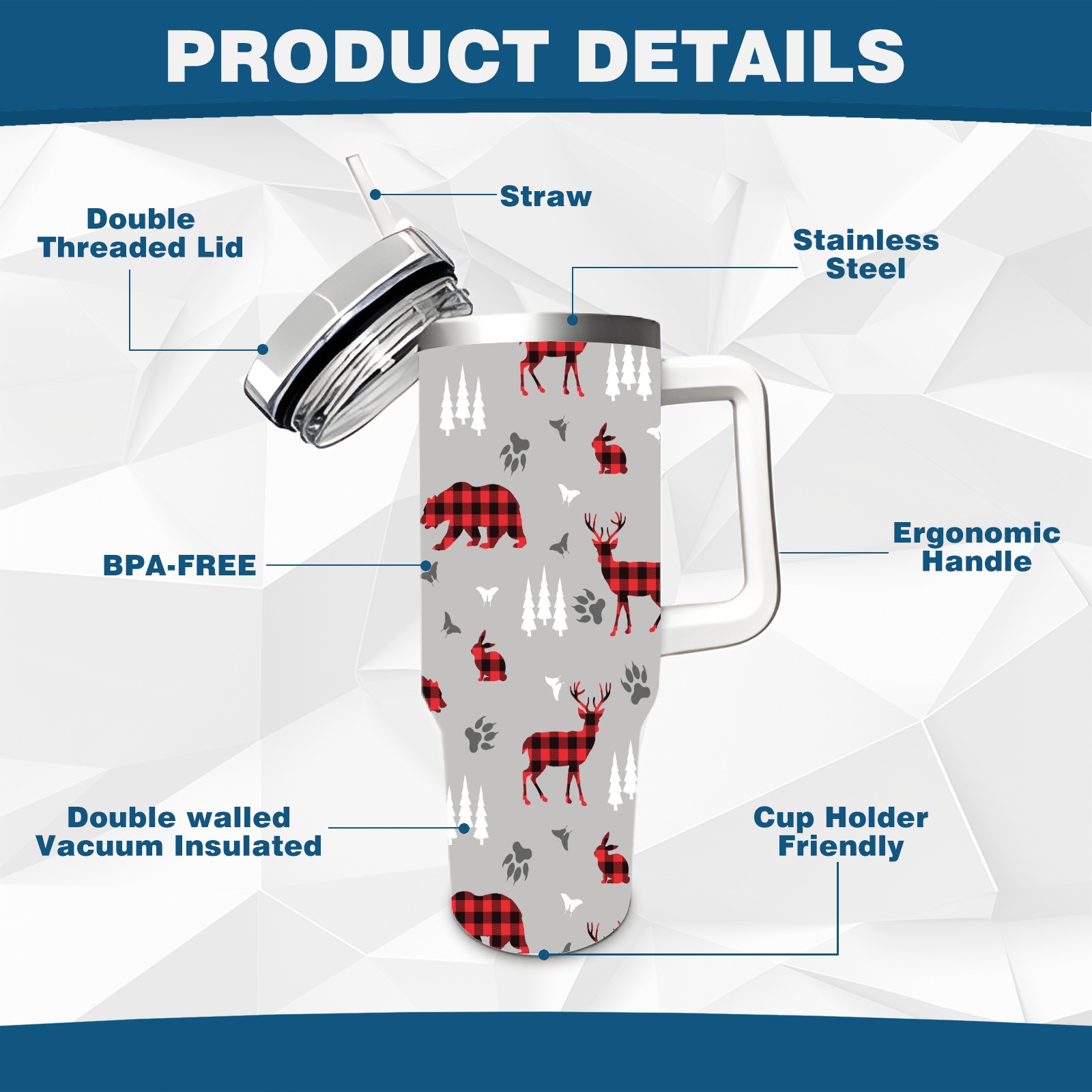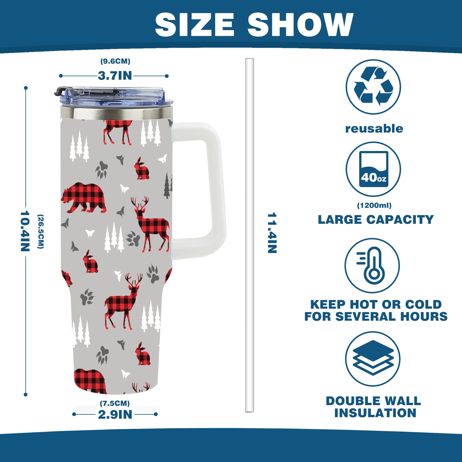 • <p>With a large 40oz capacity, it keeps you hydrated throughout the day, ideal for water, coffee, juice, or other beverages. Its ergonomic design fits seamlessly into car cup holders, complemented by a secure, leak-resistant lid to minimize spills during travel. The non-slip base ensures stability, while the smooth surfaces make cleaning a breeze—simply wash by hand or toss in the dishwasher (top rack recommended).</p>