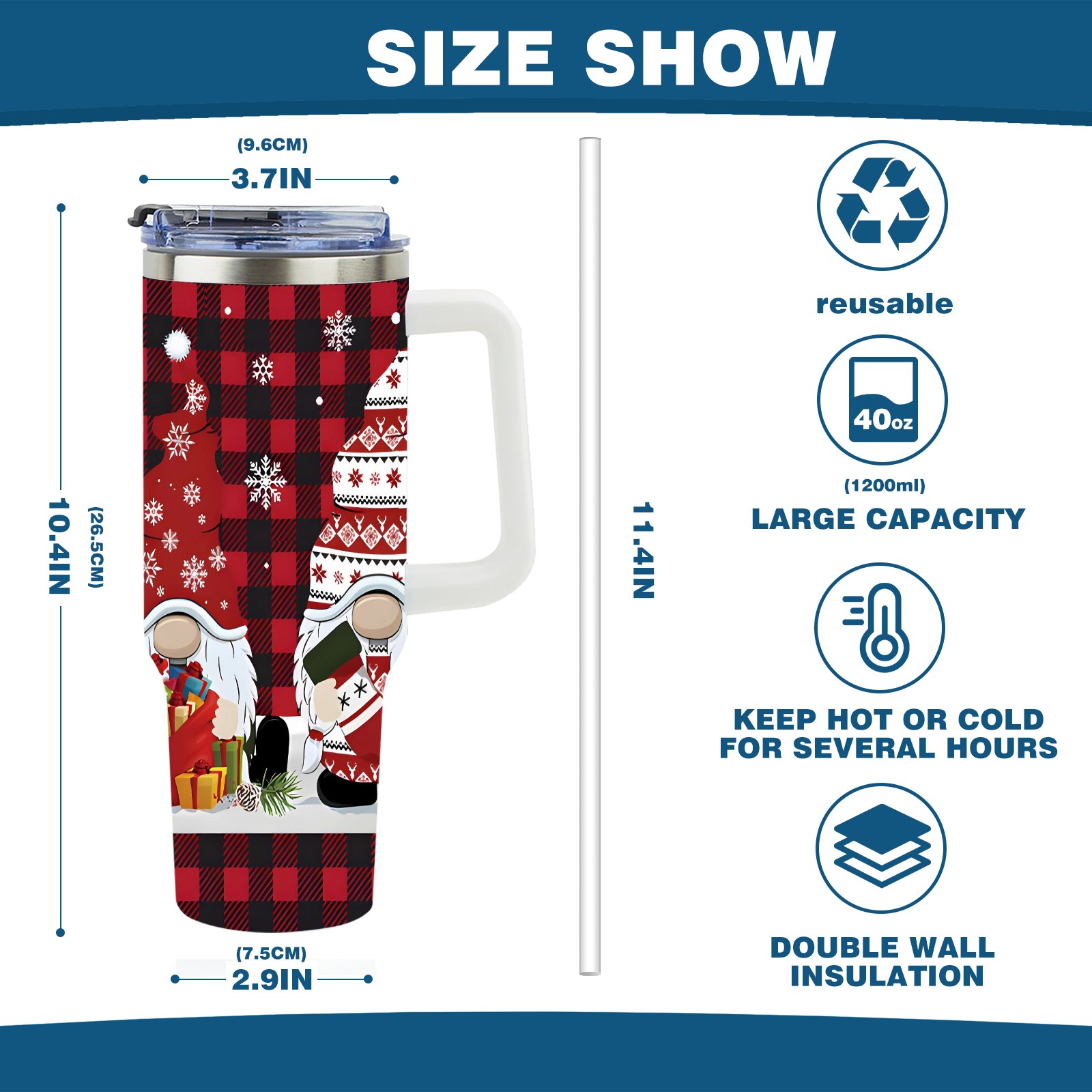 <p>With a large 40oz capacity, it keeps you hydrated throughout the day, ideal for water, coffee, juice, or other beverages. Its ergonomic design fits seamlessly into car cup holders, complemented by a secure, leak-resistant lid to minimize spills during travel. The non-slip base ensures stability, while the smooth surfaces make cleaning a breeze—simply wash by hand or toss in the dishwasher (top rack recommended).</p>