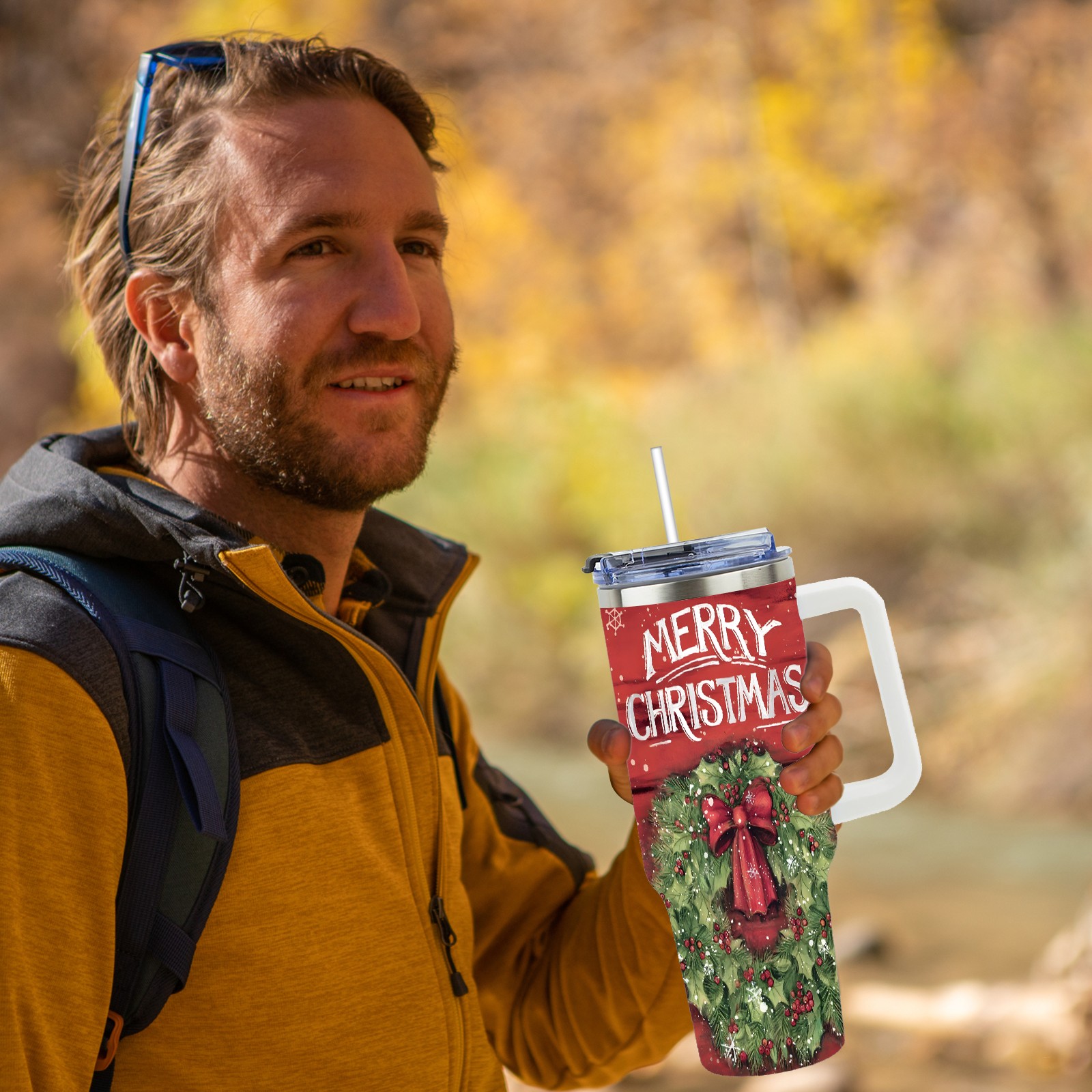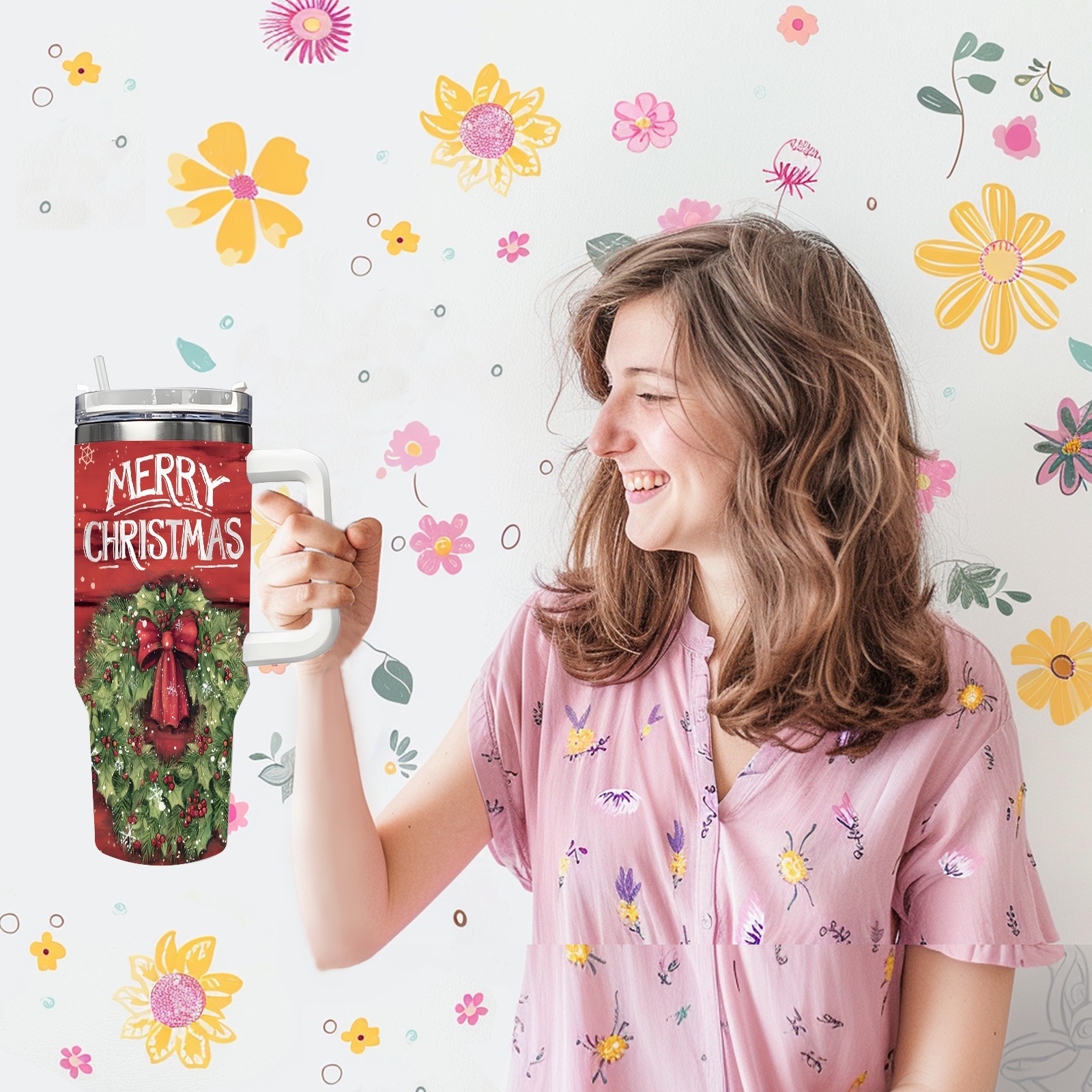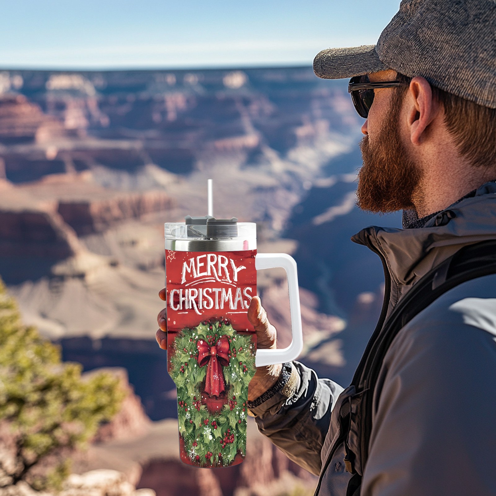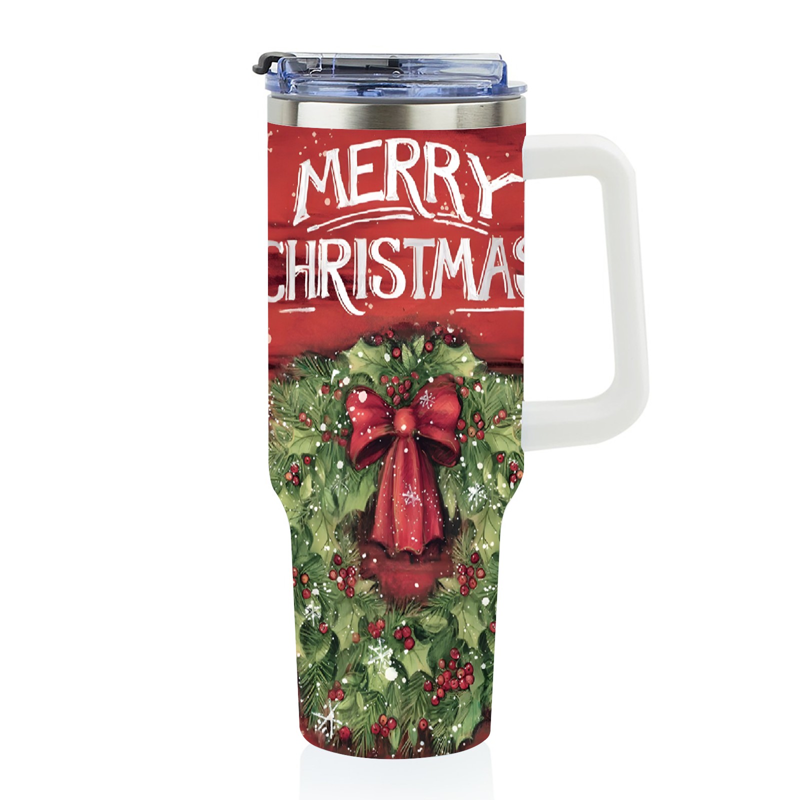 40oz Fully Printed Car Cup – Stylish Large-Capacity Tumbler with UV Printing TechnologyChristmas-wreath