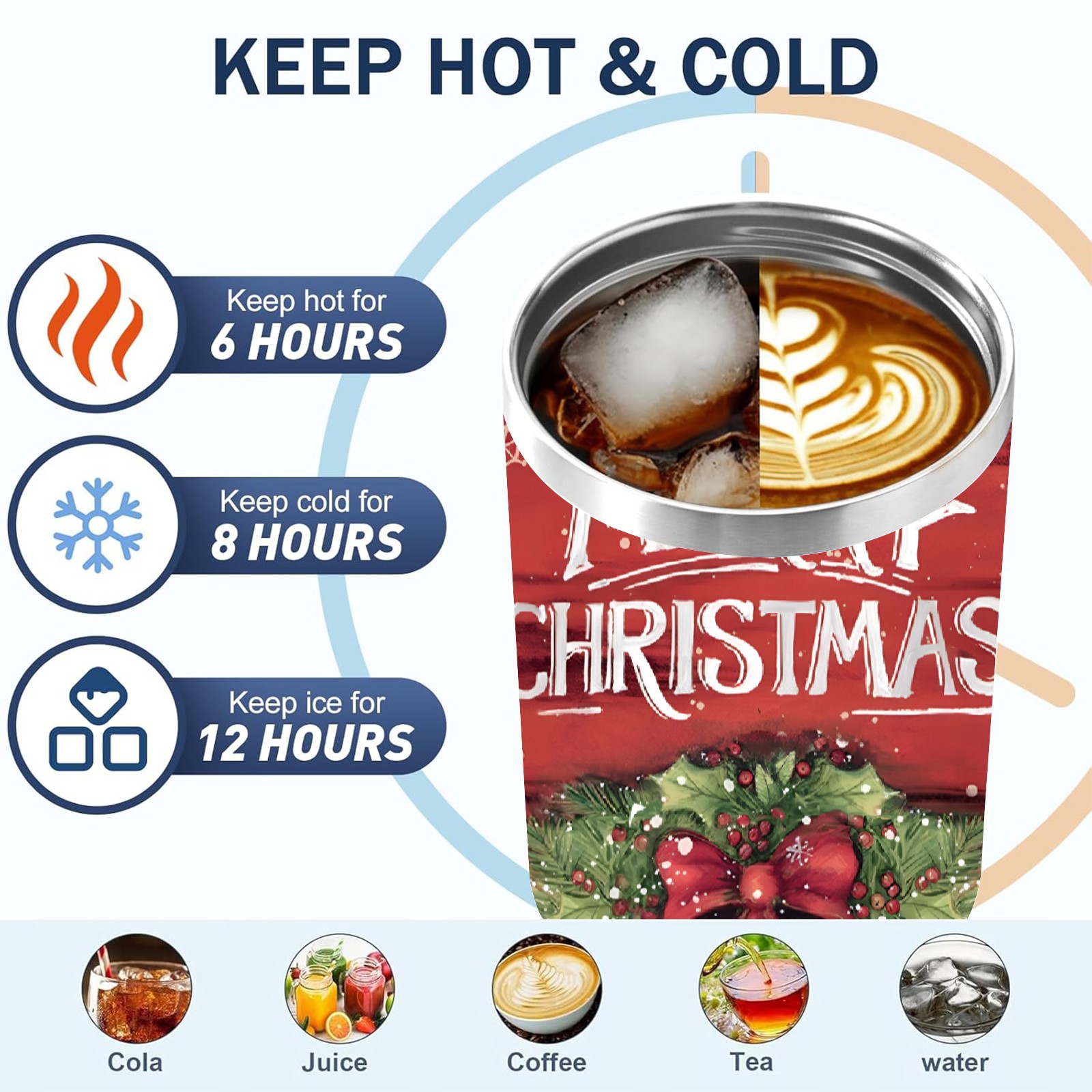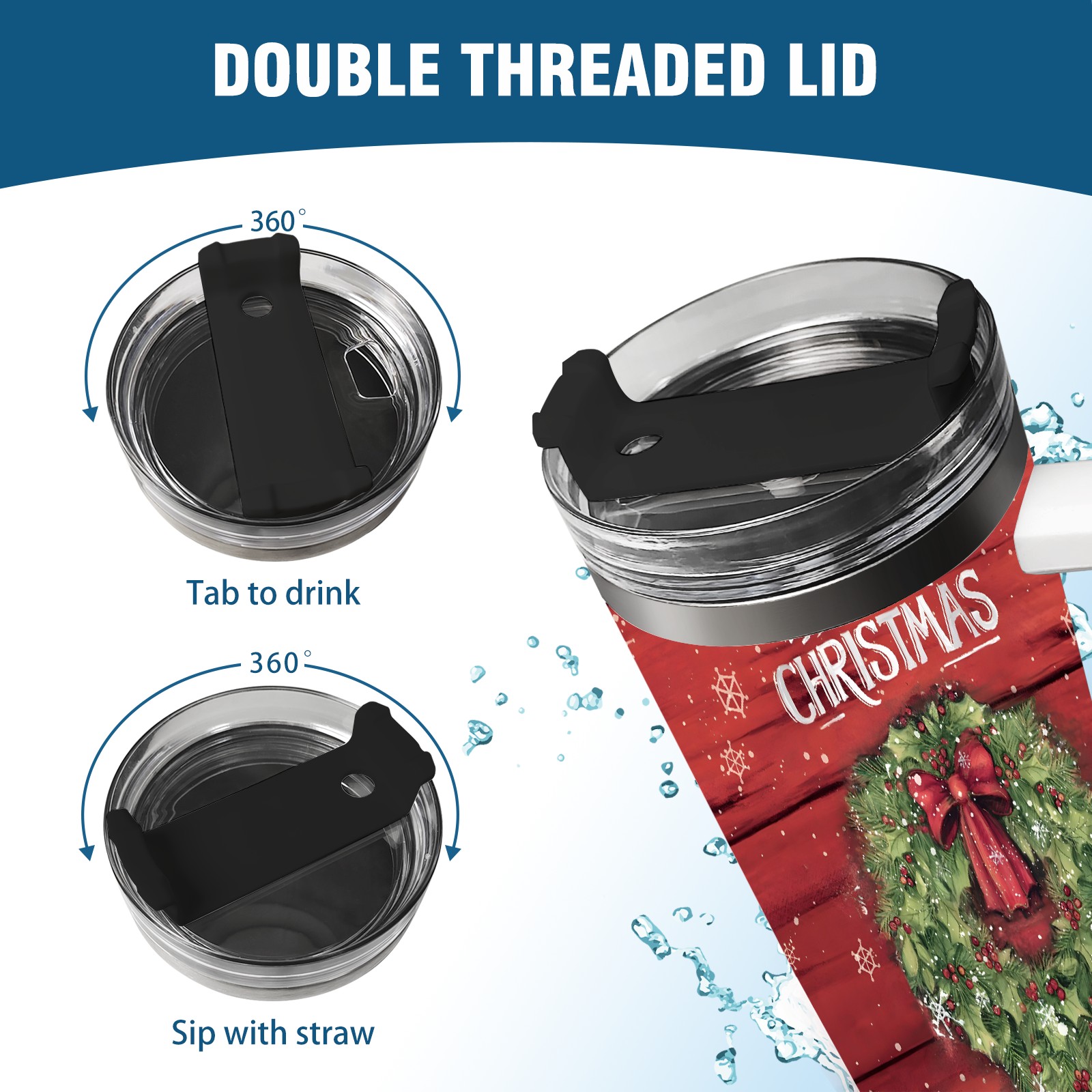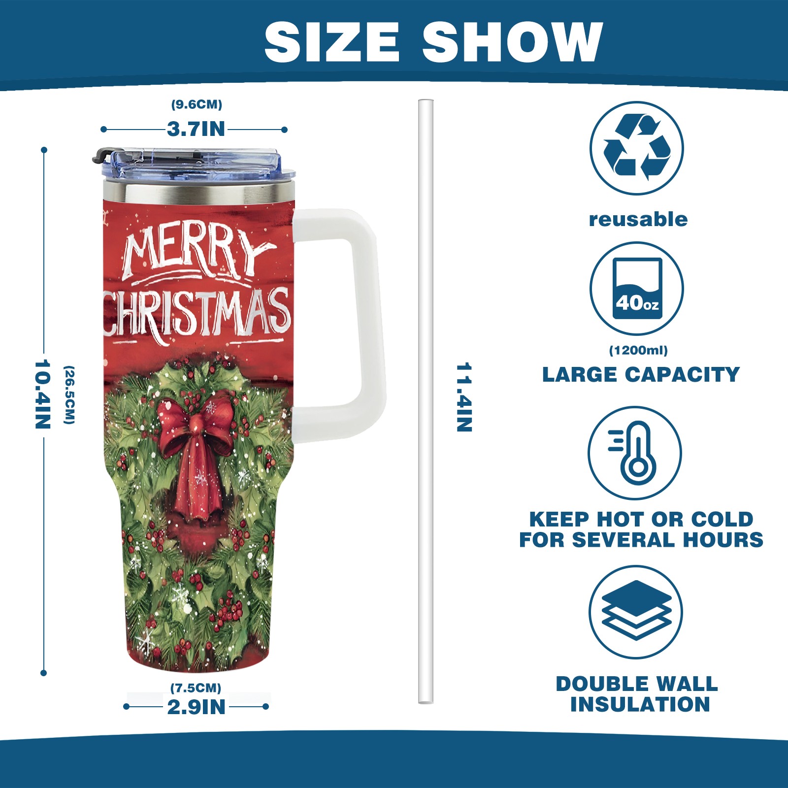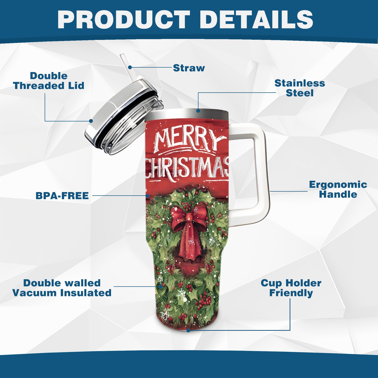 40oz Fully Printed Car Cup – Stylish Large-Capacity Tumbler with UV Printing TechnologyChristmas-wreath