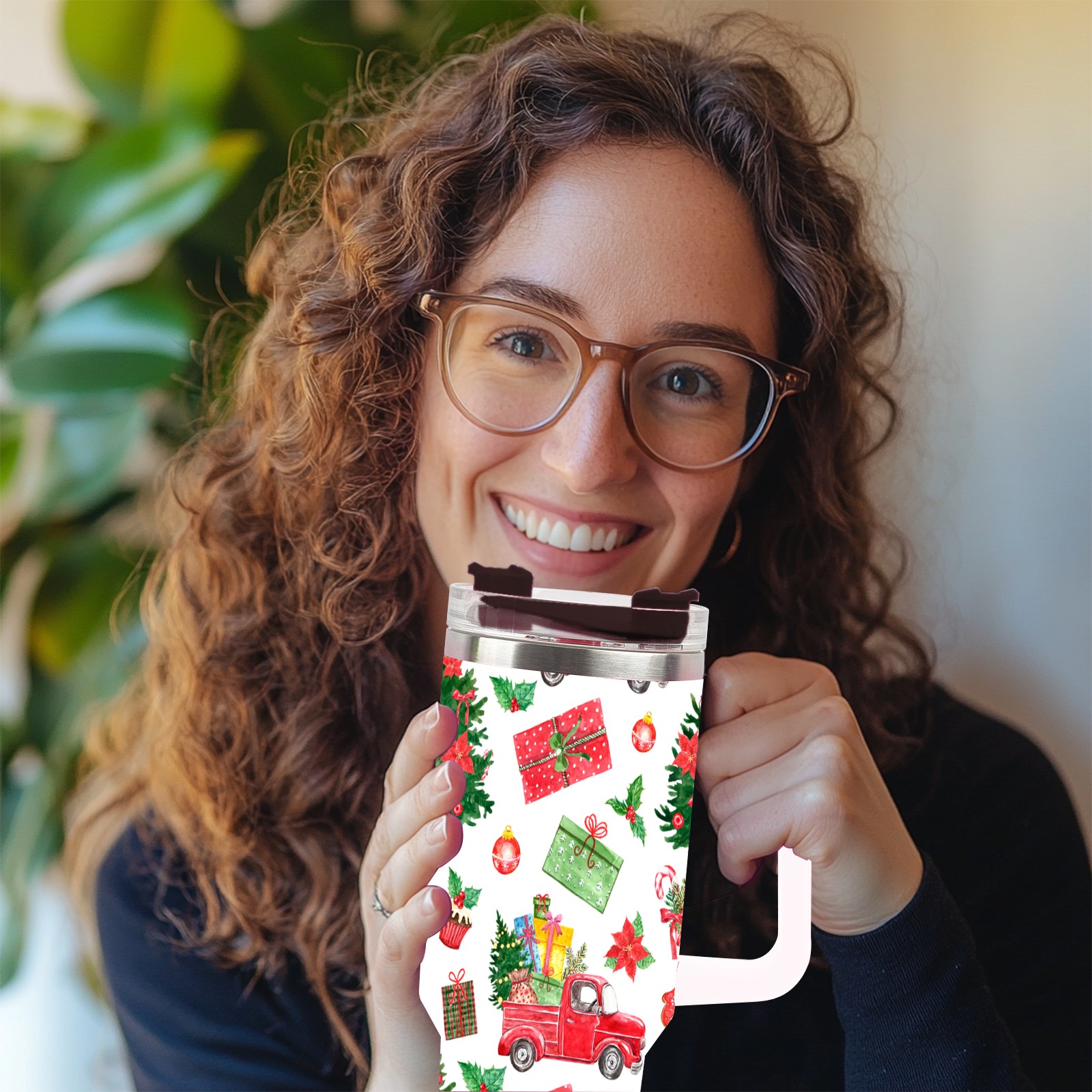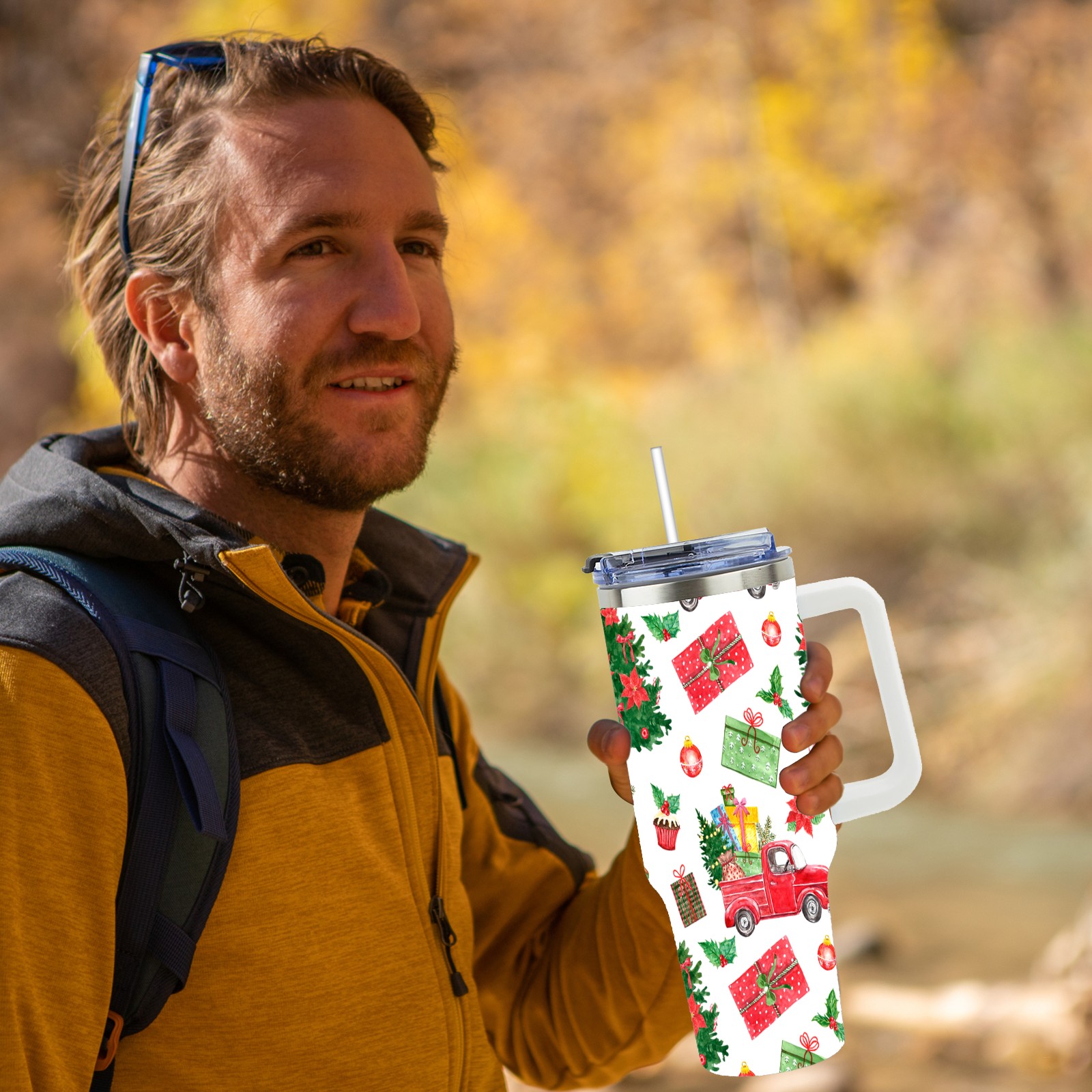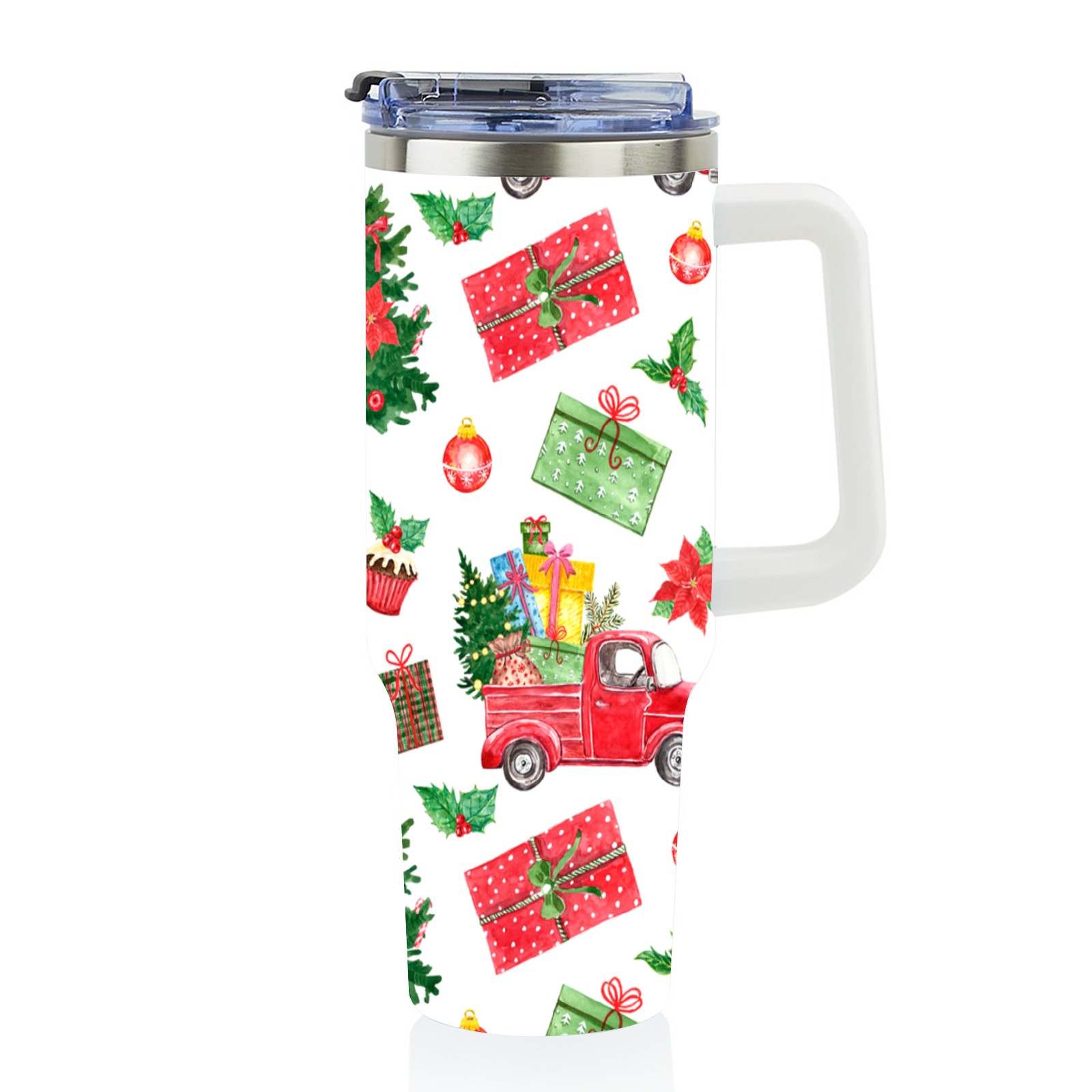 40oz Fully Printed Car Cup – Stylish Large-Capacity Tumbler with UV Printing TechnologyColorful Winter Christmas