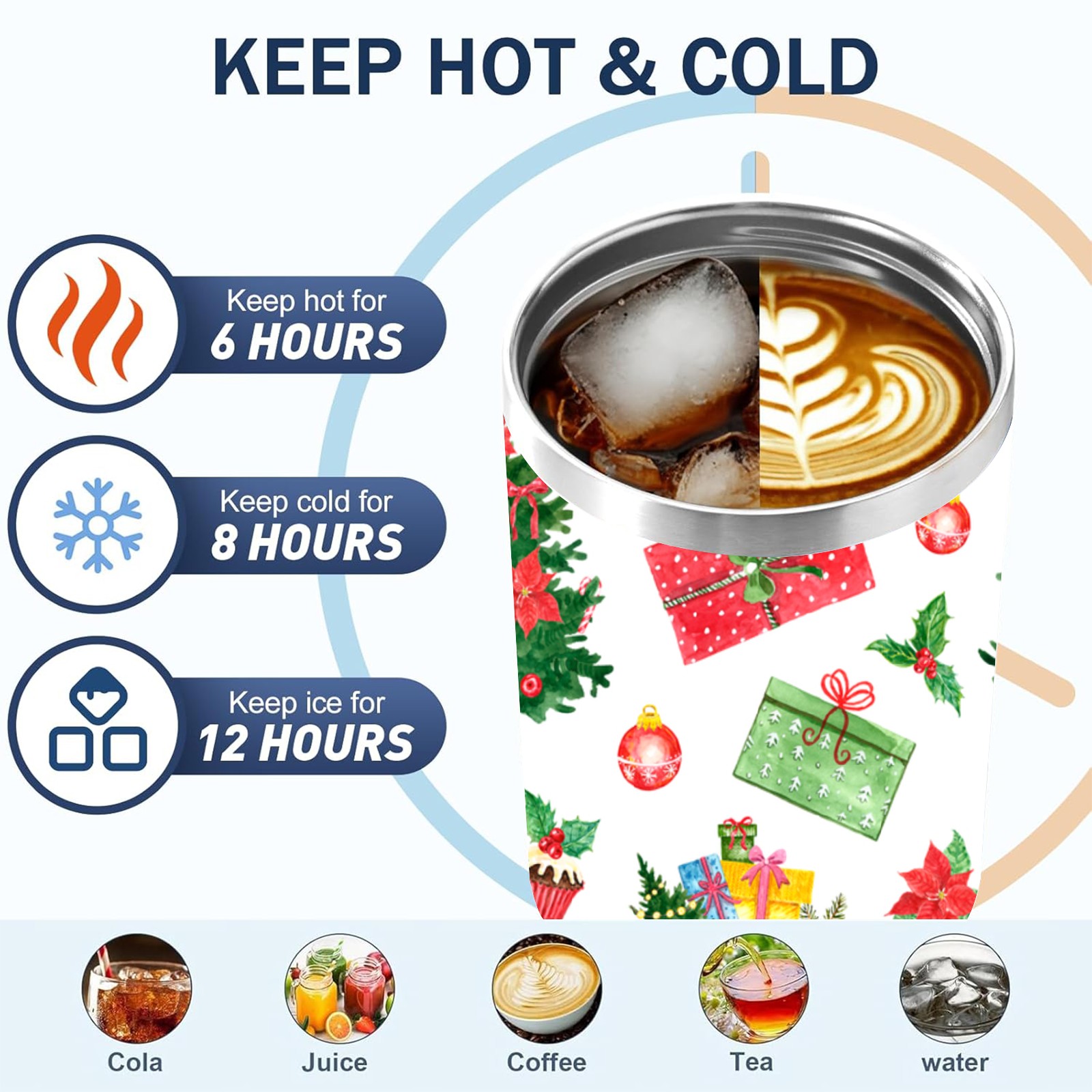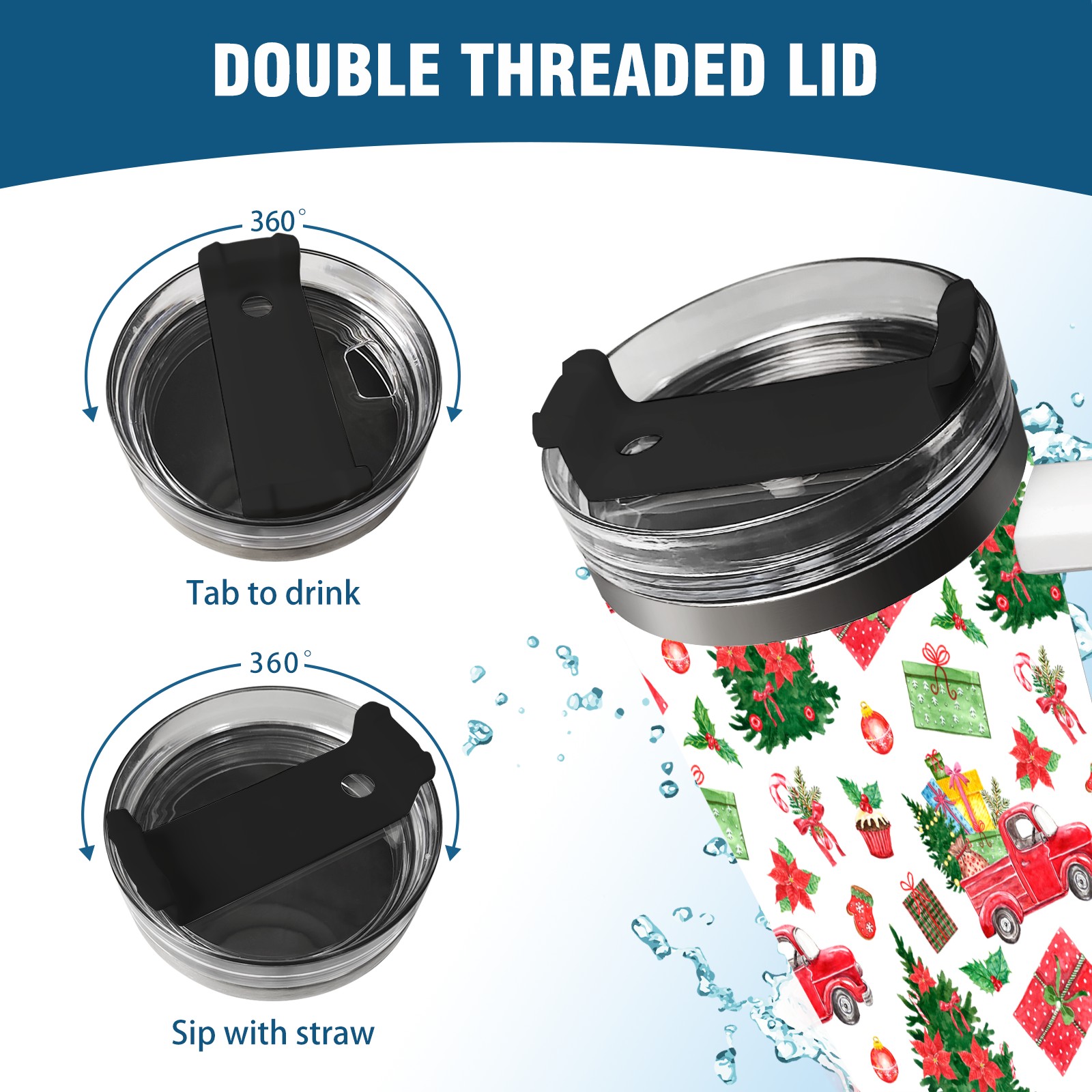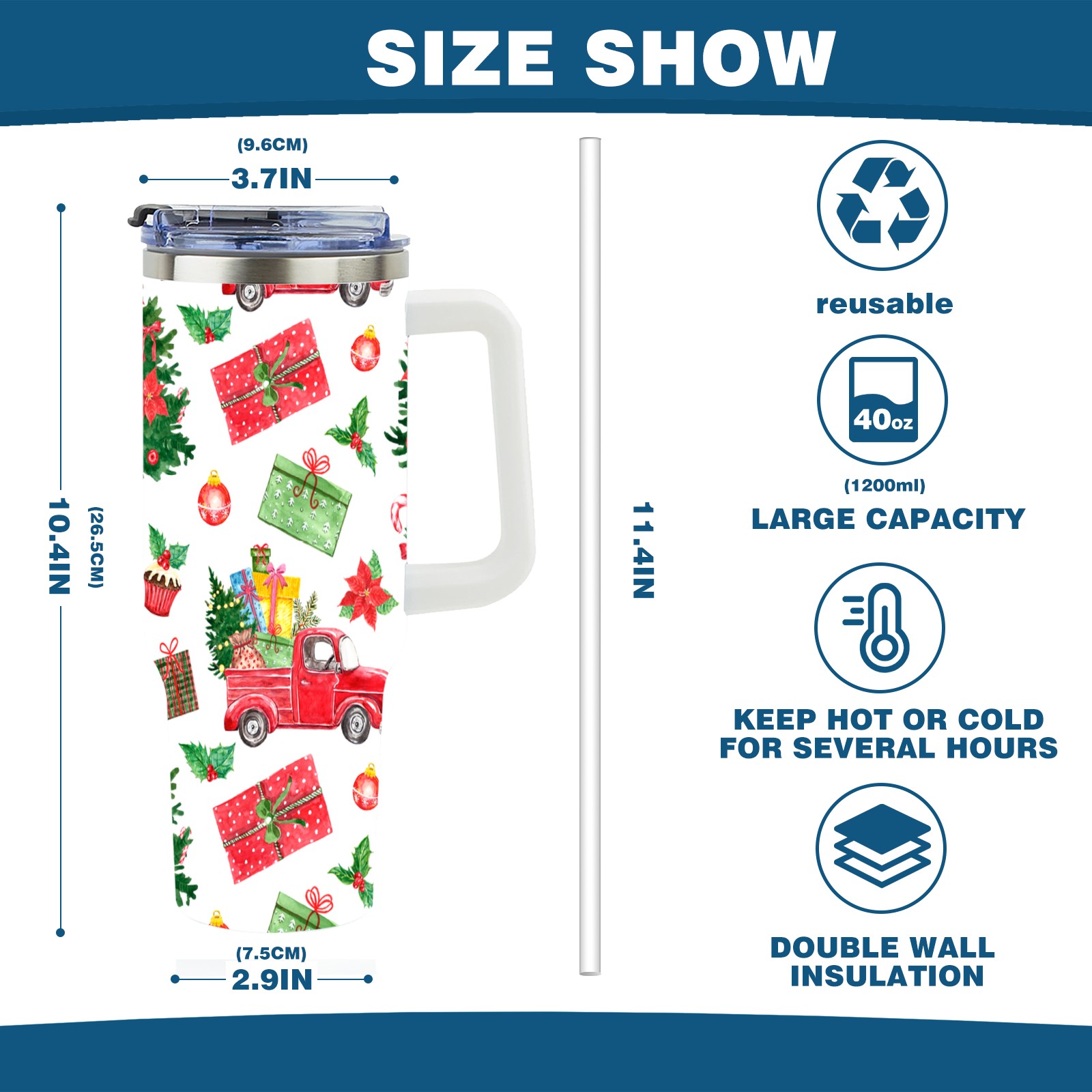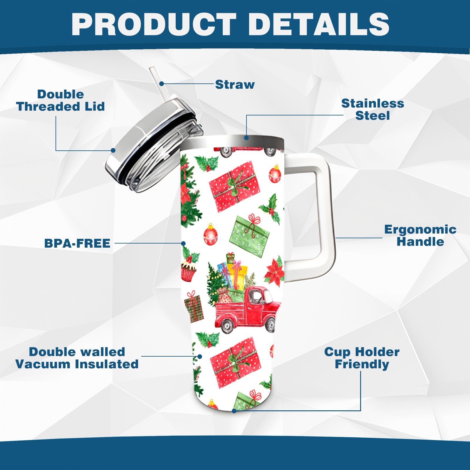 40oz Fully Printed Car Cup – Stylish Large-Capacity Tumbler with UV Printing TechnologyColorful Winter Christmas