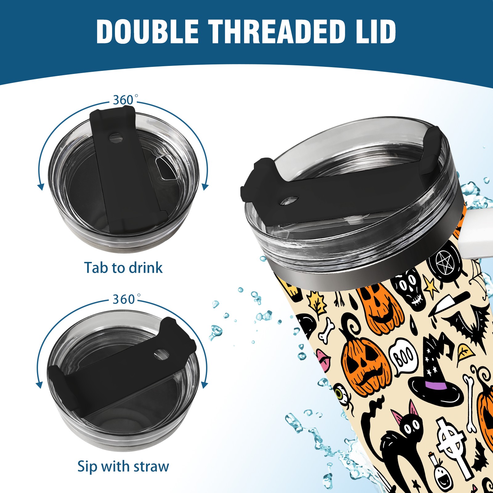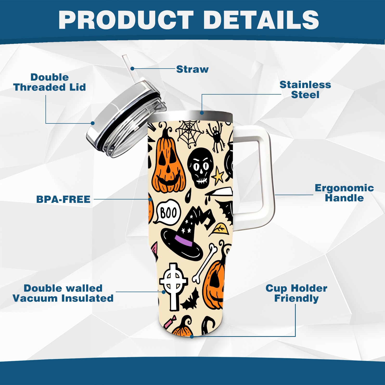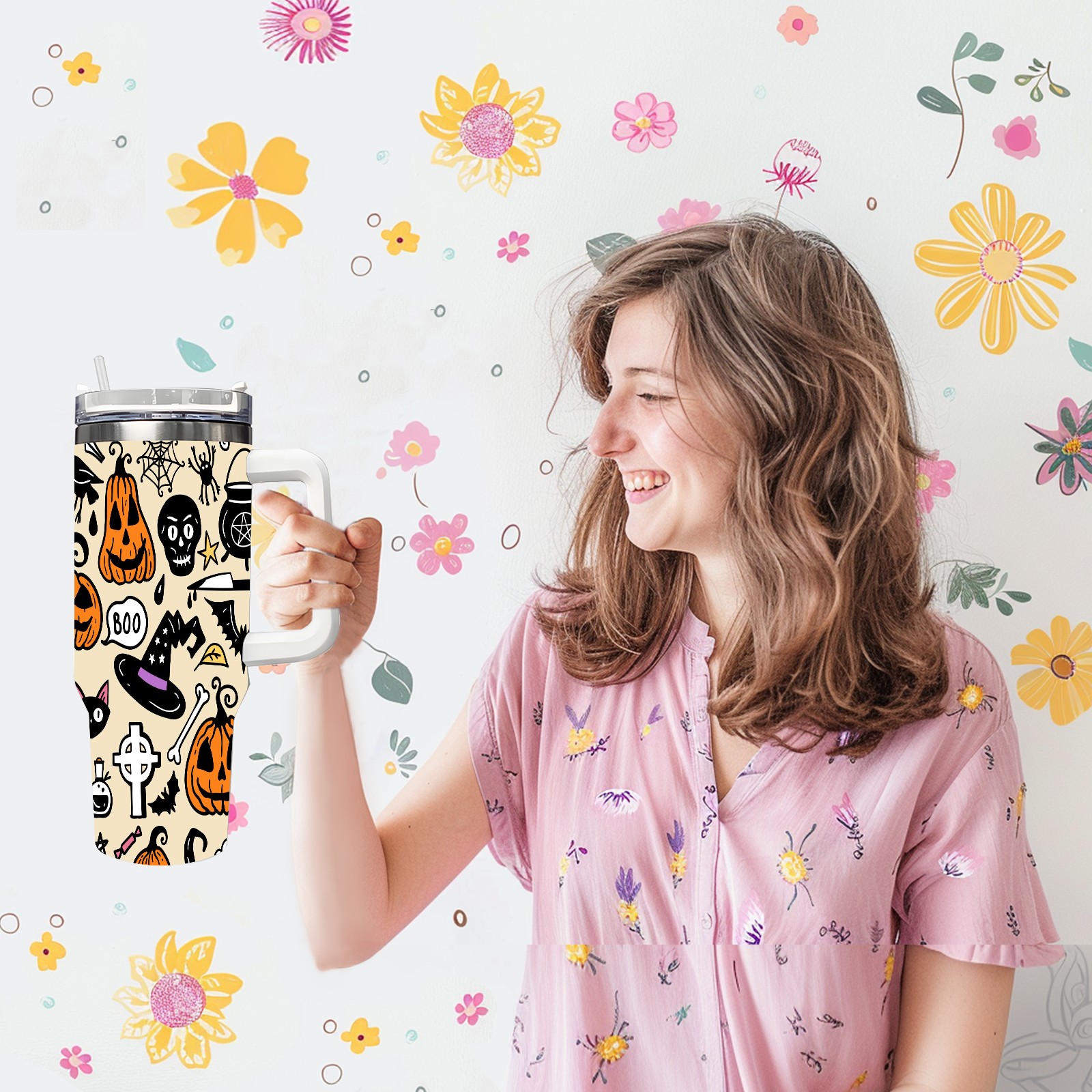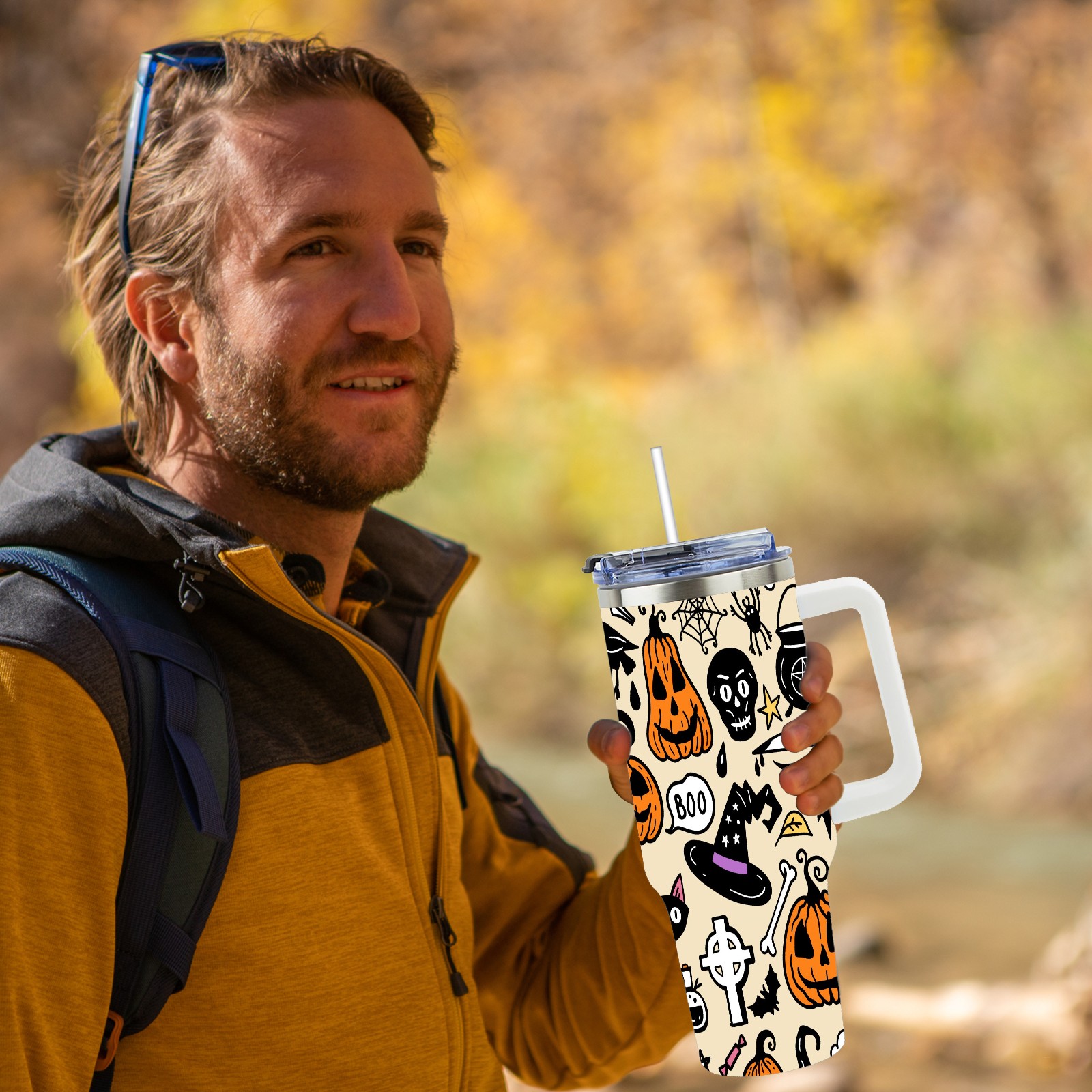 40oz Fully Printed Car Cup – Stylish Large-Capacity Tumbler with UV Printing TechnologyHalloween Pumpkin