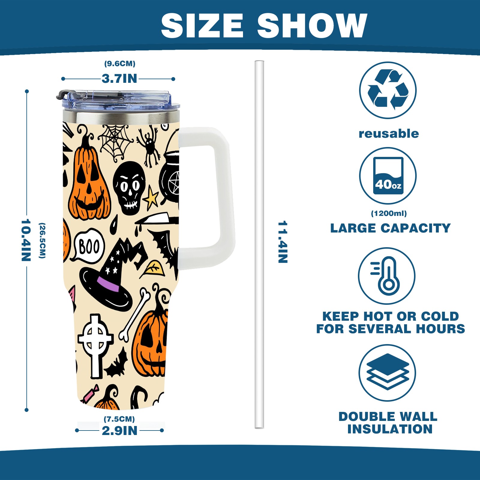 • <p>With a large 40oz capacity, it keeps you hydrated throughout the day, ideal for water, coffee, juice, or other beverages. Its ergonomic design fits seamlessly into car cup holders, complemented by a secure, leak-resistant lid to minimize spills during travel. The non-slip base ensures stability, while the smooth surfaces make cleaning a breeze—simply wash by hand or toss in the dishwasher (top rack recommended).</p>