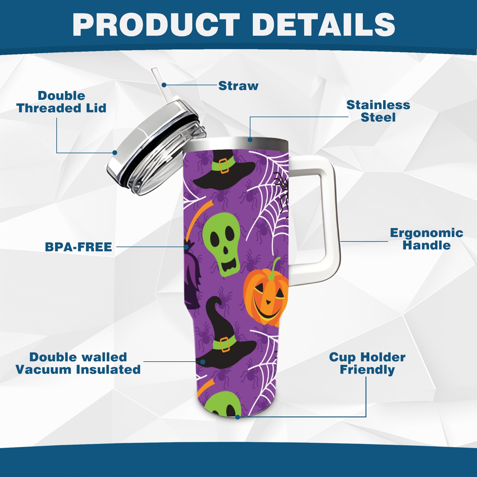 40oz Fully Printed Car Cup – Stylish Large-Capacity Tumbler with UV Printing Technology万圣节5