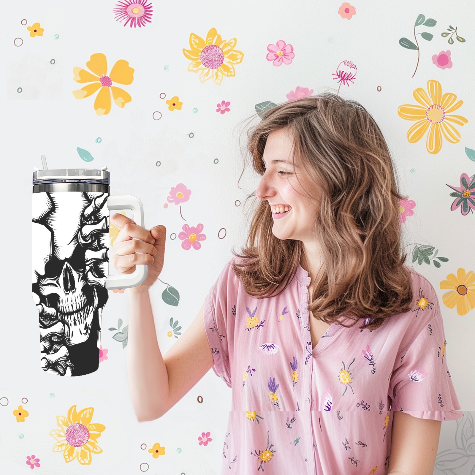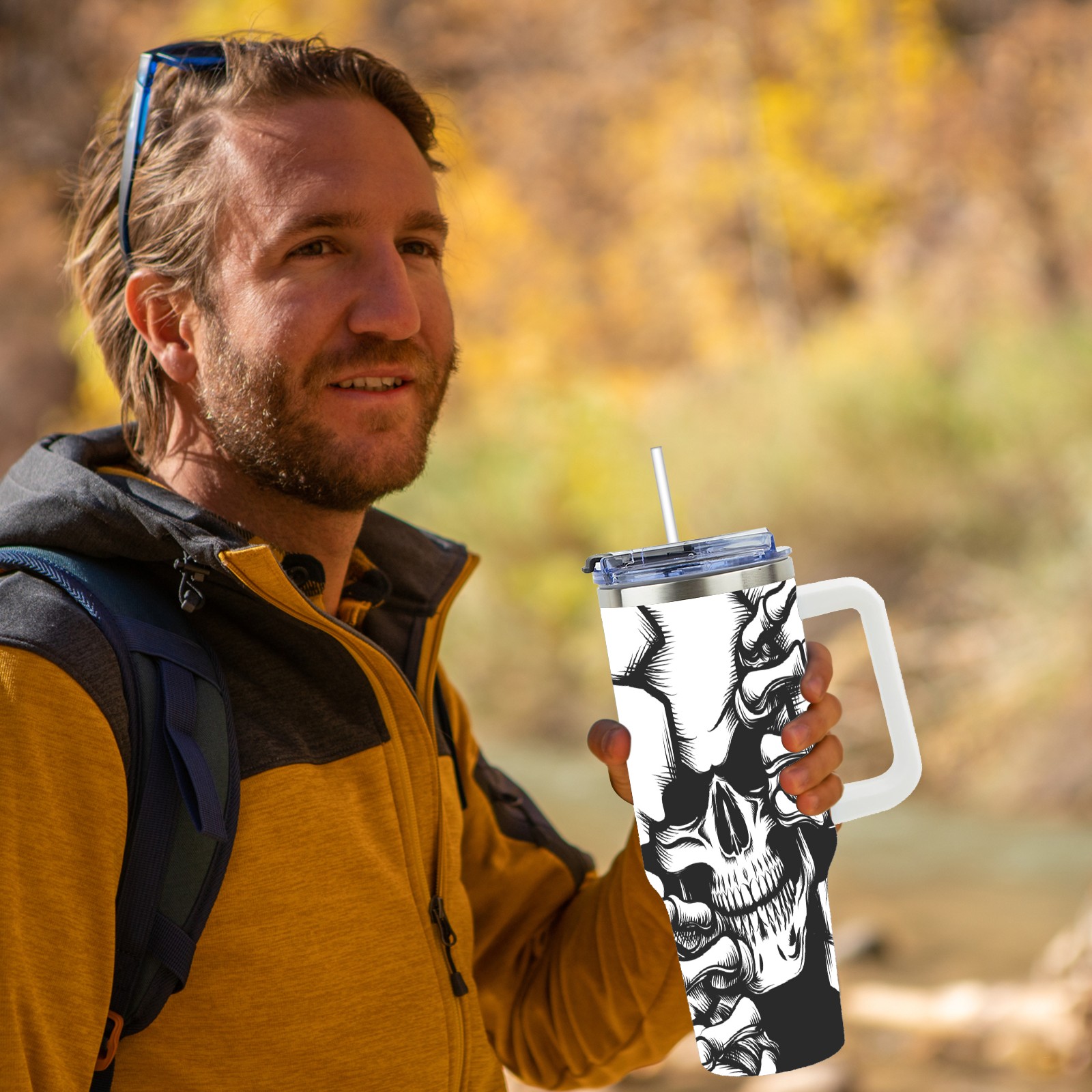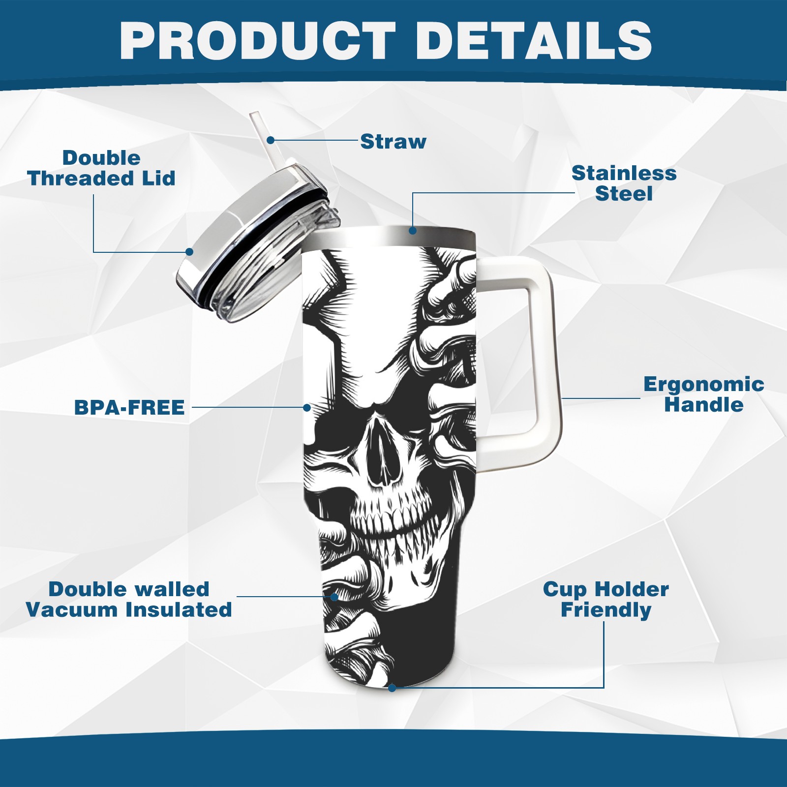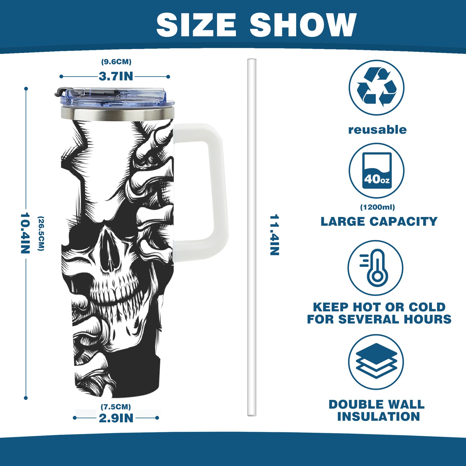 • <p>With a large 40oz capacity, it keeps you hydrated throughout the day, ideal for water, coffee, juice, or other beverages. Its ergonomic design fits seamlessly into car cup holders, complemented by a secure, leak-resistant lid to minimize spills during travel. The non-slip base ensures stability, while the smooth surfaces make cleaning a breeze—simply wash by hand or toss in the dishwasher (top rack recommended).</p>
