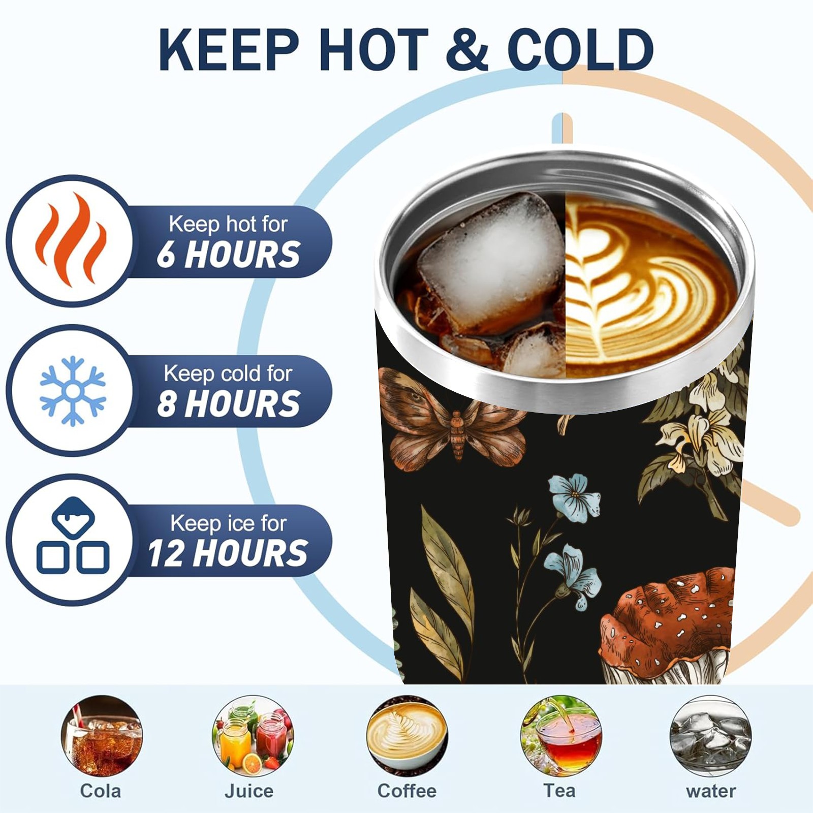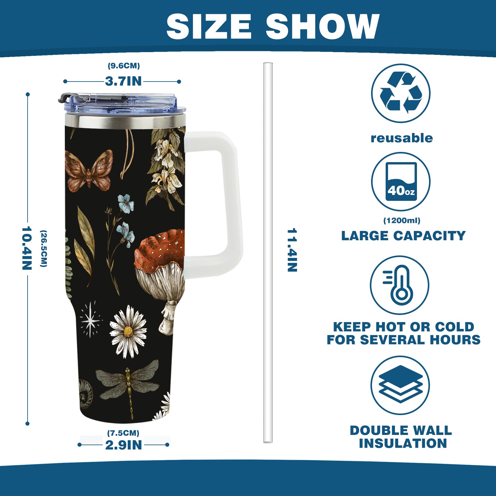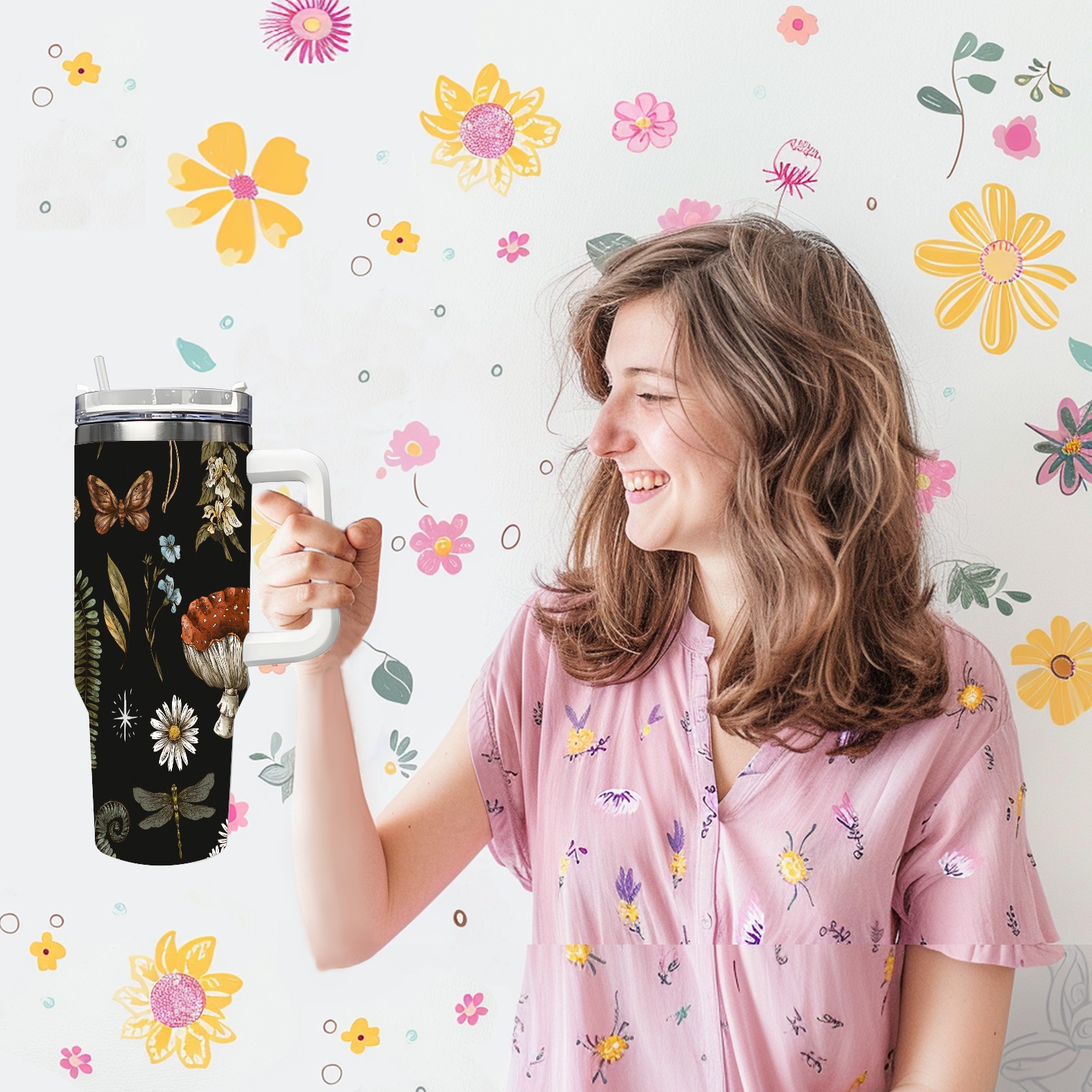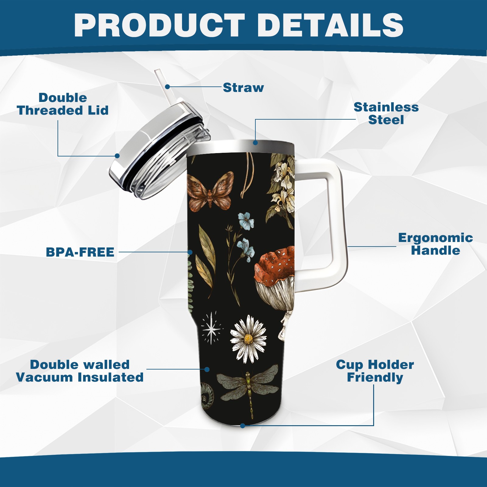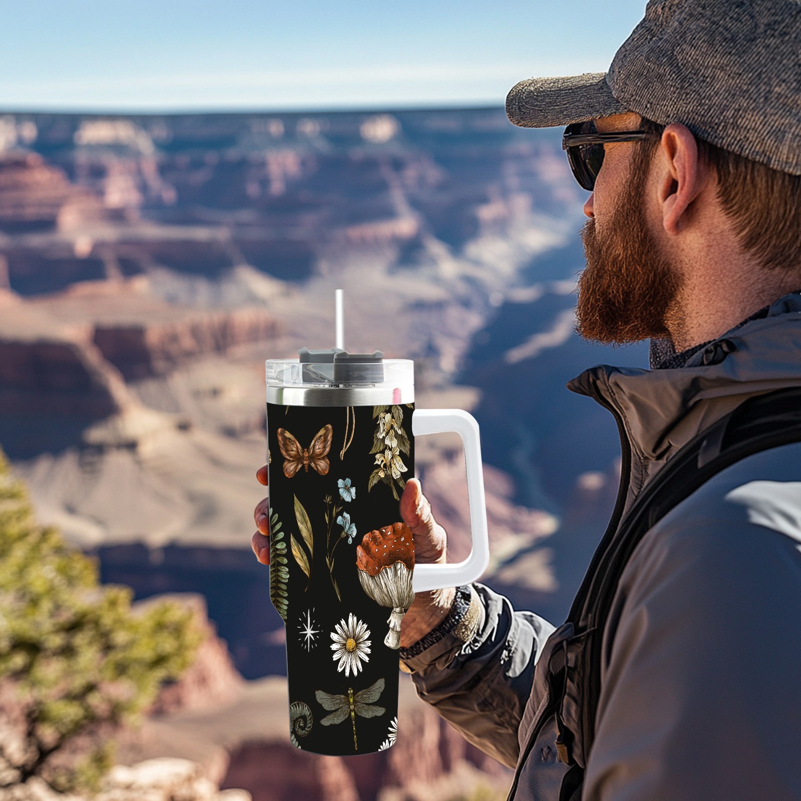 40oz Fully Printed Car Cup – Stylish Large-Capacity Tumbler with UV Printing TechnologyVintage Botanical Mushrooms