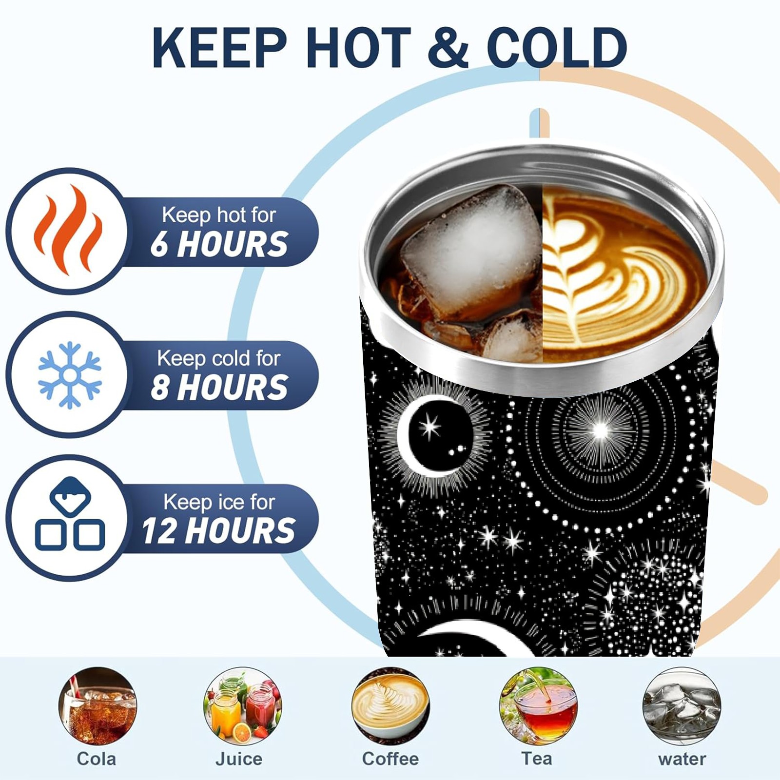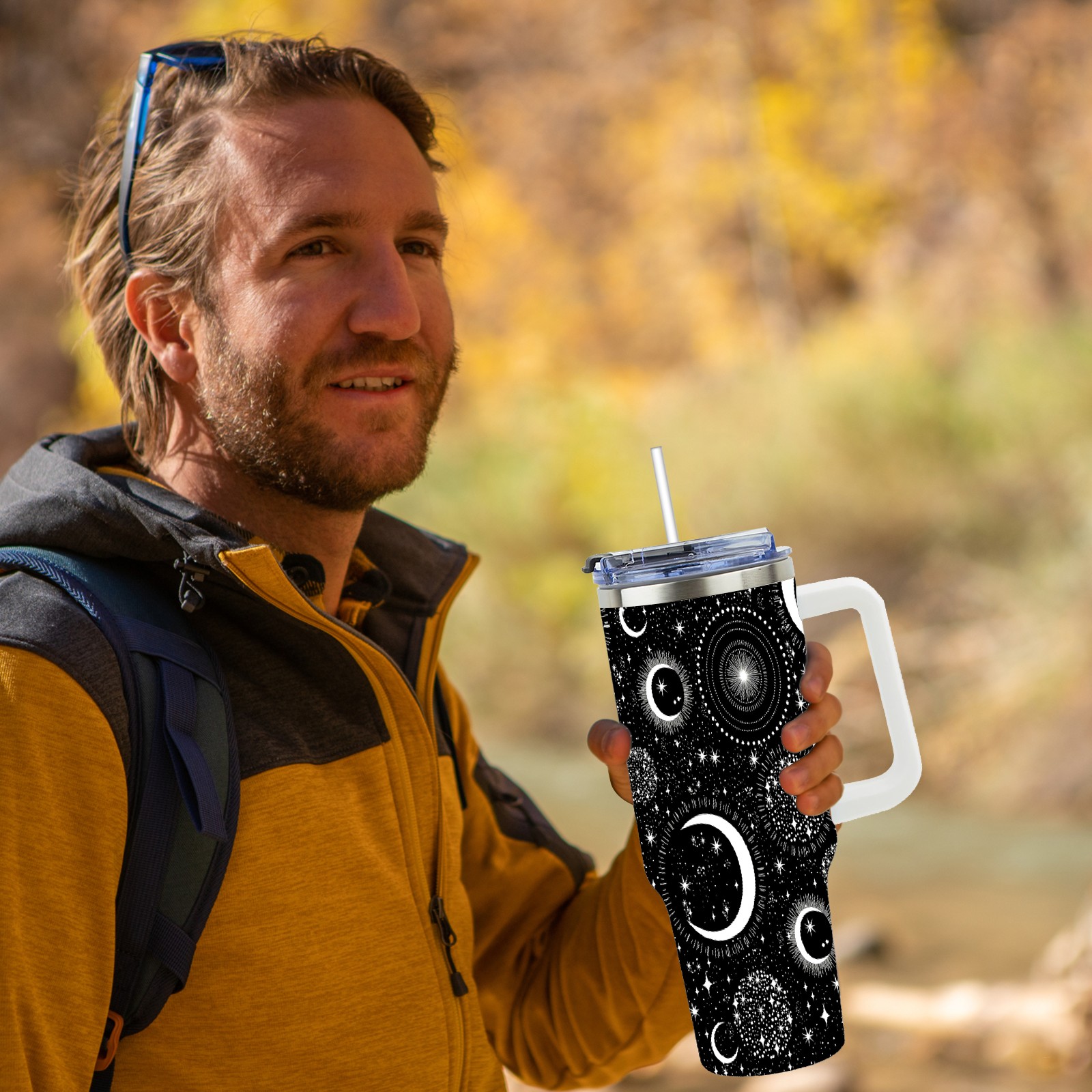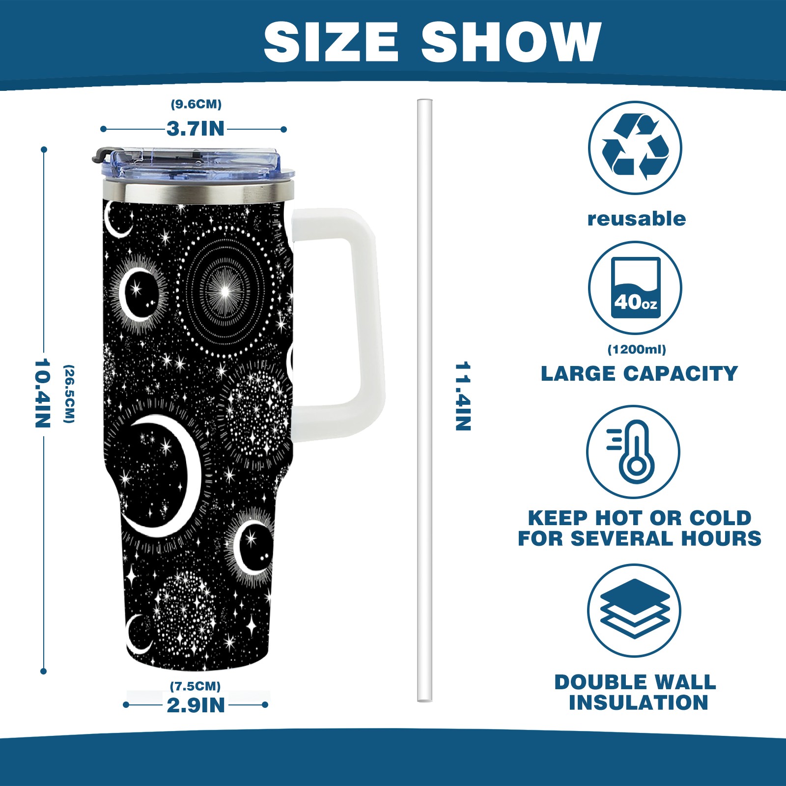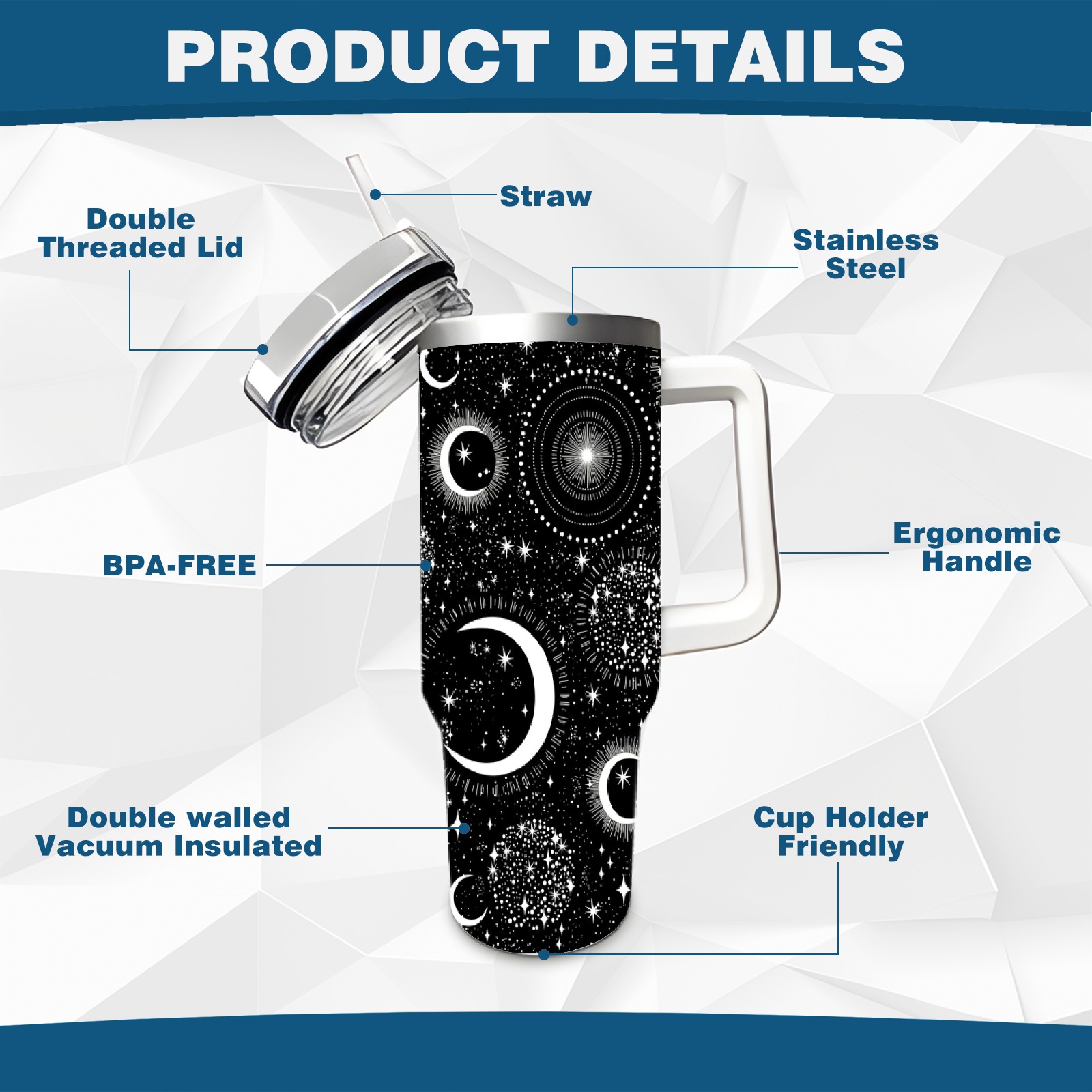40oz Fully Printed Car Cup – Stylish Large-Capacity Tumbler with UV Printing TechnologyGothic Moon Stars Boho