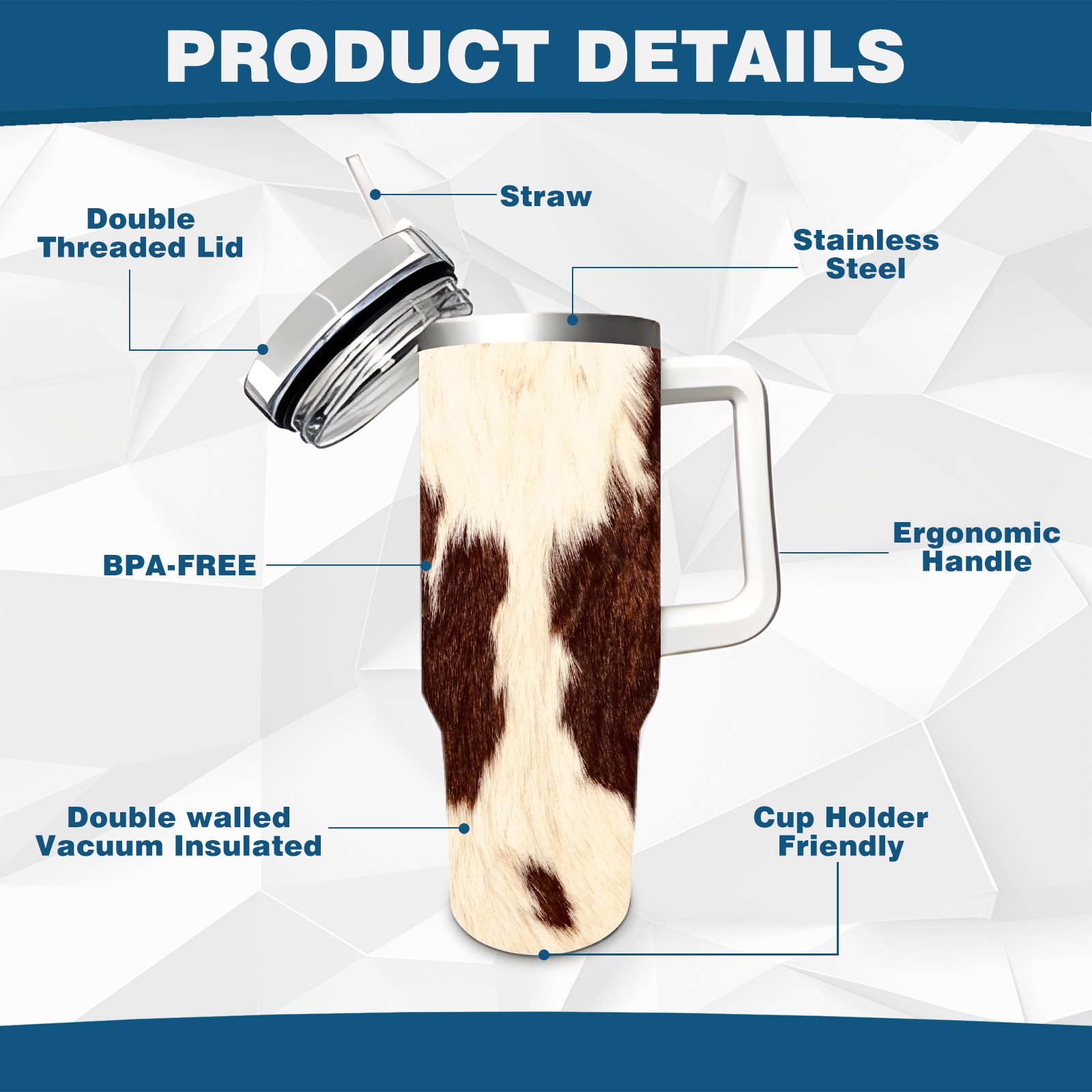 40oz Fully Printed Car Cup – Stylish Large-Capacity Tumbler with UV Printing TechnologyWestern Cowhide