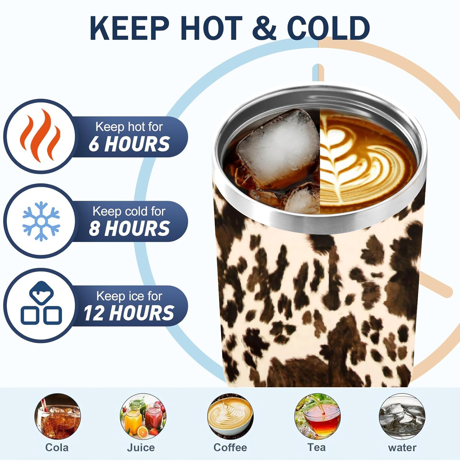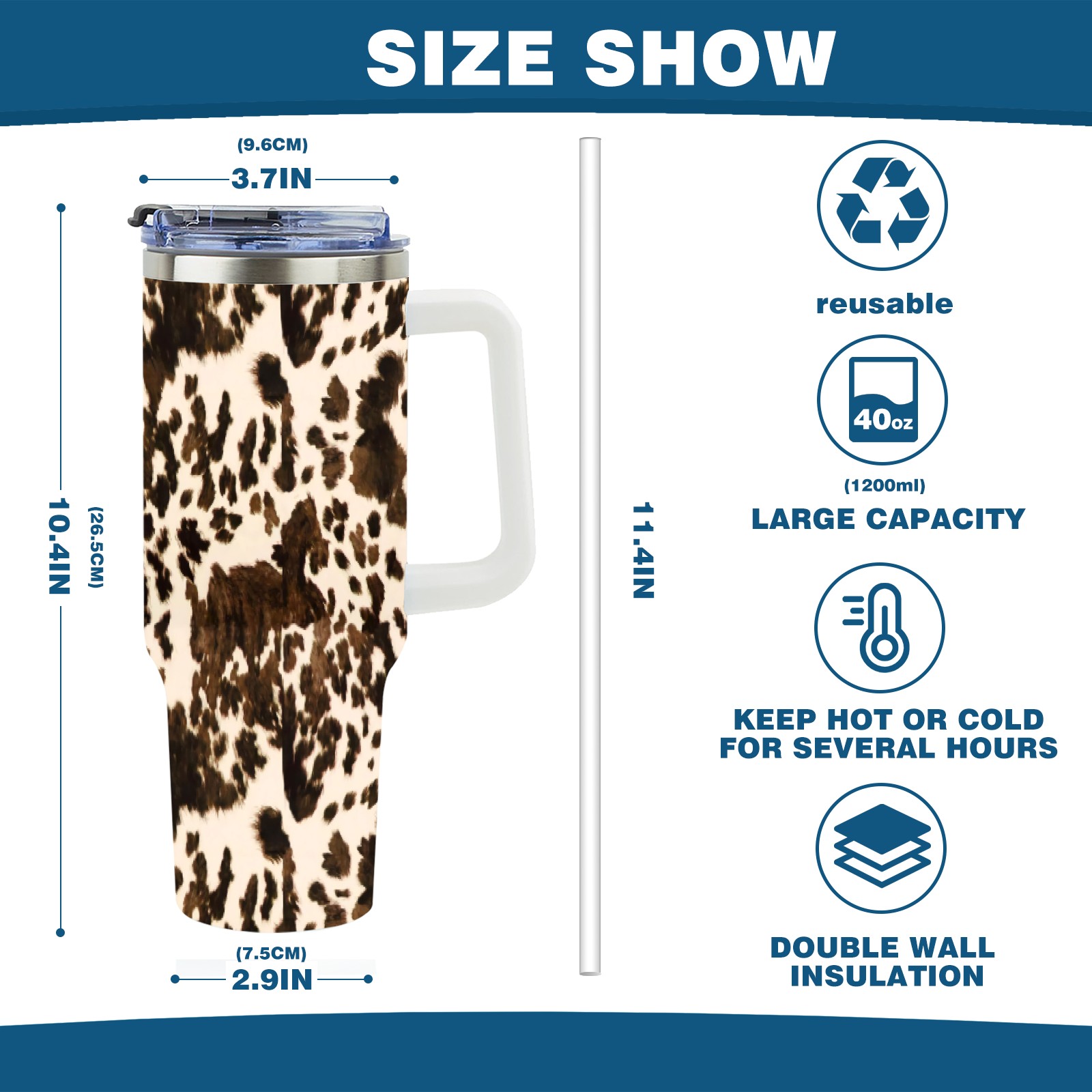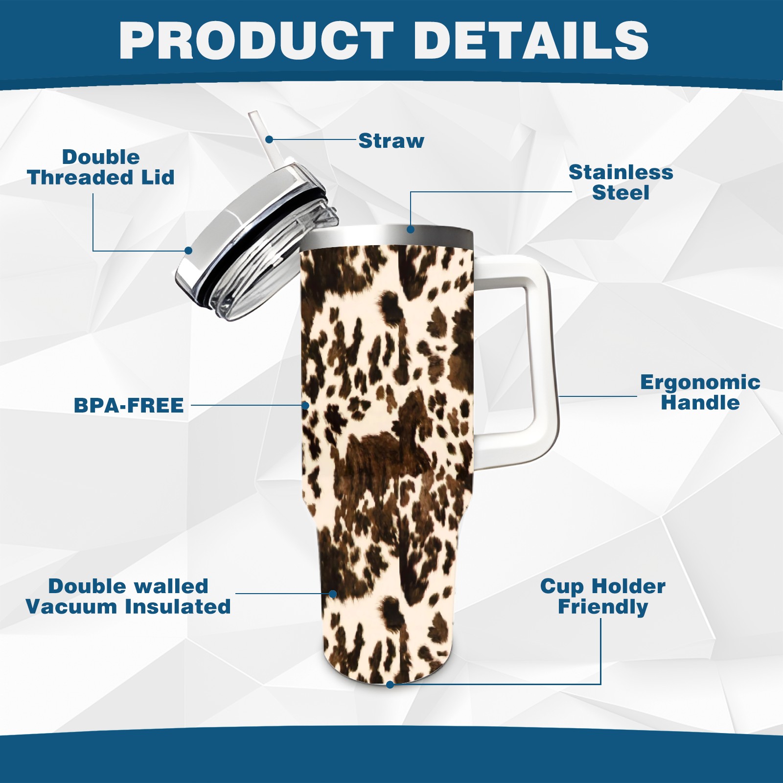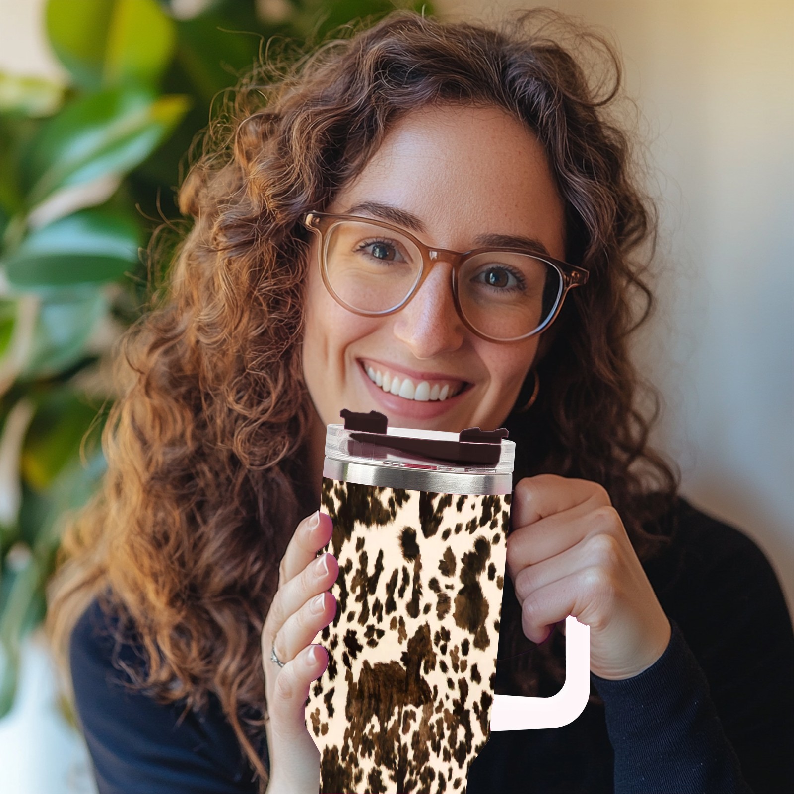 40oz Fully Printed Car Cup – Stylish Large-Capacity Tumbler with UV Printing TechnologyBrown Western Cow Print