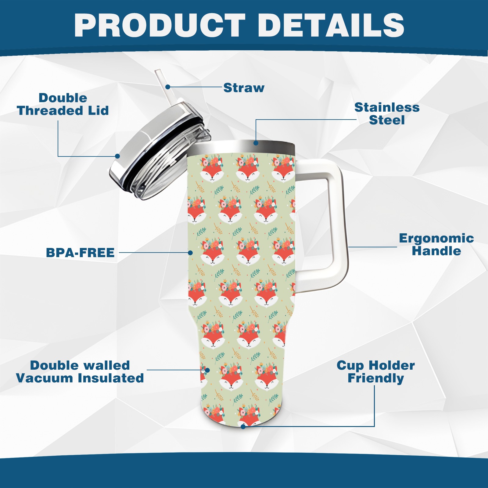 40oz Fully Printed Car Cup – Stylish Large-Capacity Tumbler with UV Printing TechnologyCute Fox