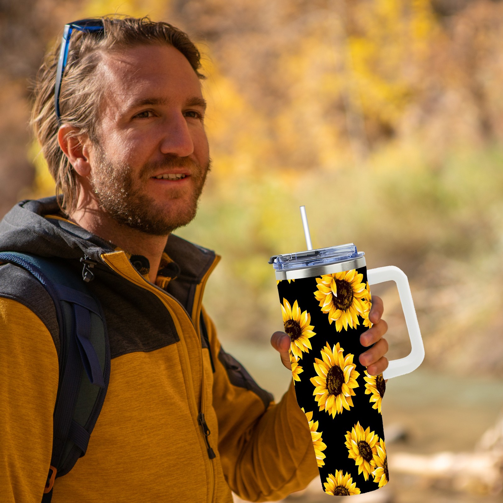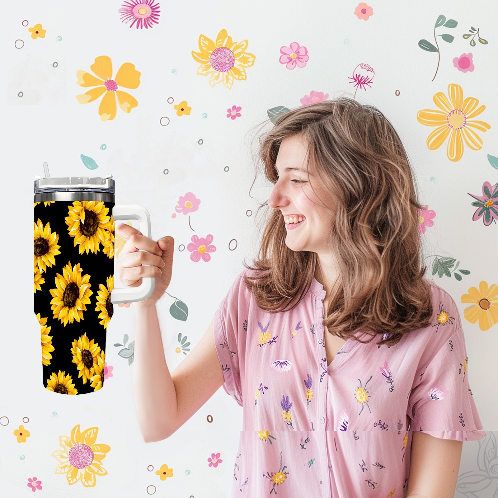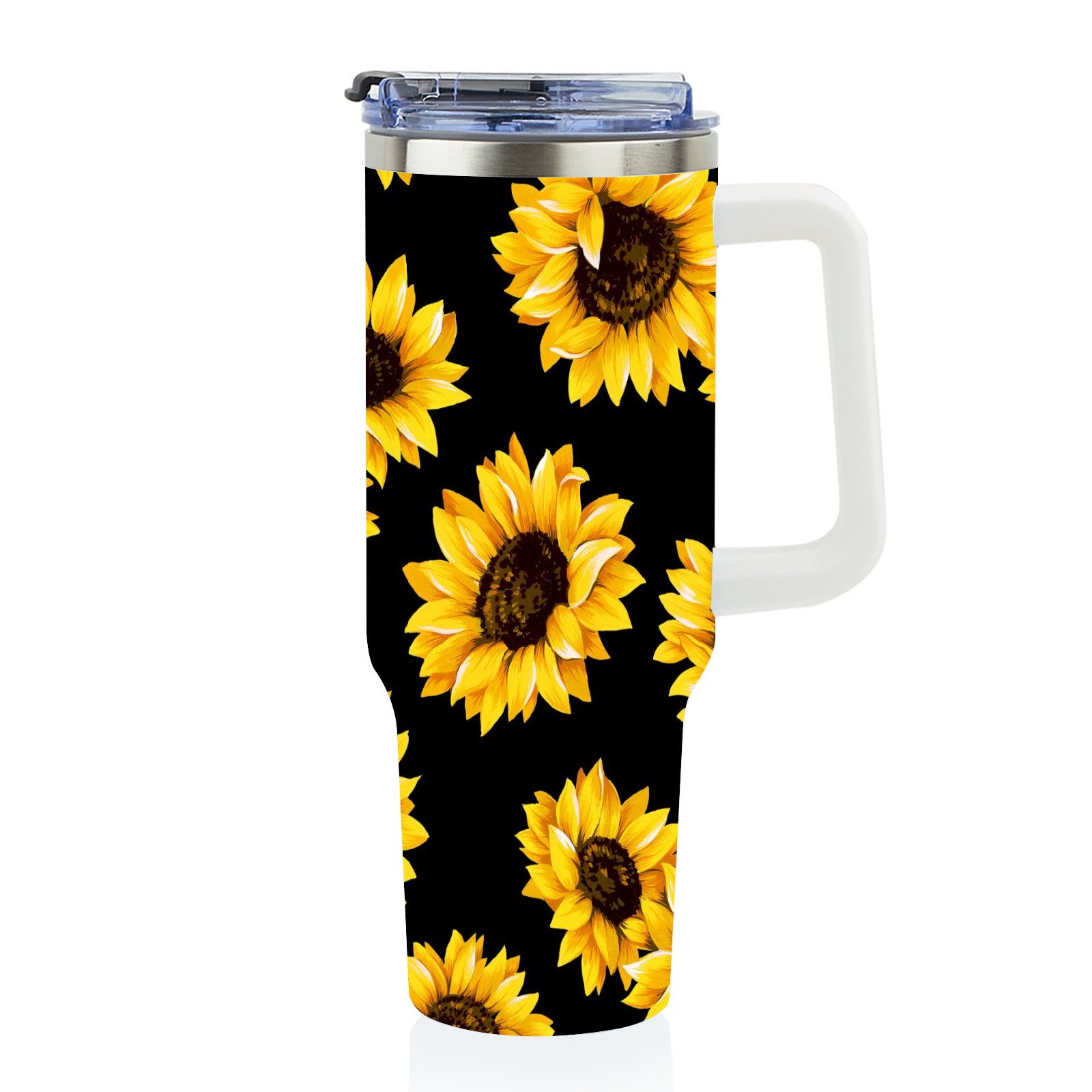 40oz Fully Printed Car Cup – Stylish Large-Capacity Tumbler with UV Printing TechnologyChic Yellow Sunflowers Blooming