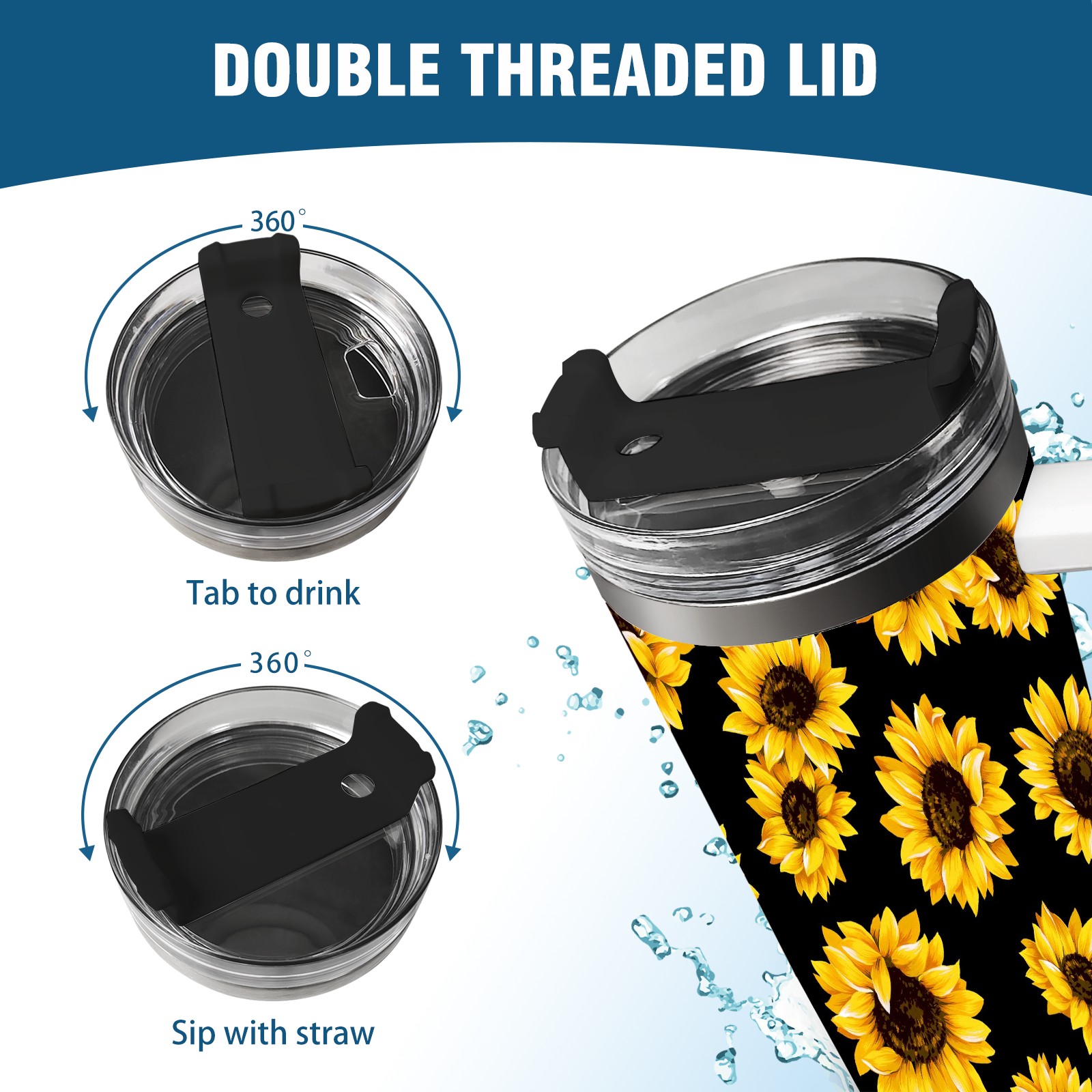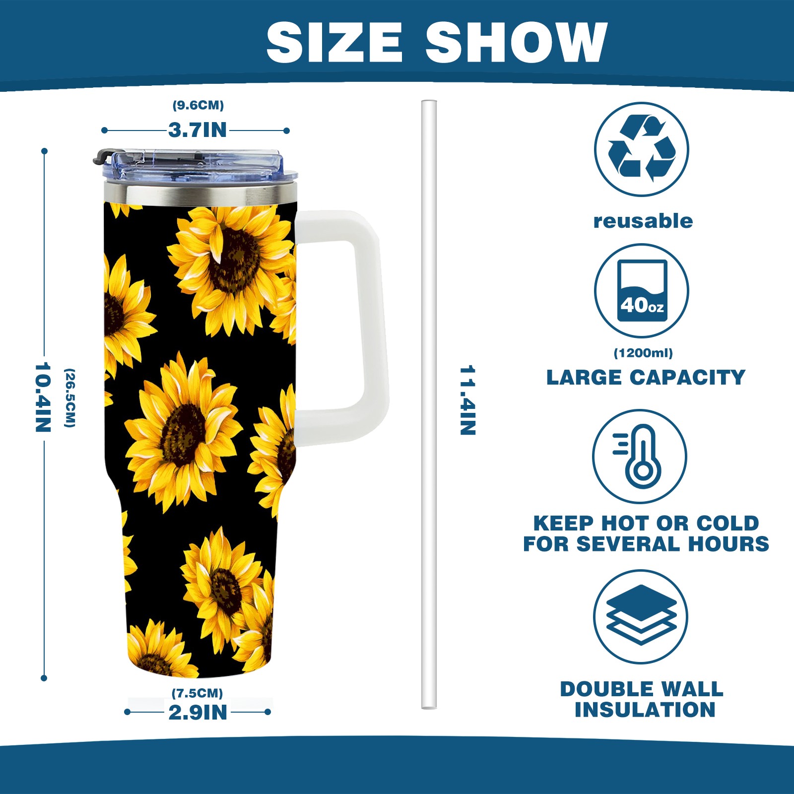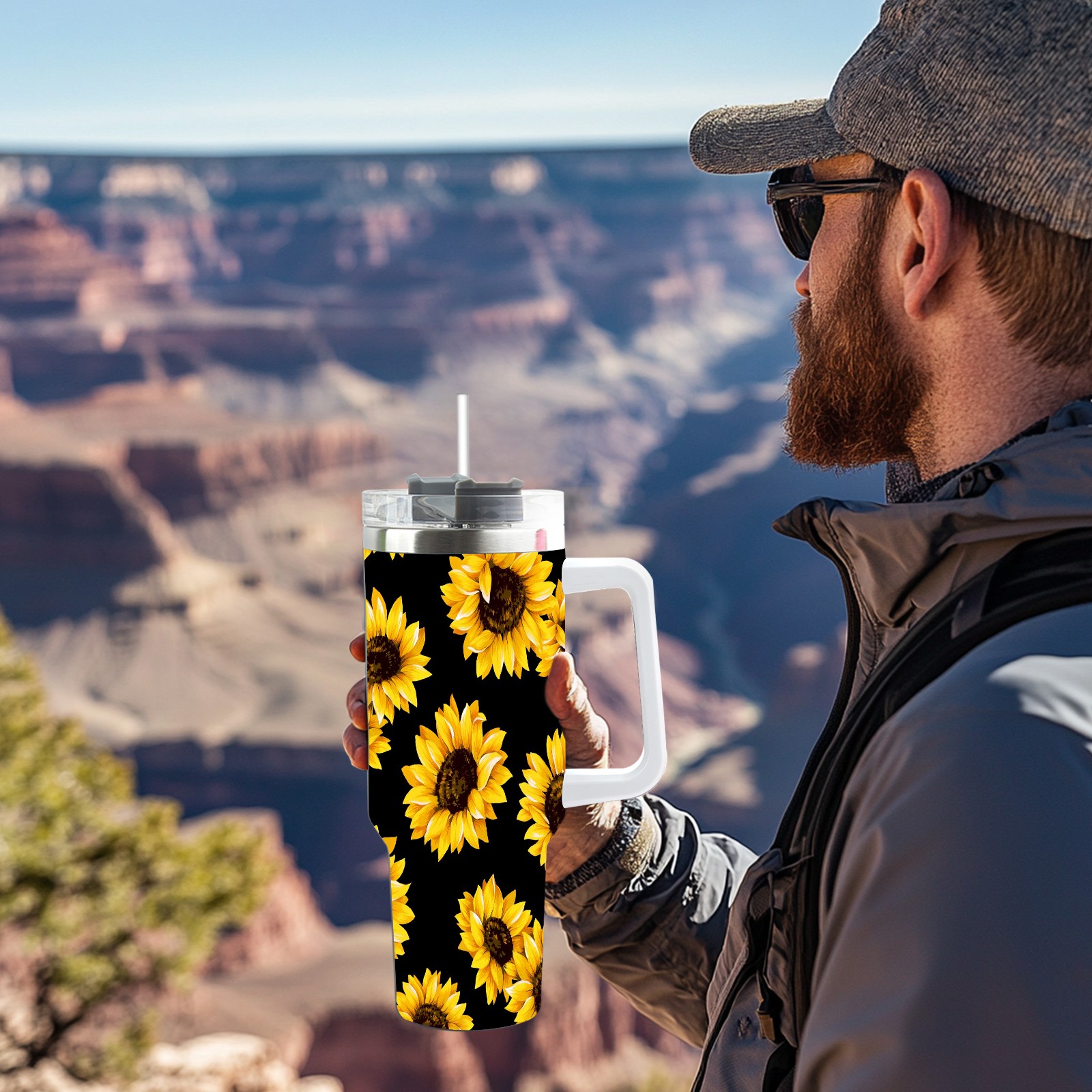 40oz Fully Printed Car Cup – Stylish Large-Capacity Tumbler with UV Printing TechnologyChic Yellow Sunflowers Blooming