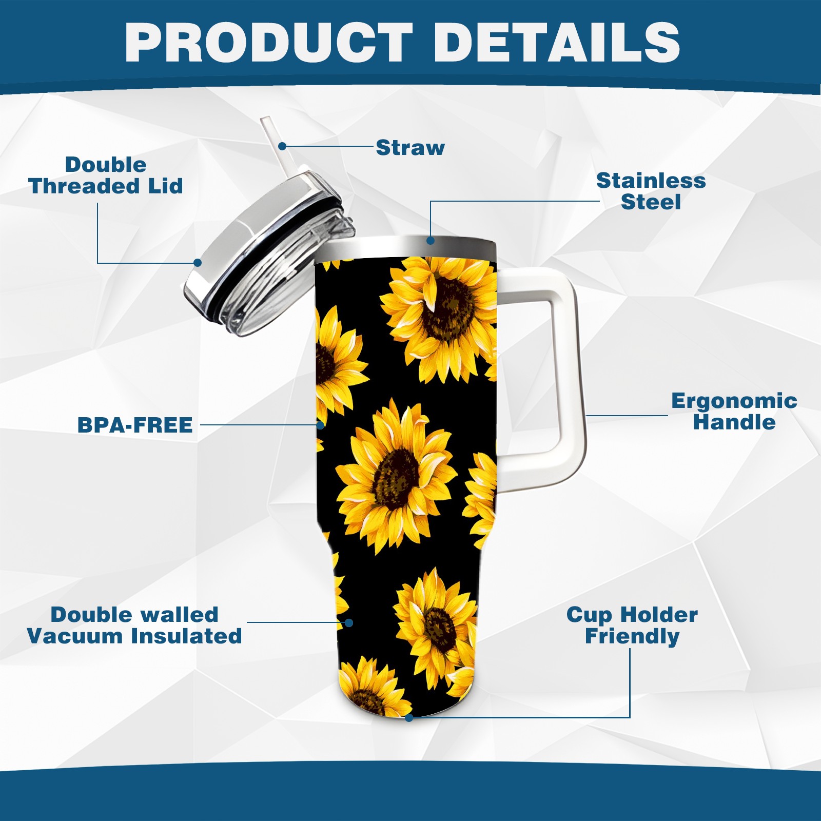<p>With a large 40oz capacity, it keeps you hydrated throughout the day, ideal for water, coffee, juice, or other beverages. Its ergonomic design fits seamlessly into car cup holders, complemented by a secure, leak-resistant lid to minimize spills during travel. The non-slip base ensures stability, while the smooth surfaces make cleaning a breeze—simply wash by hand or toss in the dishwasher (top rack recommended).</p>