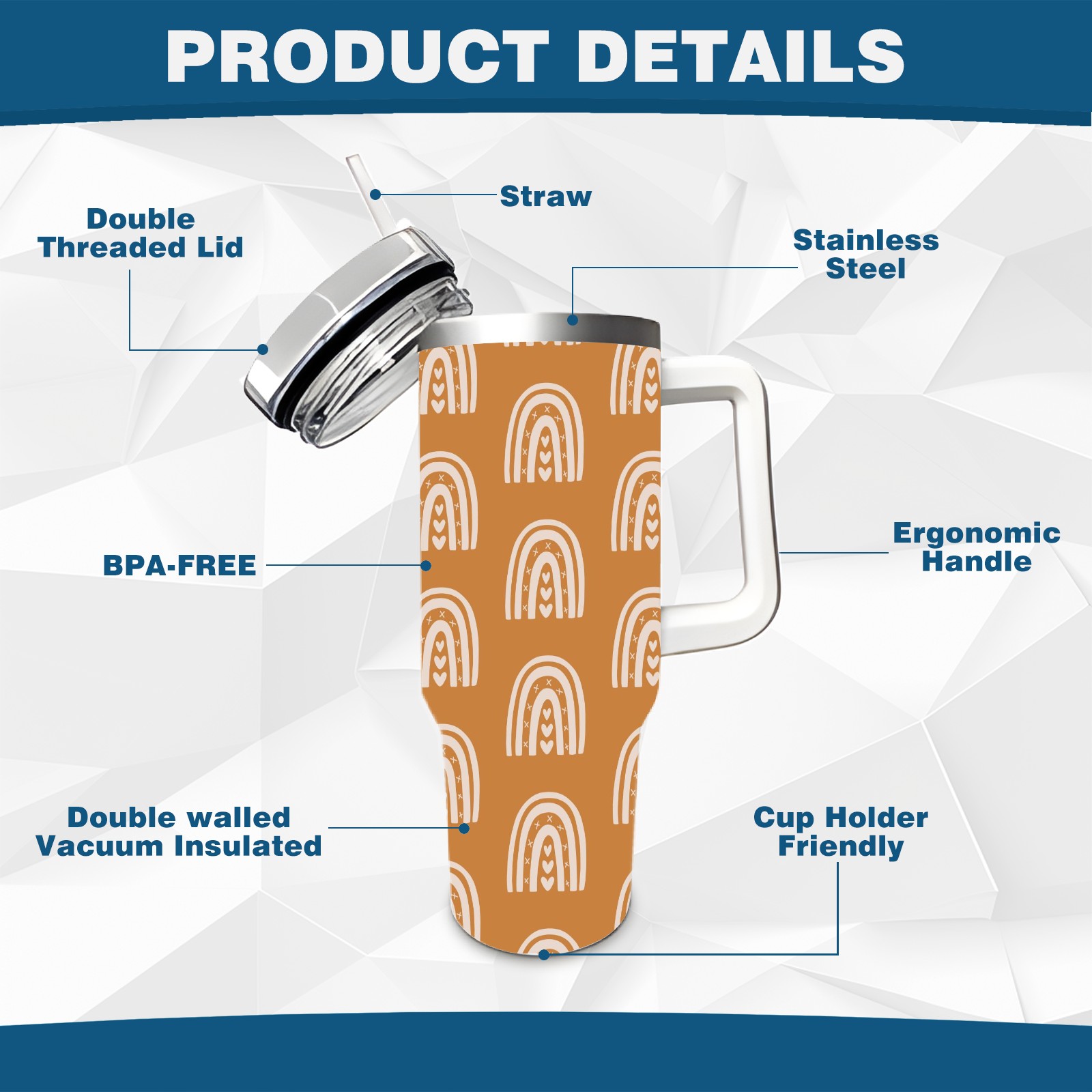 • <p>With a large 40oz capacity, it keeps you hydrated throughout the day, ideal for water, coffee, juice, or other beverages. Its ergonomic design fits seamlessly into car cup holders, complemented by a secure, leak-resistant lid to minimize spills during travel. The non-slip base ensures stability, while the smooth surfaces make cleaning a breeze—simply wash by hand or toss in the dishwasher (top rack recommended).</p>