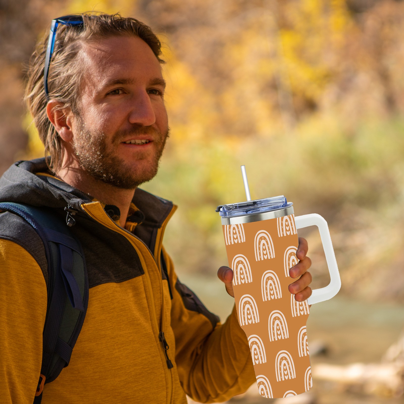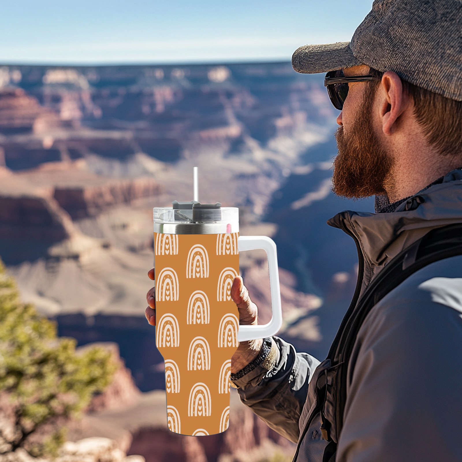 40oz Fully Printed Car Cup – Stylish Large-Capacity Tumbler with UV Printing TechnologyEthnic Rainbow Boho