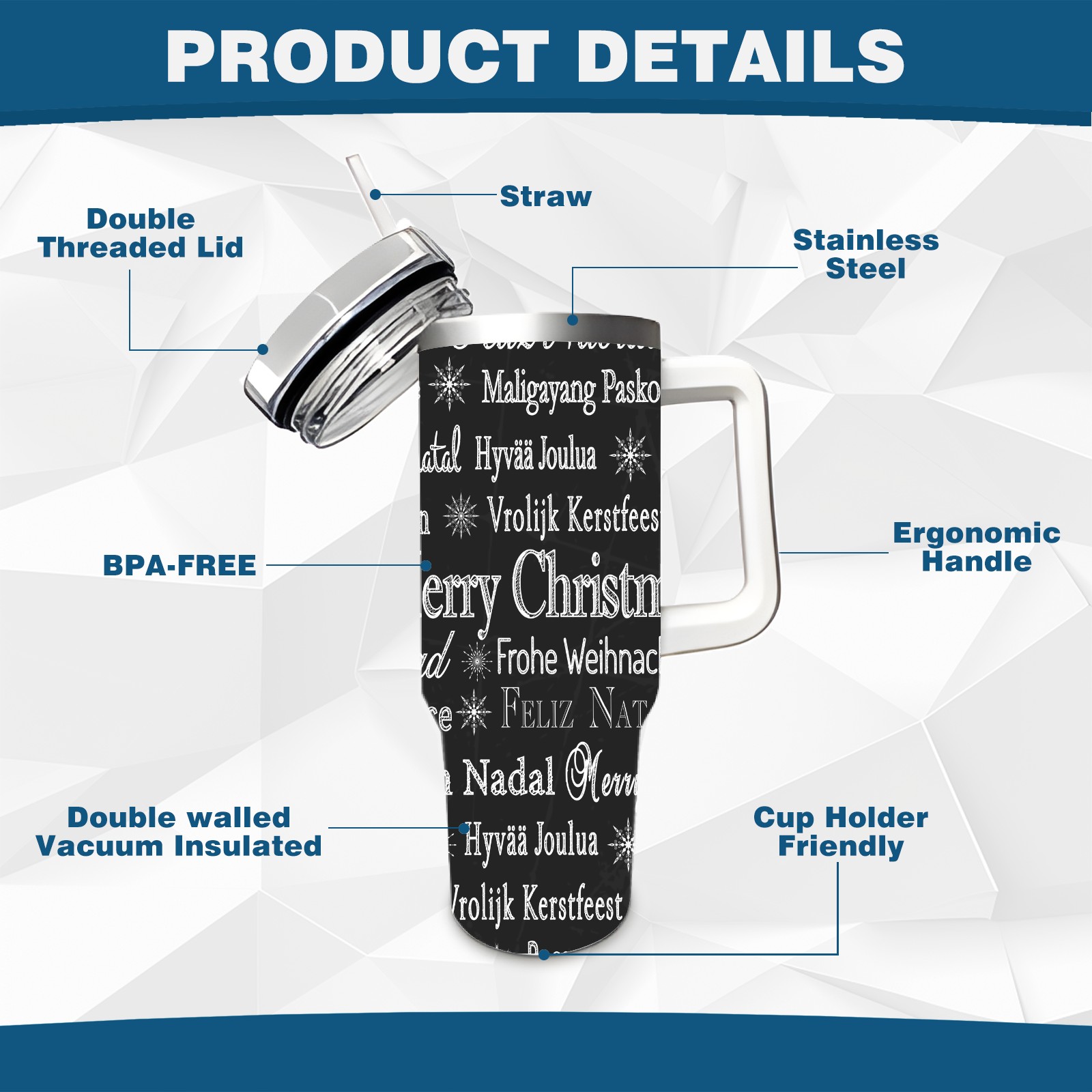40oz Fully Printed Car Cup – Stylish Large-Capacity Tumbler with UV Printing TechnologyMerry Christmas