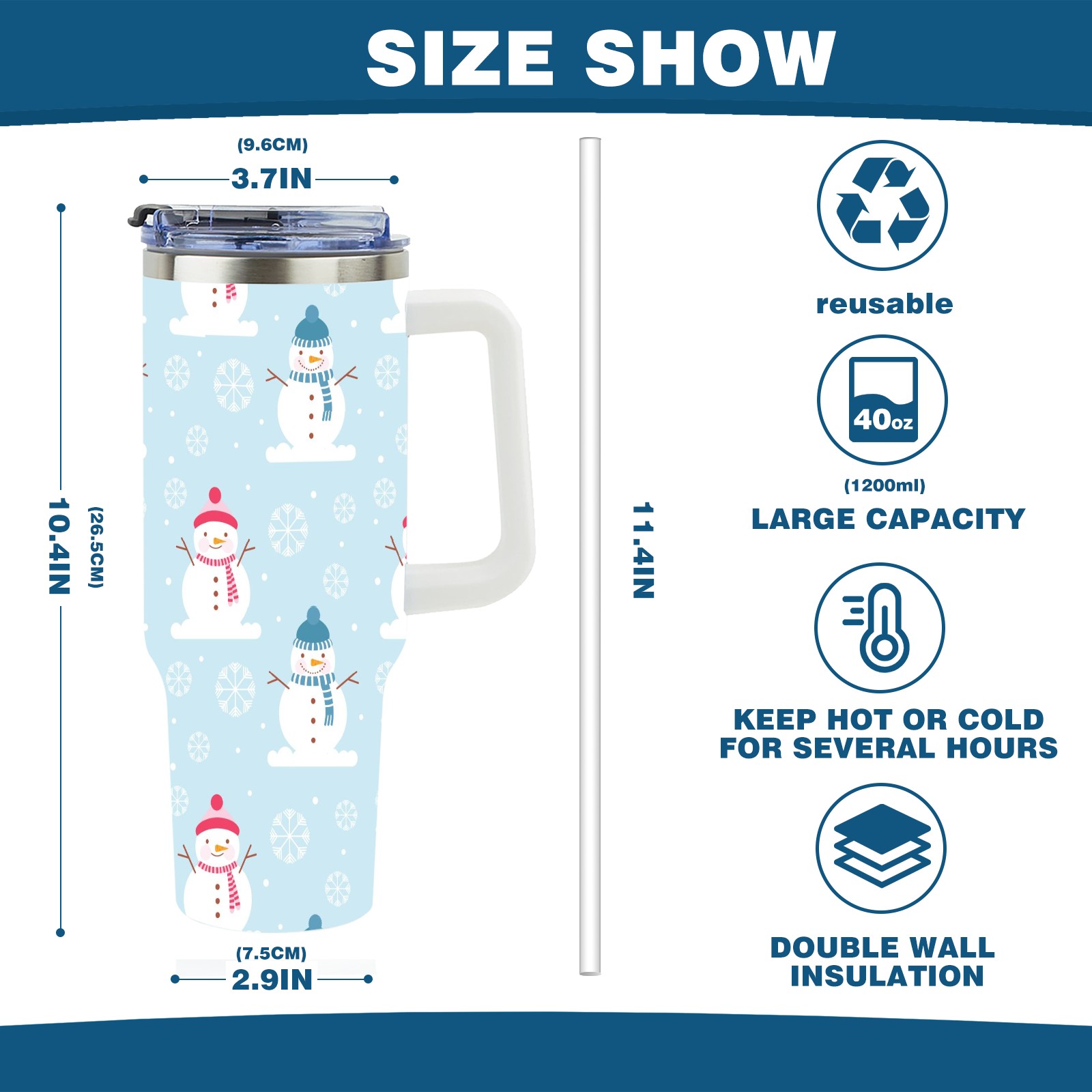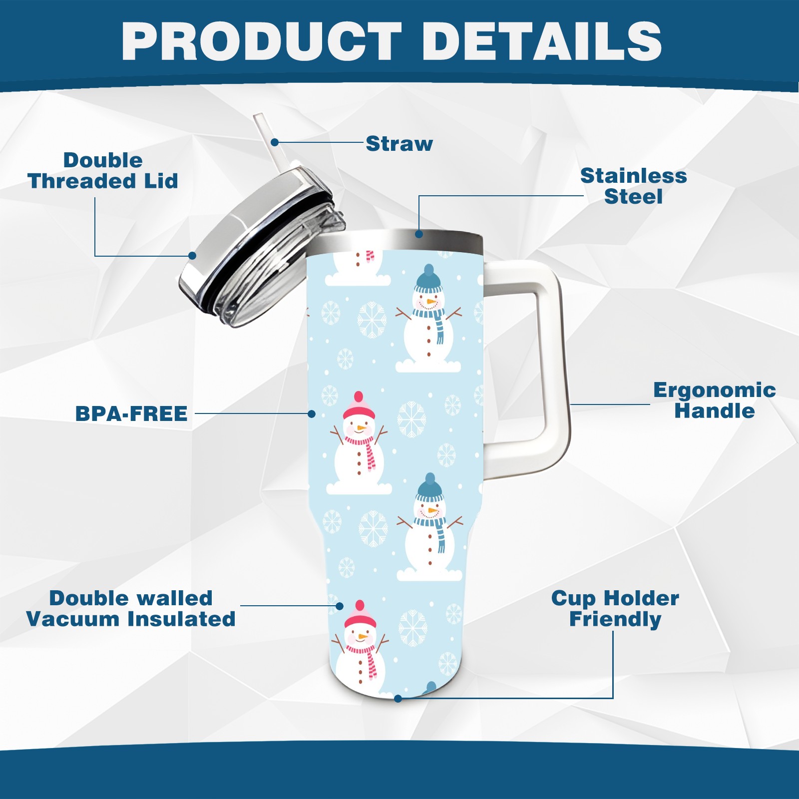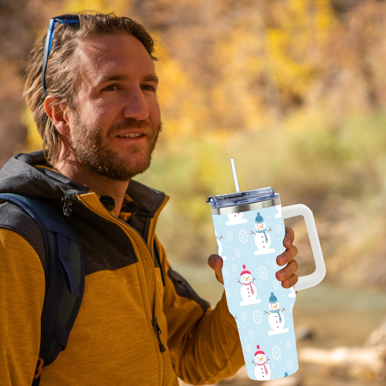 40oz Fully Printed Car Cup – Stylish Large-Capacity Tumbler with UV Printing TechnologyWinter Christmas Snowman