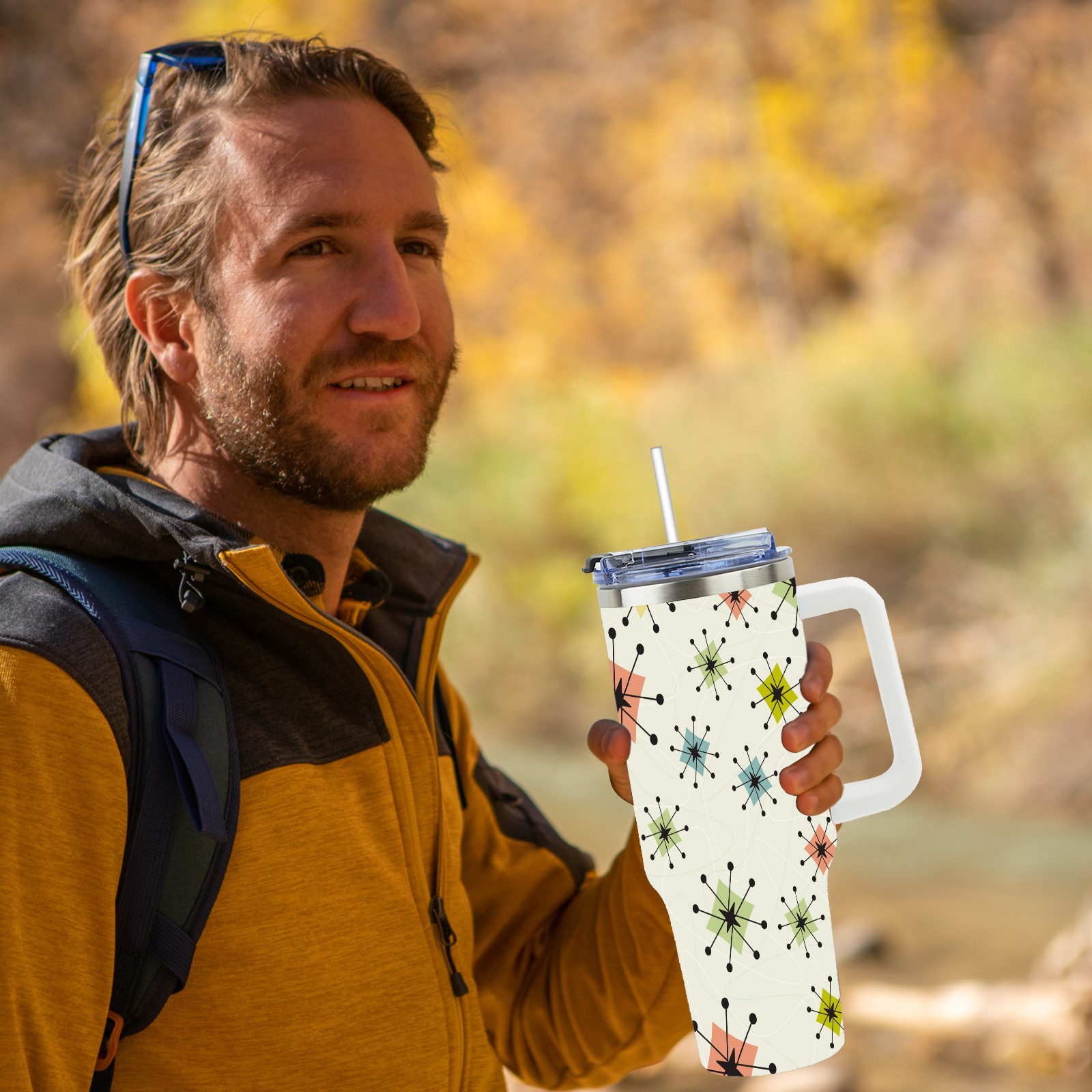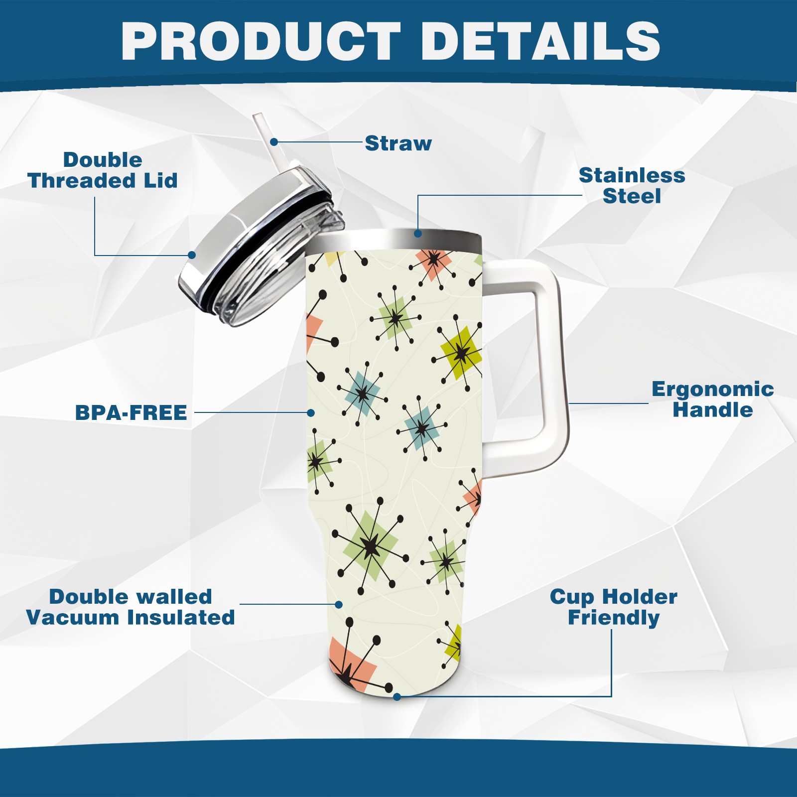 40oz Fully Printed Car Cup – Stylish Large-Capacity Tumbler with UV Printing TechnologyVintage Atomic Stars Retro