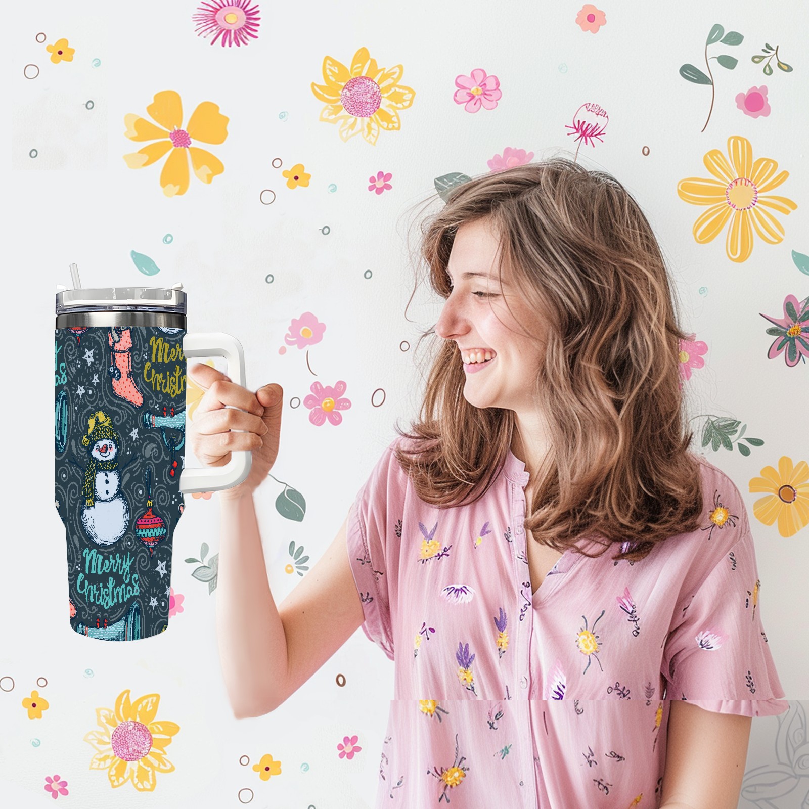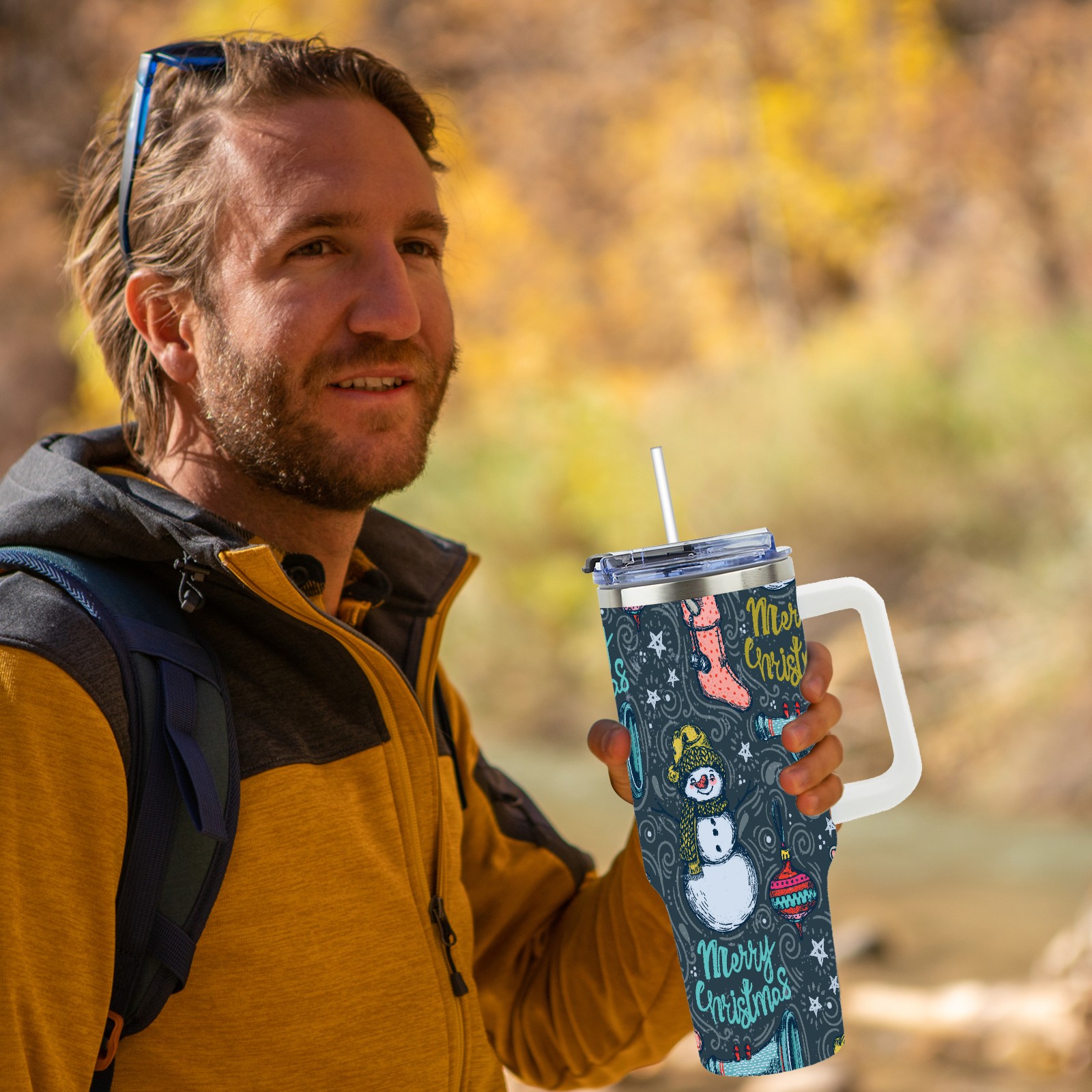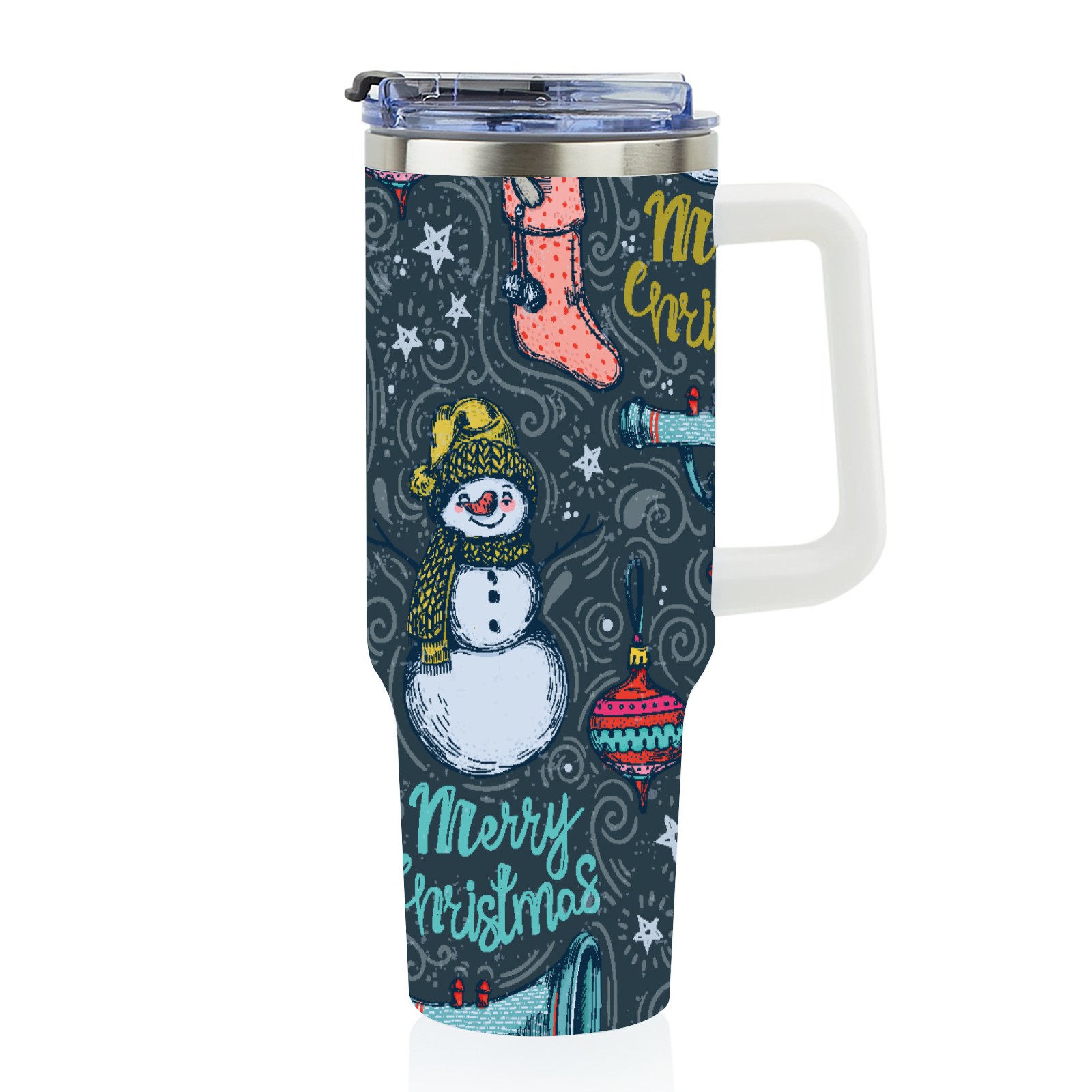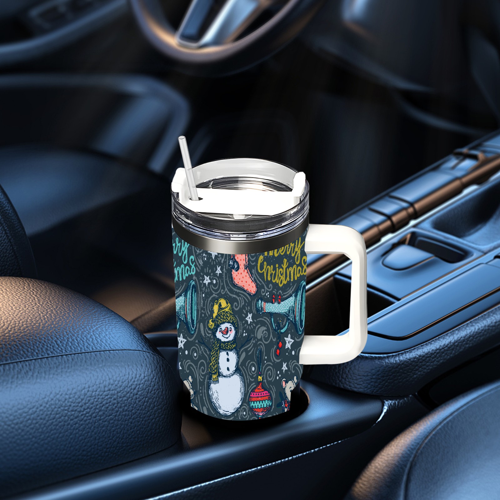 40oz Fully Printed Car Cup – Stylish Large-Capacity Tumbler with UV Printing TechnologyHand Drawn Christmas Snowman