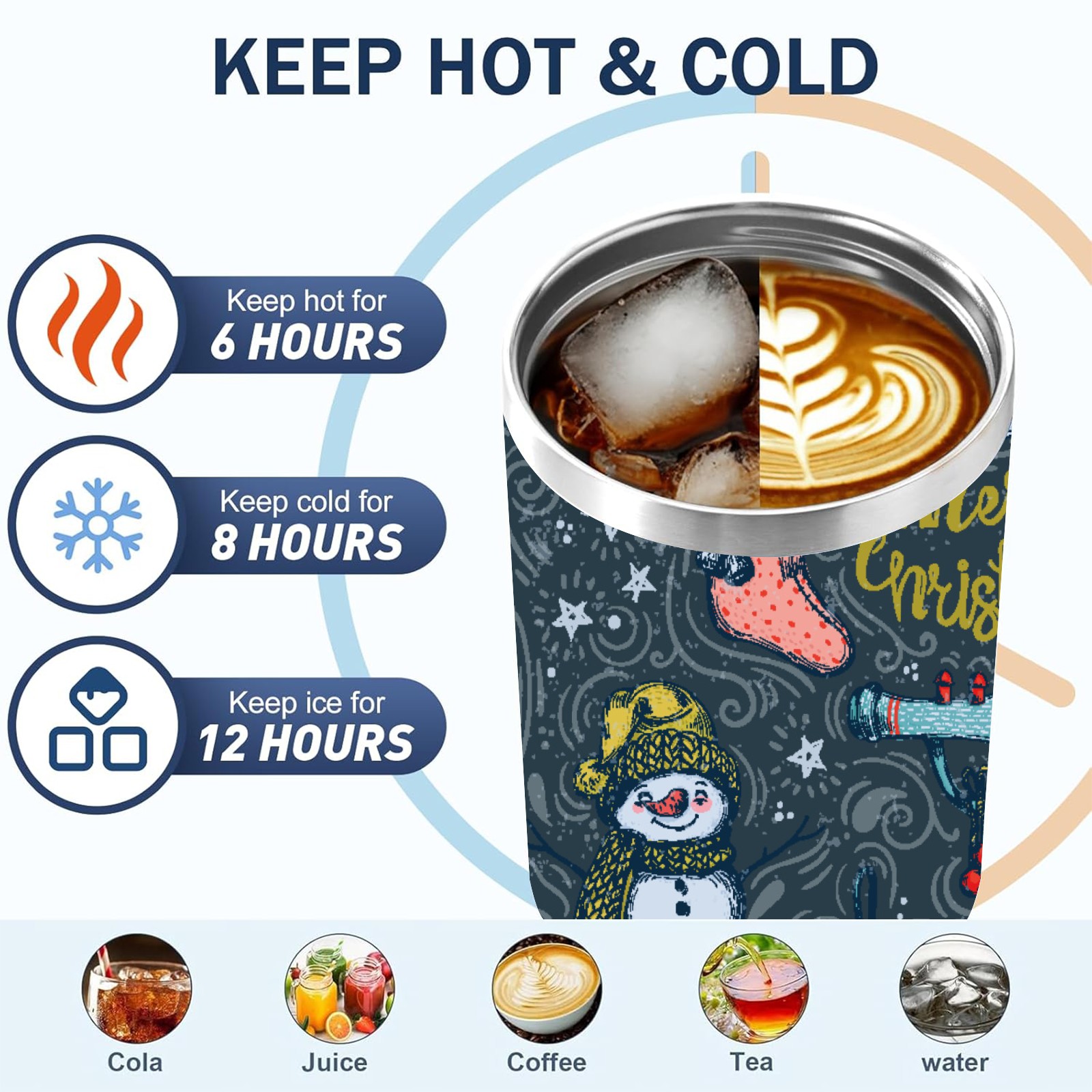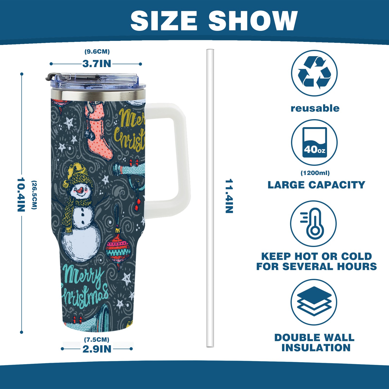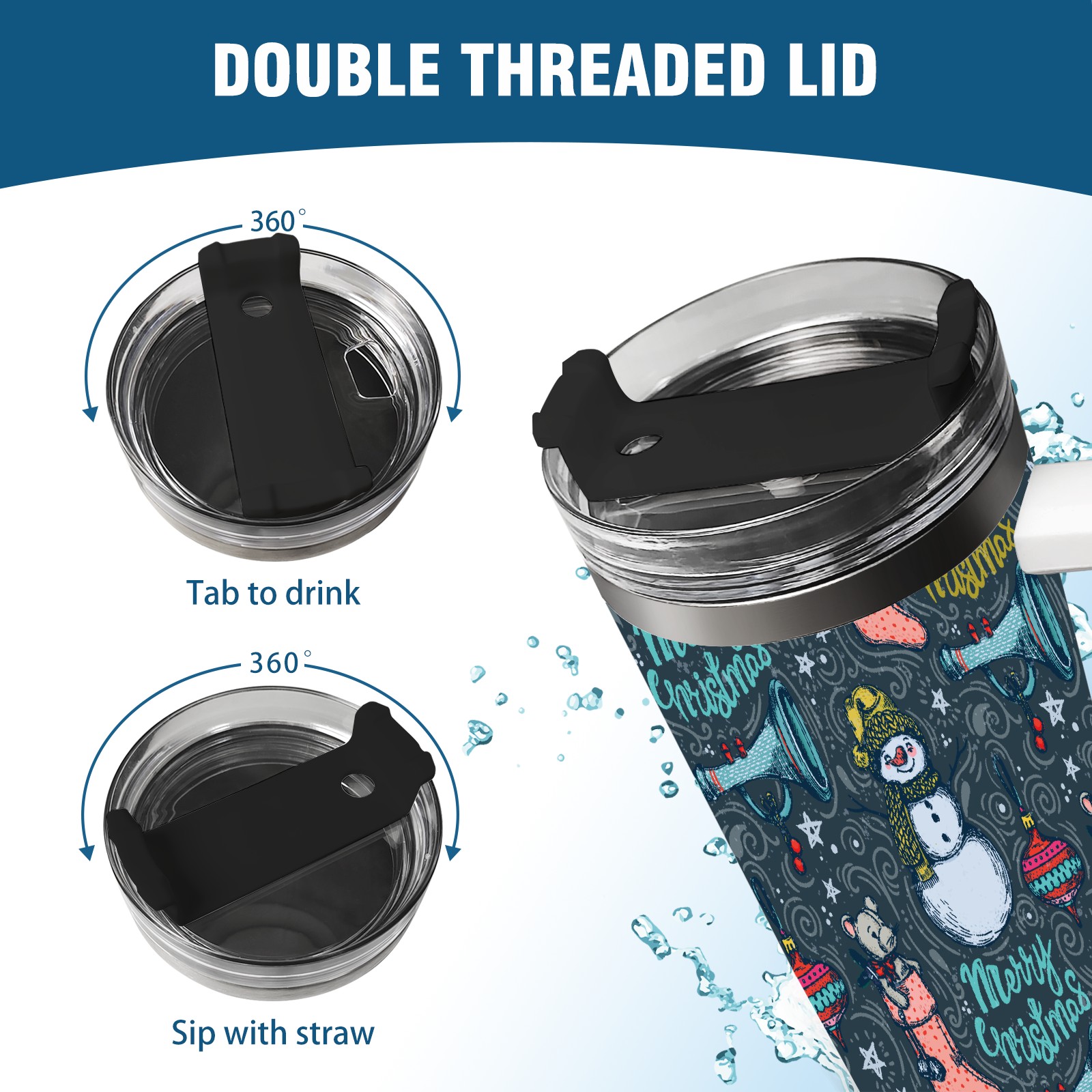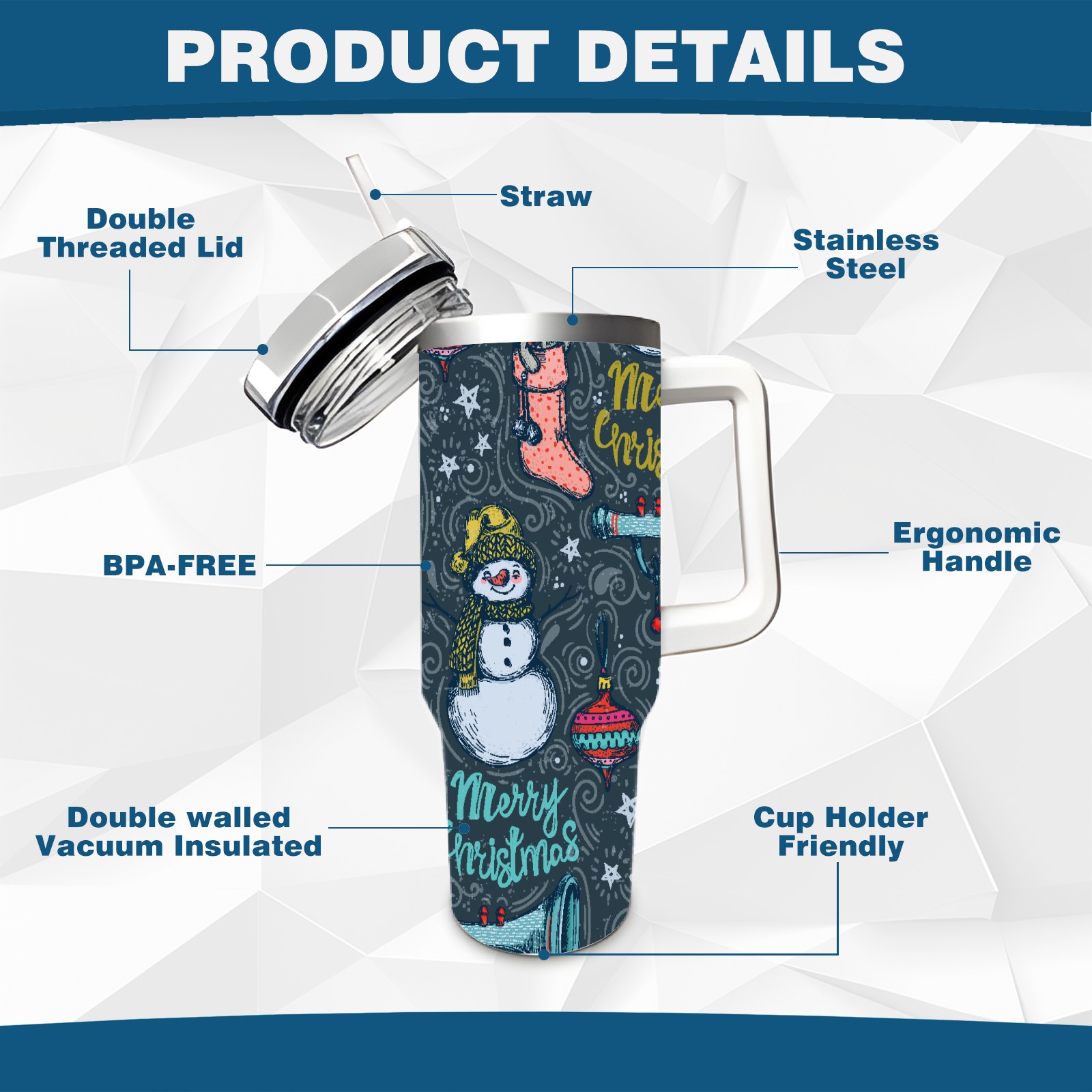 40oz Fully Printed Car Cup – Stylish Large-Capacity Tumbler with UV Printing TechnologyHand Drawn Christmas Snowman