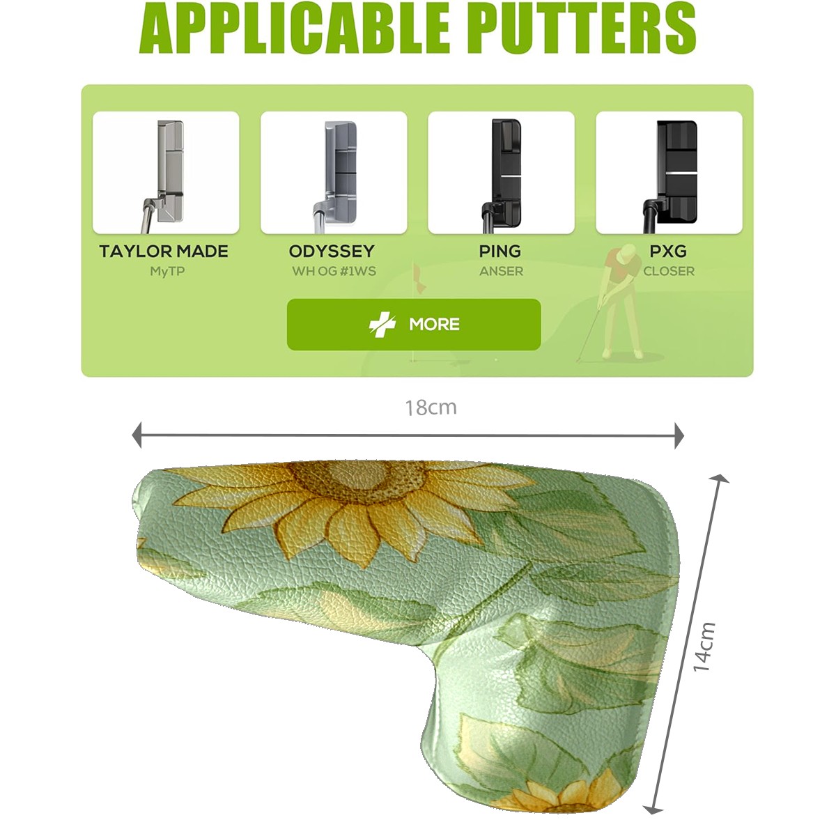 Golf Head Covers Blade Putter Cover, Protective Covers for Golf Clubs, Ideal Golf Accessories Gift for Men Women (Sunflowers)