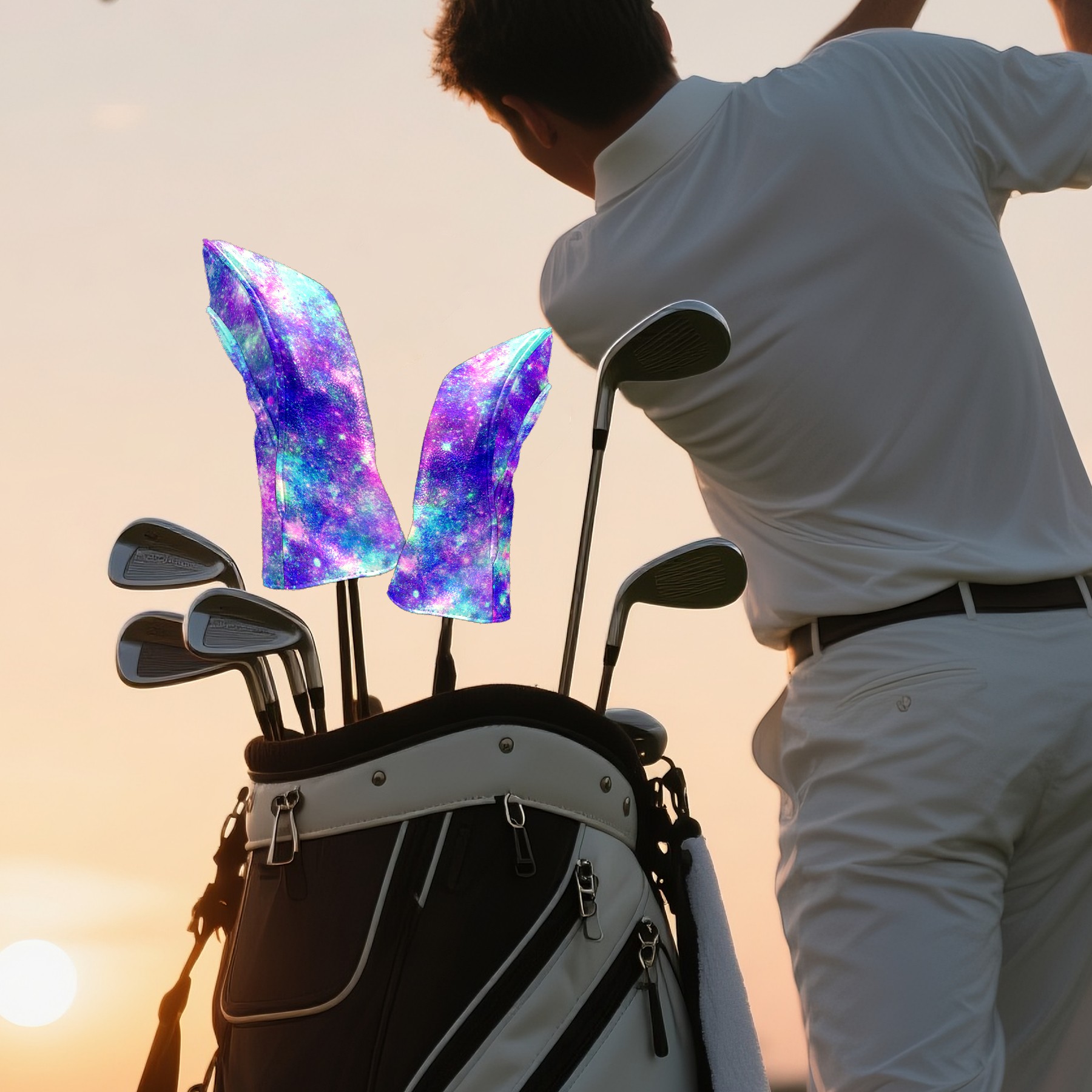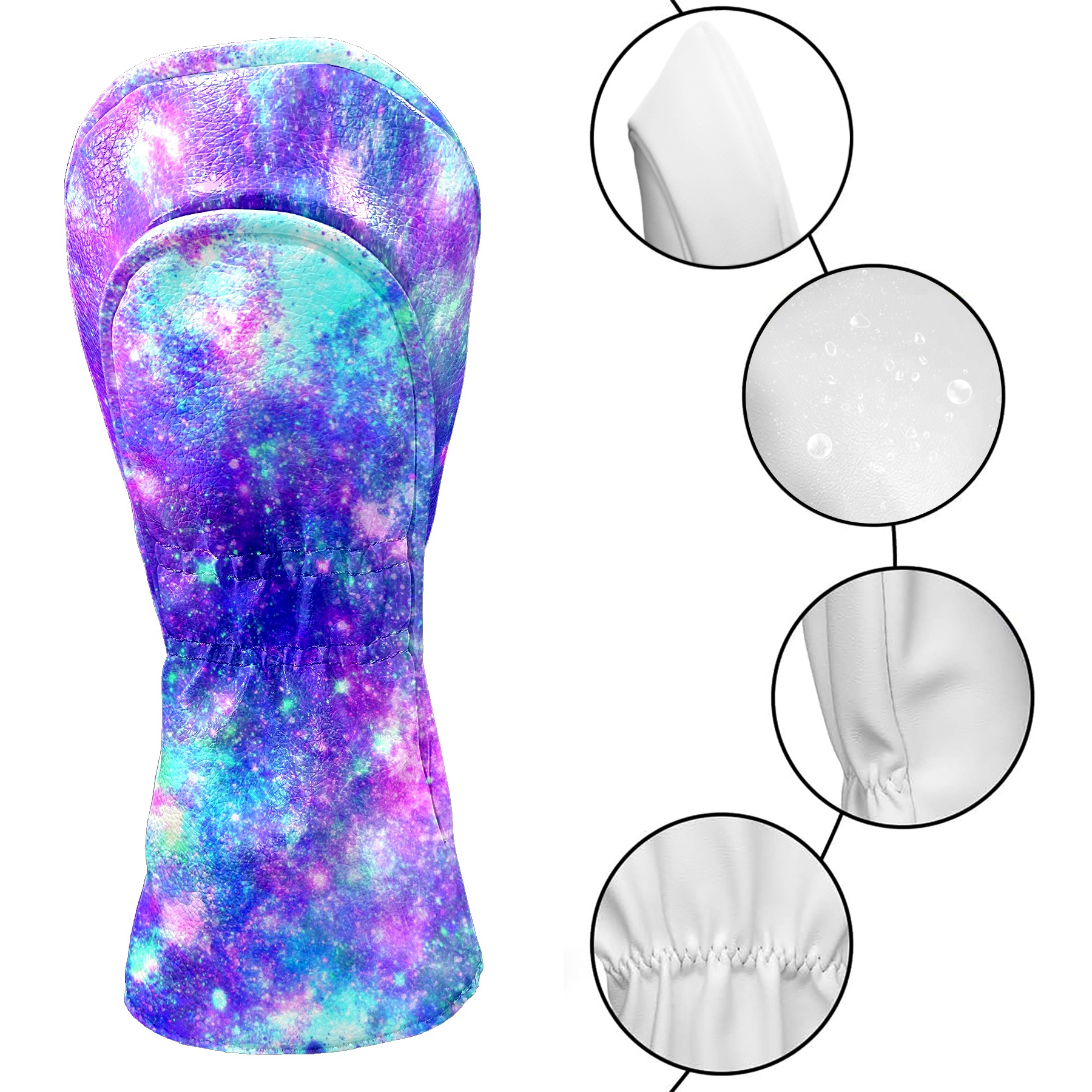 Golf Club Head Cover Premium Leather Driver Headcover, Golf Head Covers for Woods and Driver Waterproof Golf Headcovers with Anti-Scratch Lining for Men Women (Purple Galaxy Explosion Print)
