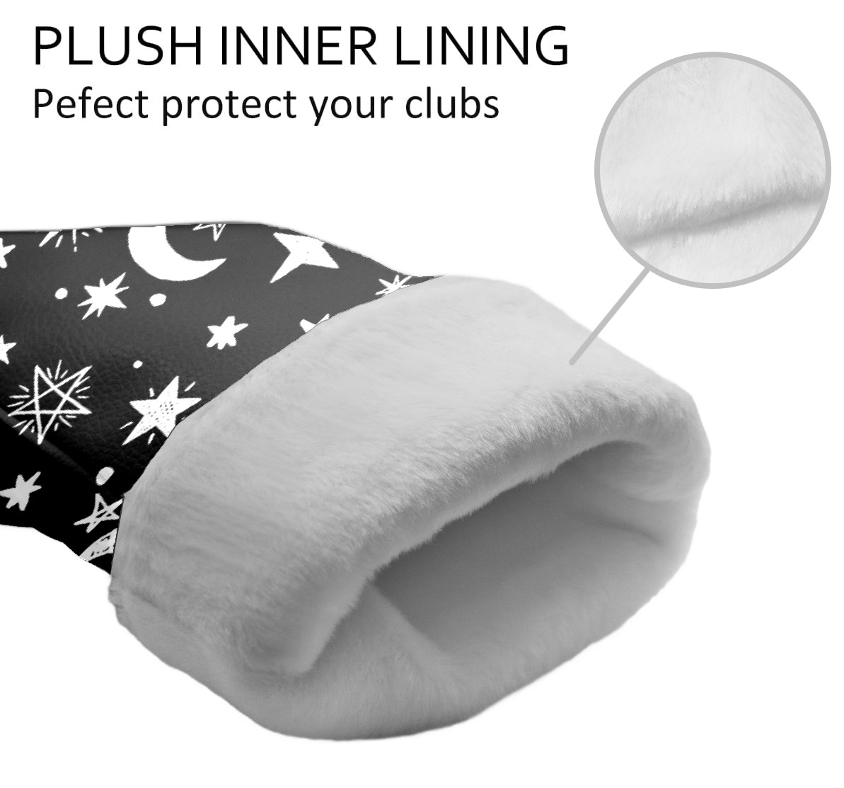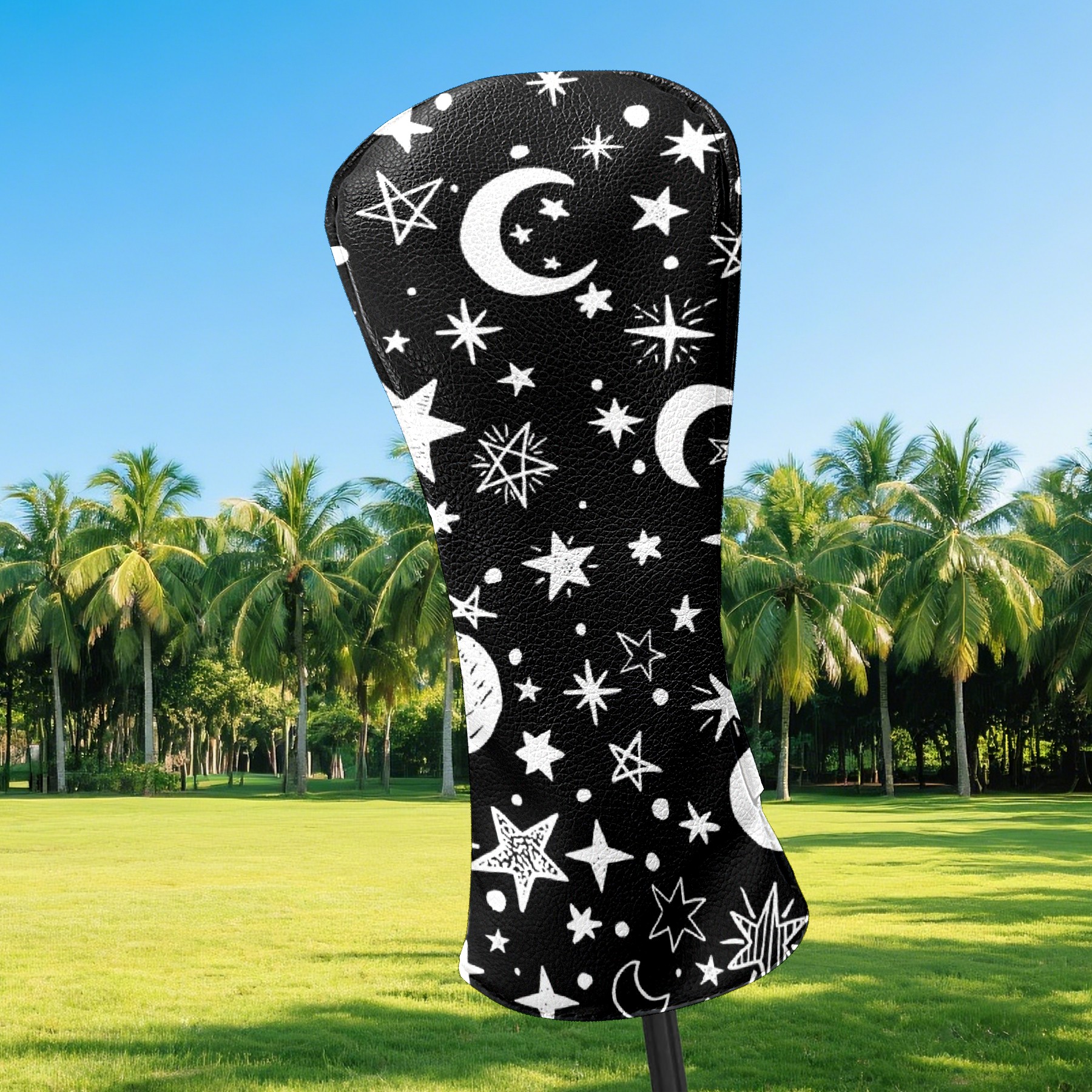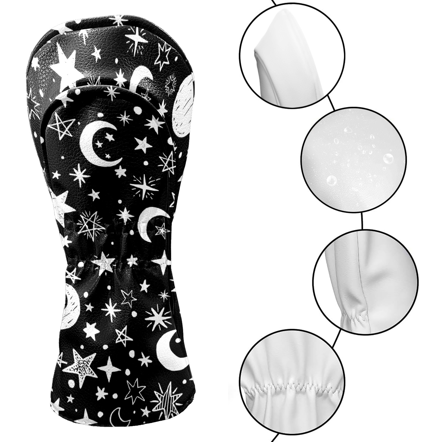 Golf Club Head Cover Premium Leather Driver Headcover, Golf Head Covers for Woods and Driver Waterproof Golf Headcovers with Anti-Scratch Lining for Men Women (Gothic Black White Moon Stars )