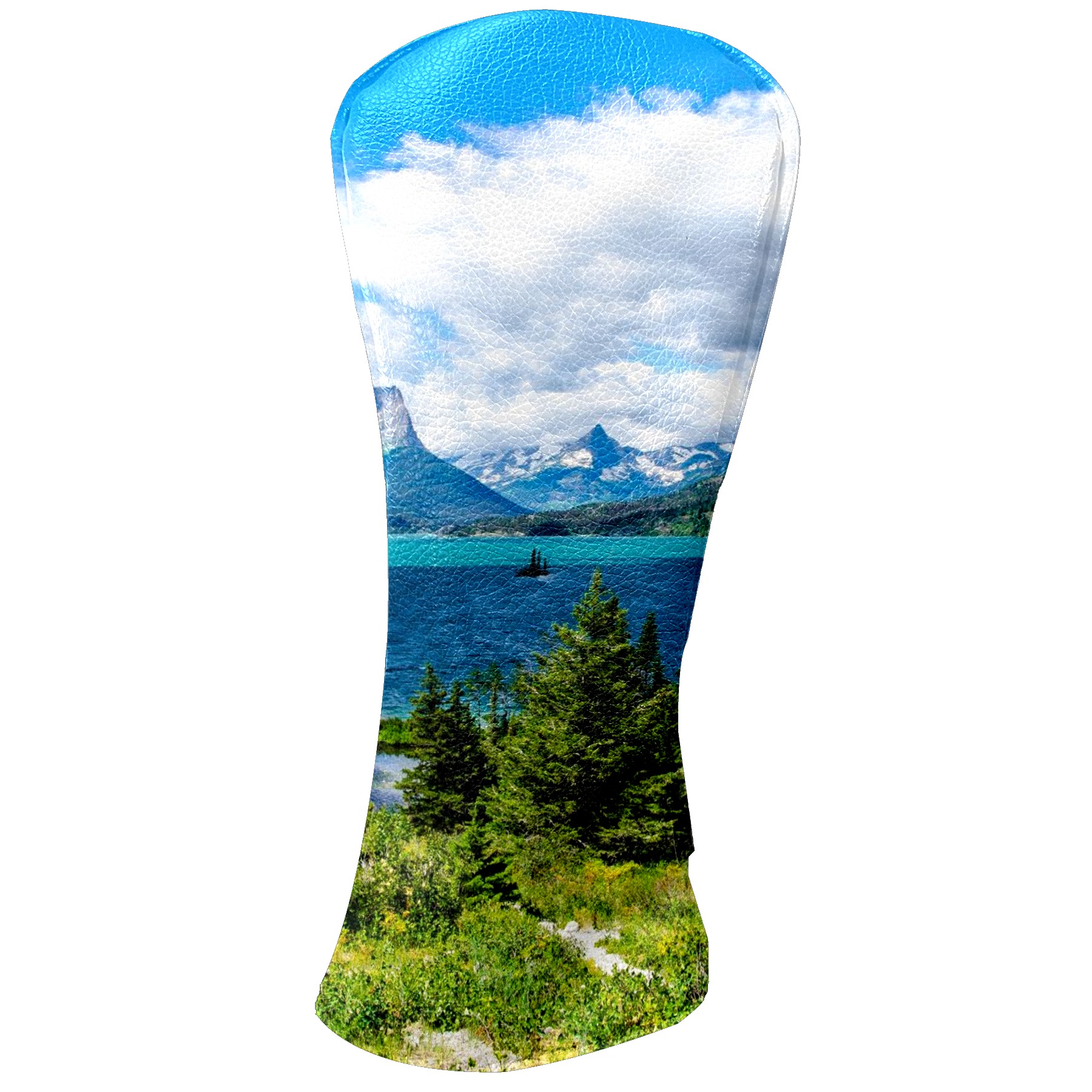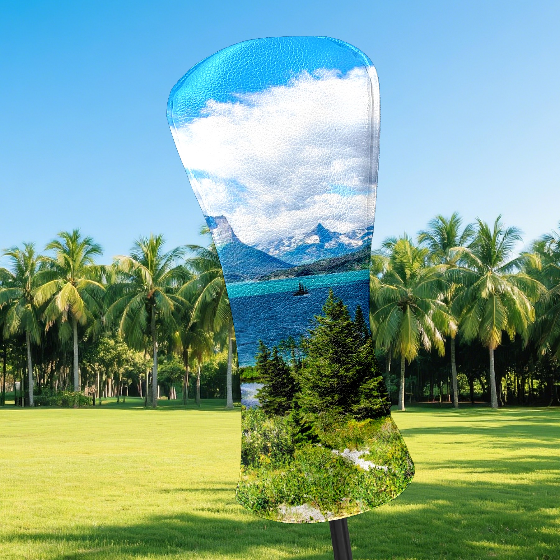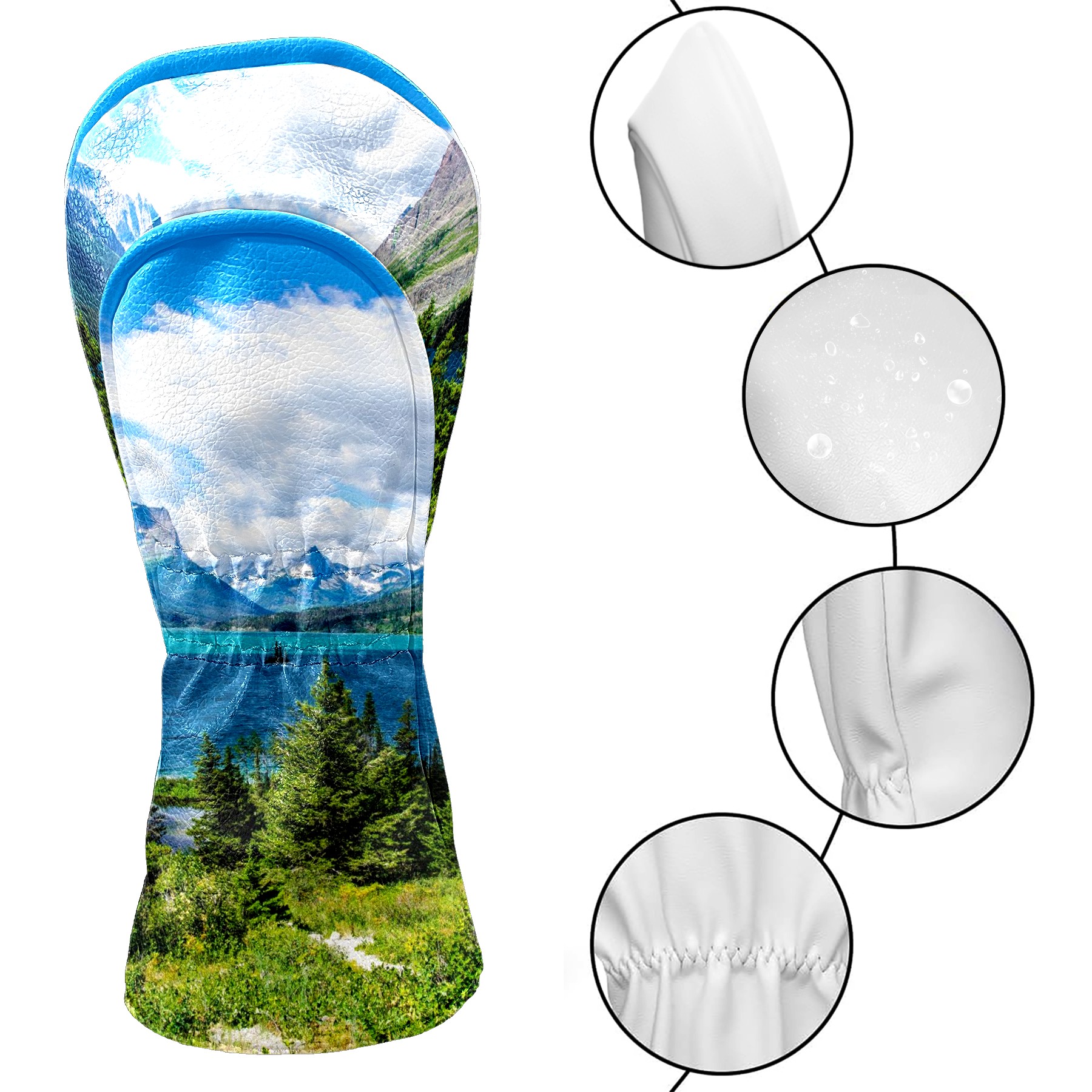 Golf Club Head Cover Premium Leather Driver Headcover, Golf Head Covers for Woods and Driver Waterproof Golf Headcovers with Anti-Scratch Lining for Men Women (Wild Nature View Clear Lake Mountain)