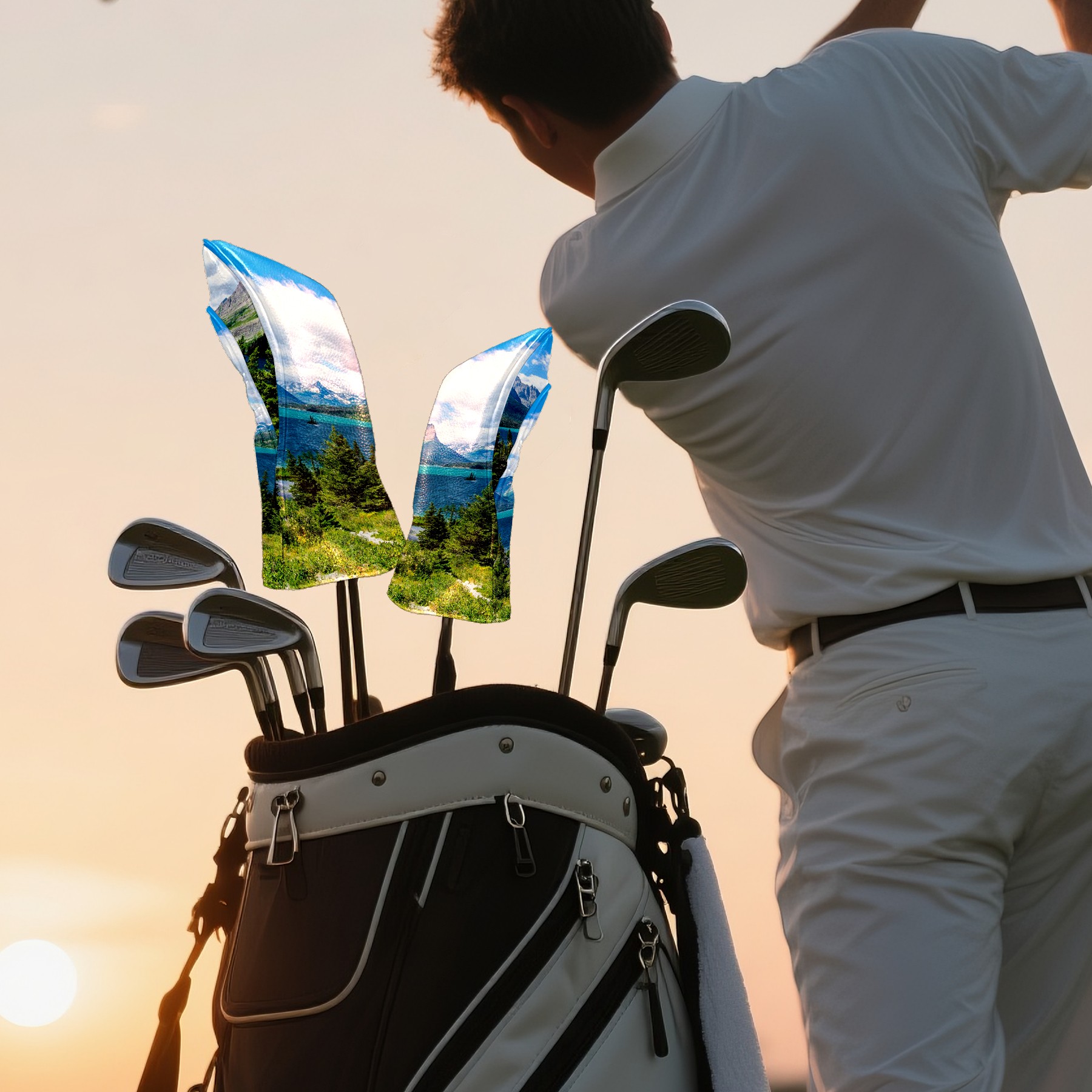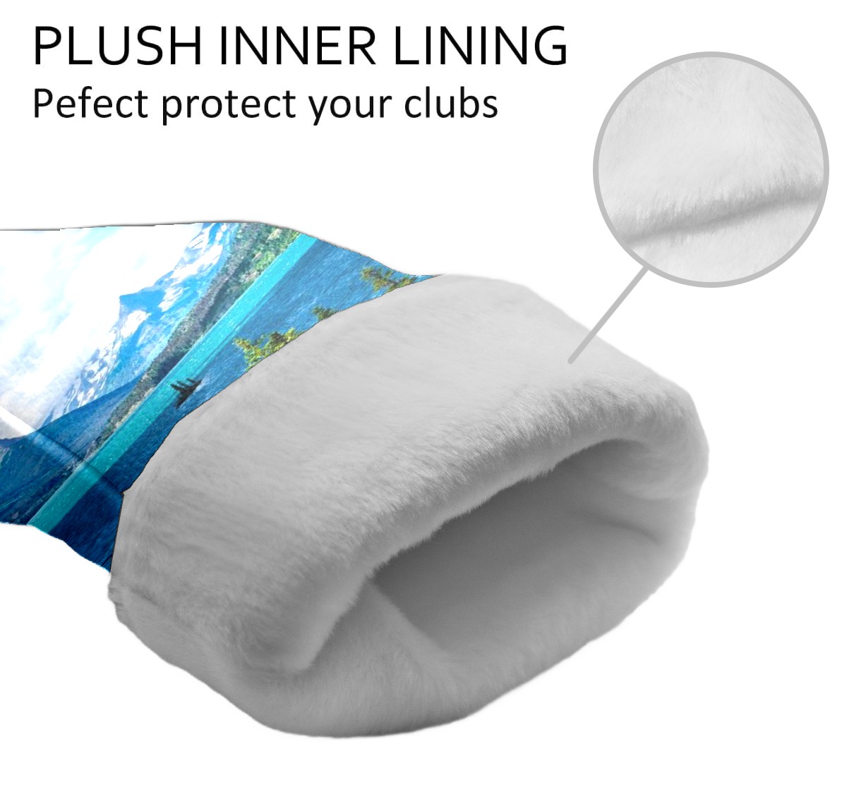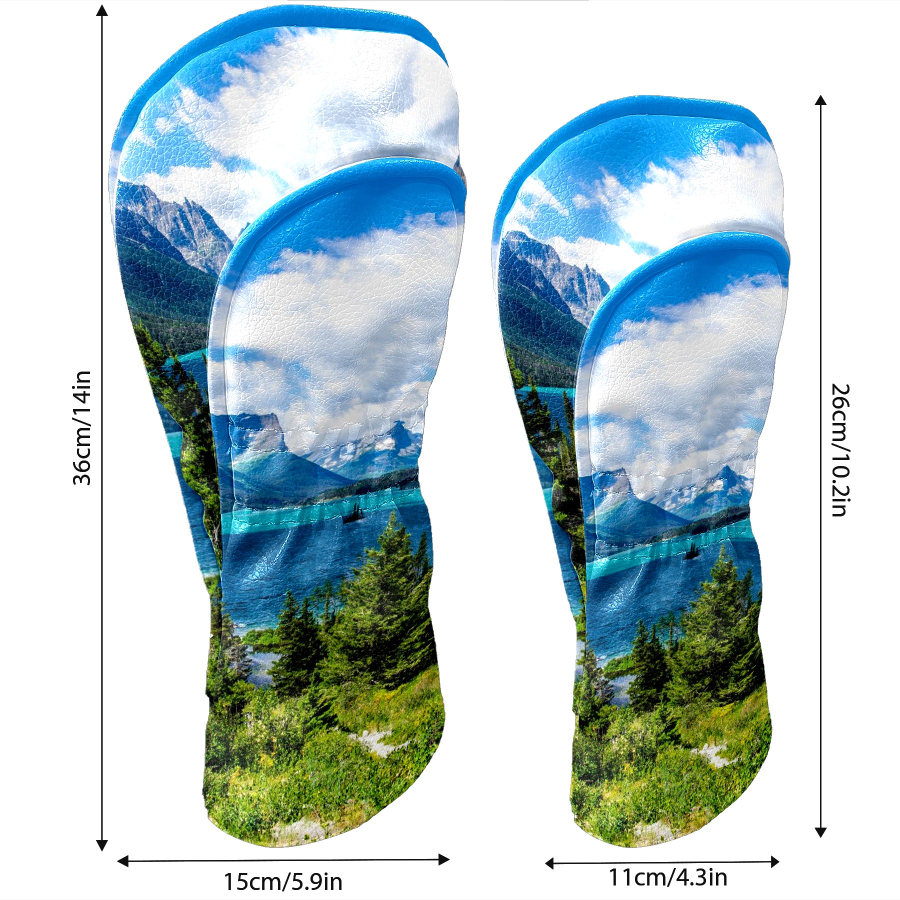 Golf Club Head Cover Premium Leather Driver Headcover, Golf Head Covers for Woods and Driver Waterproof Golf Headcovers with Anti-Scratch Lining for Men Women (Wild Nature View Clear Lake Mountain)