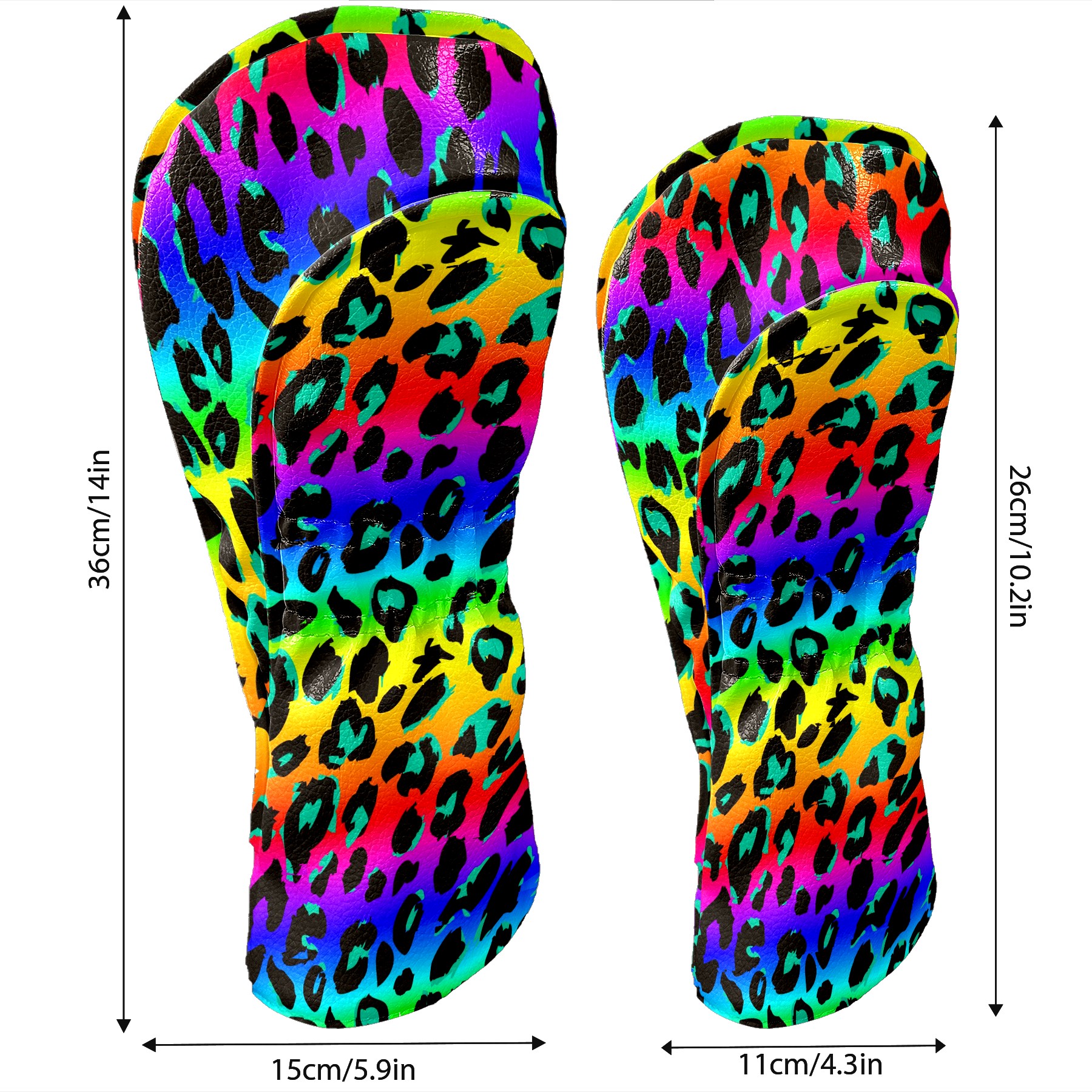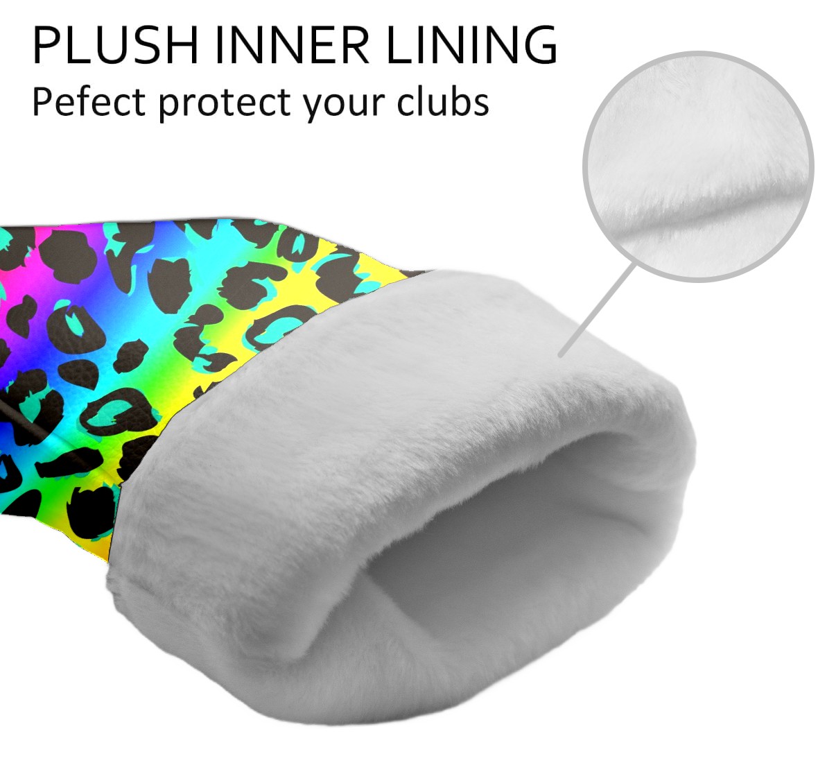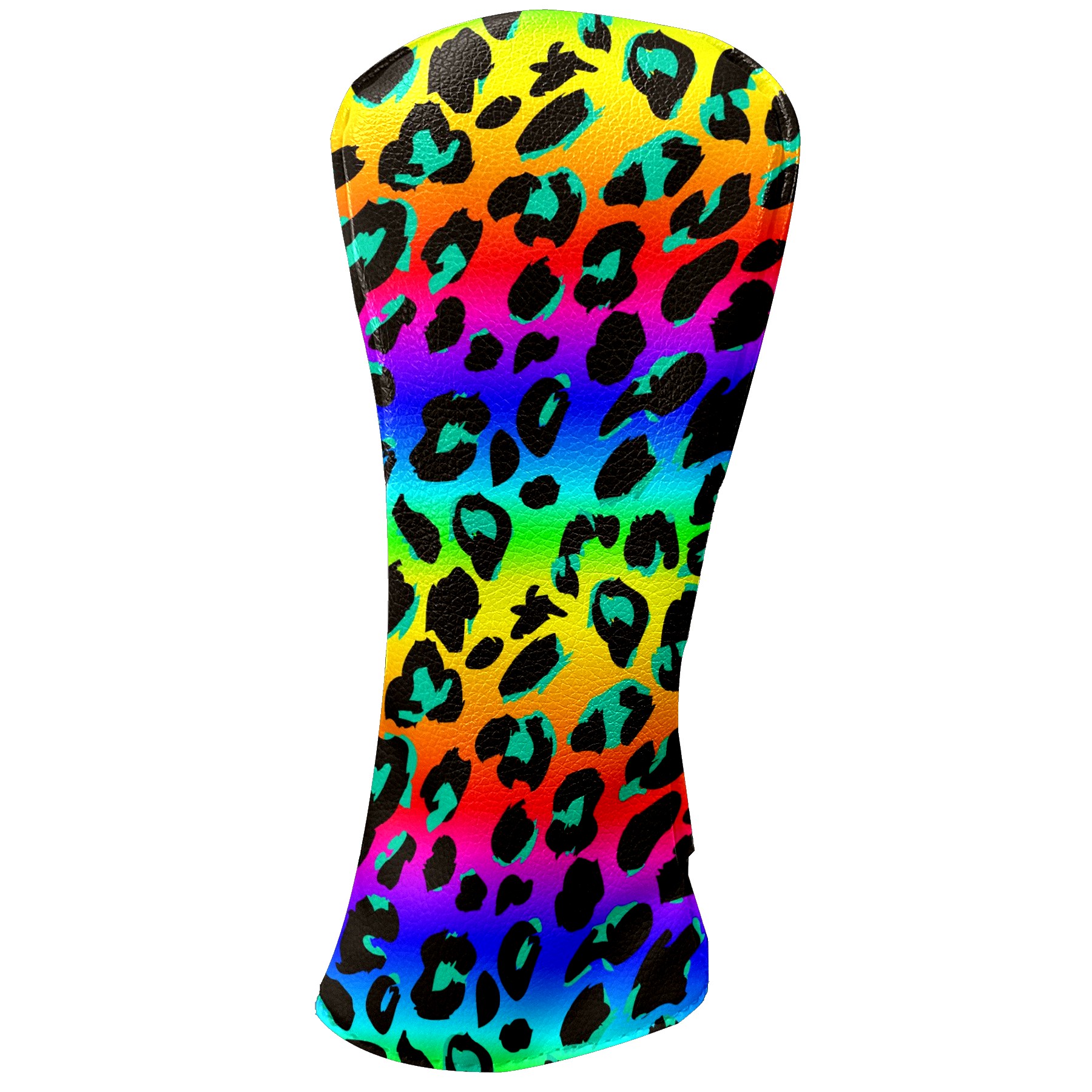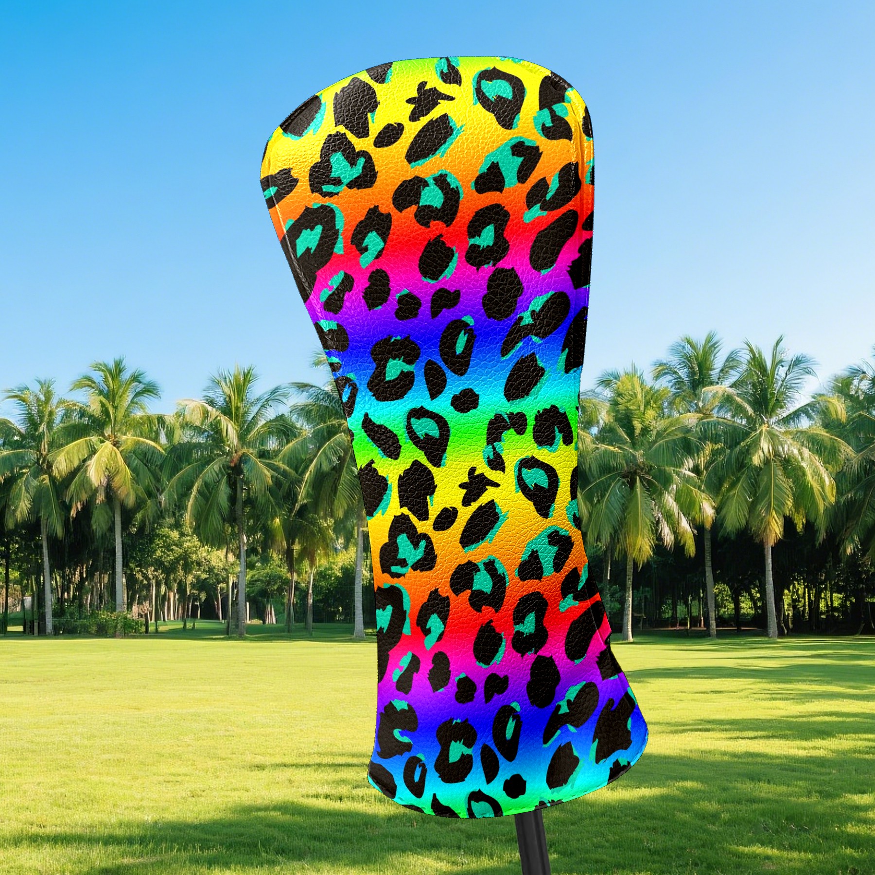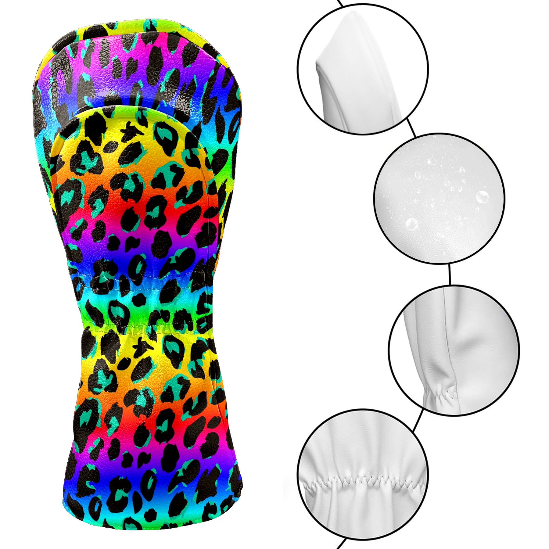 Golf Club Head Cover Premium Leather Driver Headcover, Golf Head Covers for Woods and Driver Waterproof Golf Headcovers with Anti-Scratch Lining for Men Women (Rainbow Leopard)