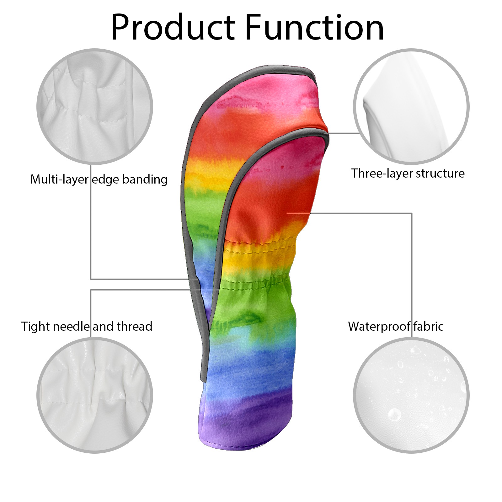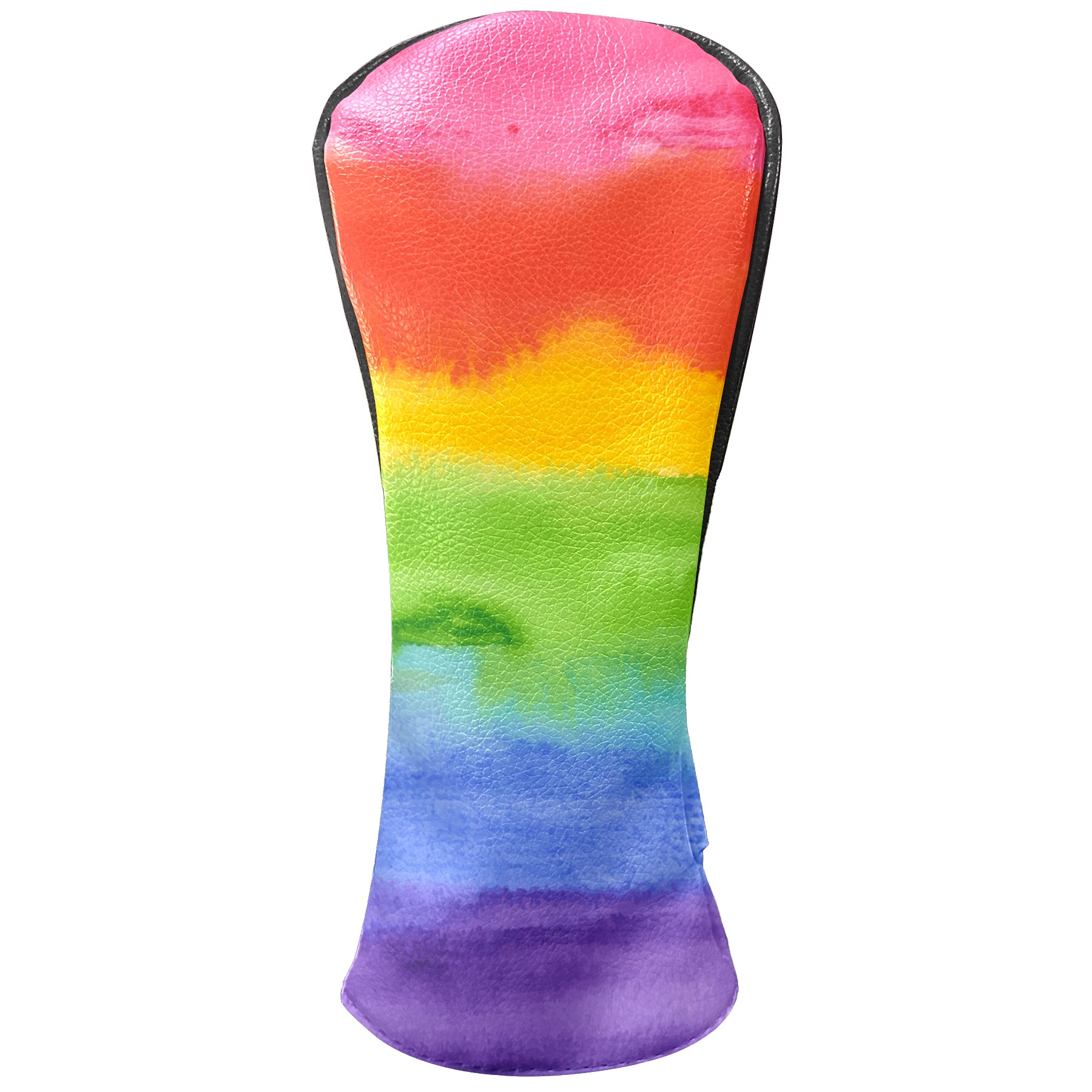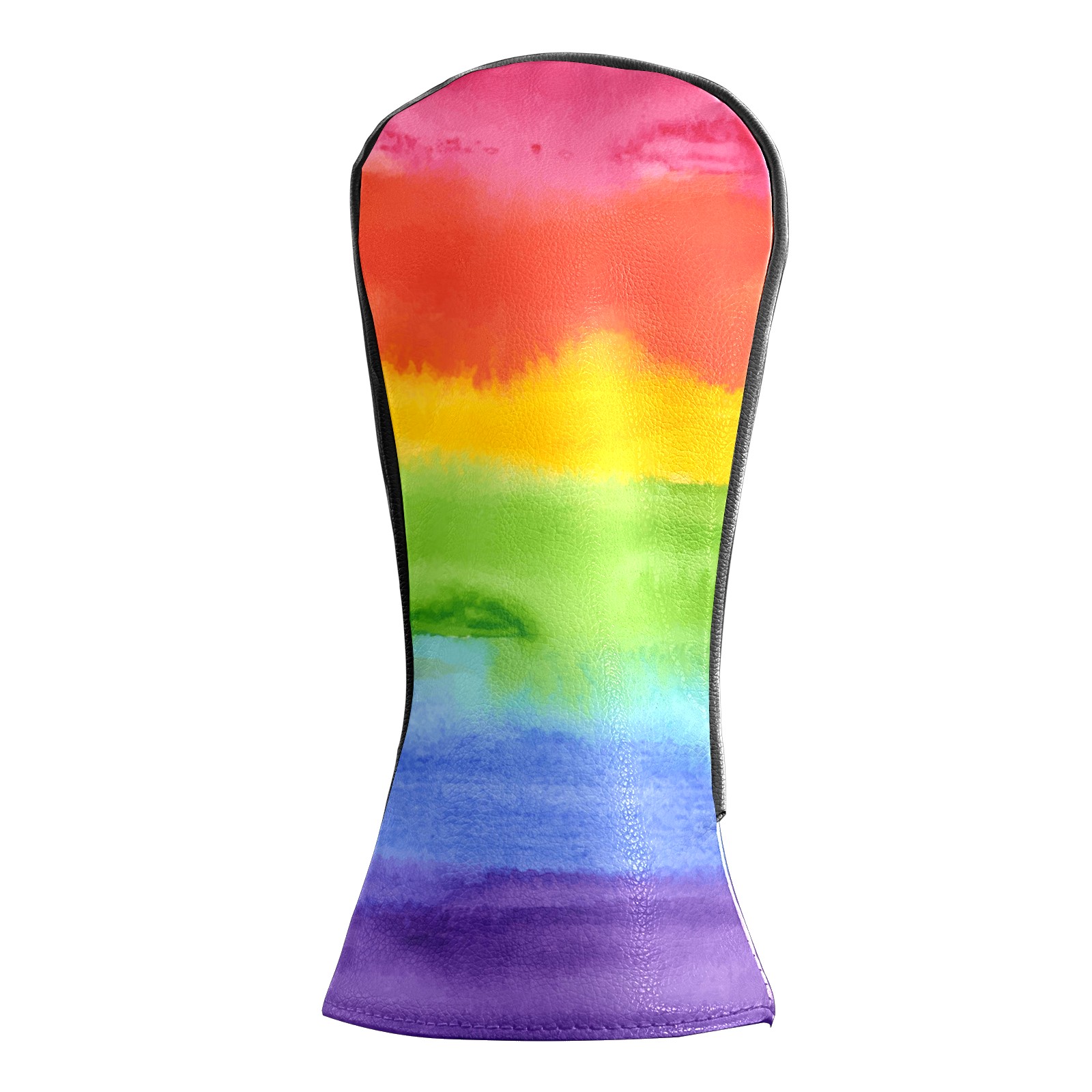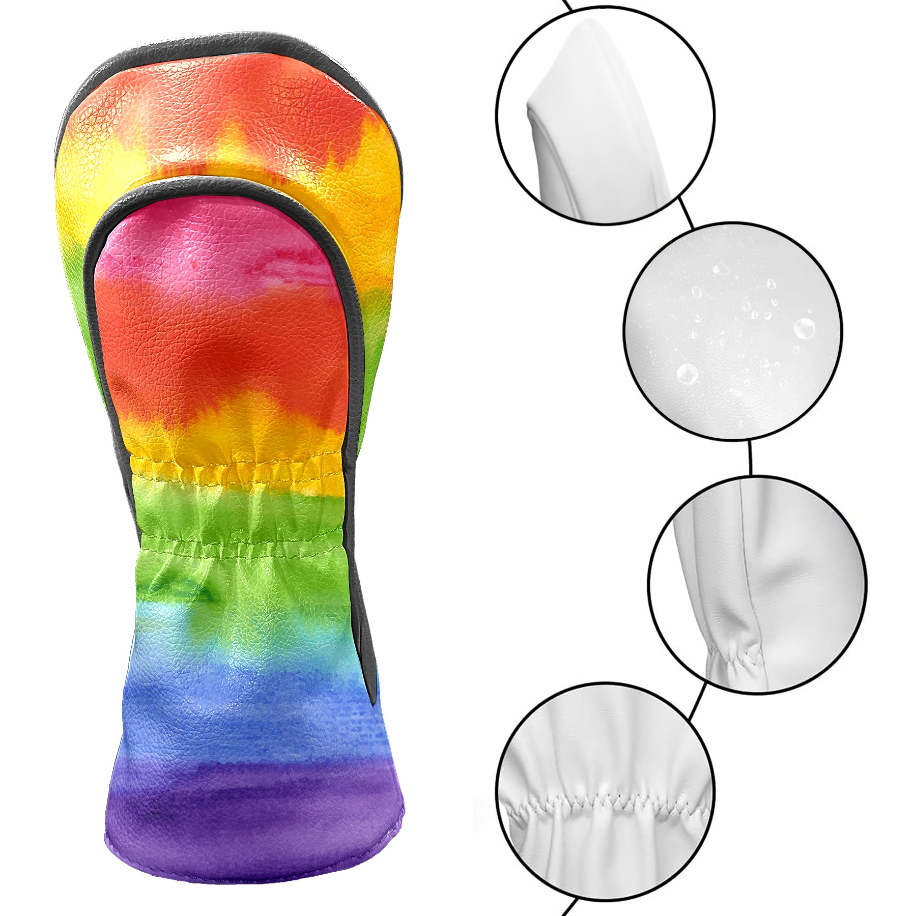 Golf Club Head Cover Premium Leather Driver Headcover, Golf Head Covers for Woods and Driver Waterproof Golf Headcovers with Anti-Scratch Lining for Men Women (Watercolor Rainbow Tie Dye)