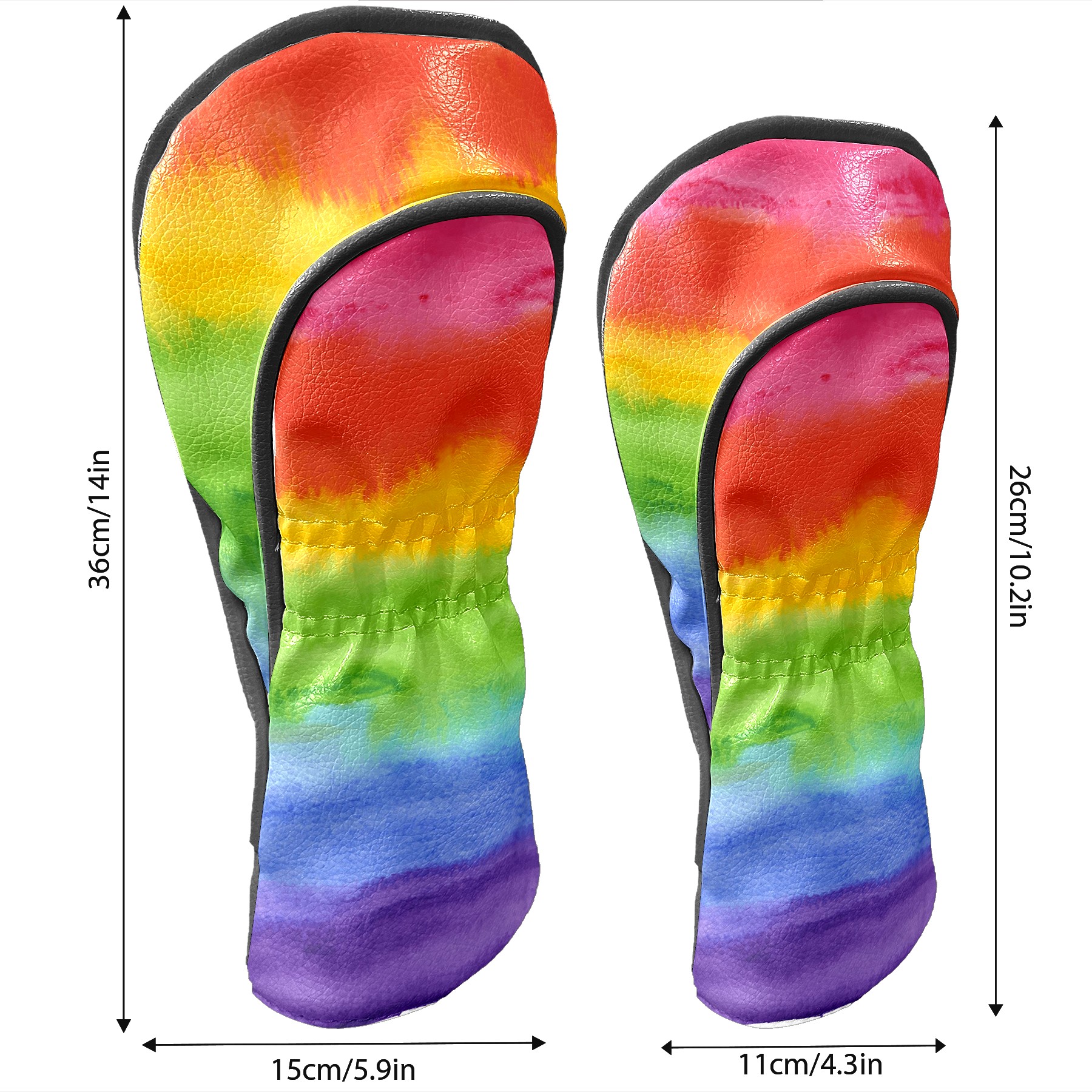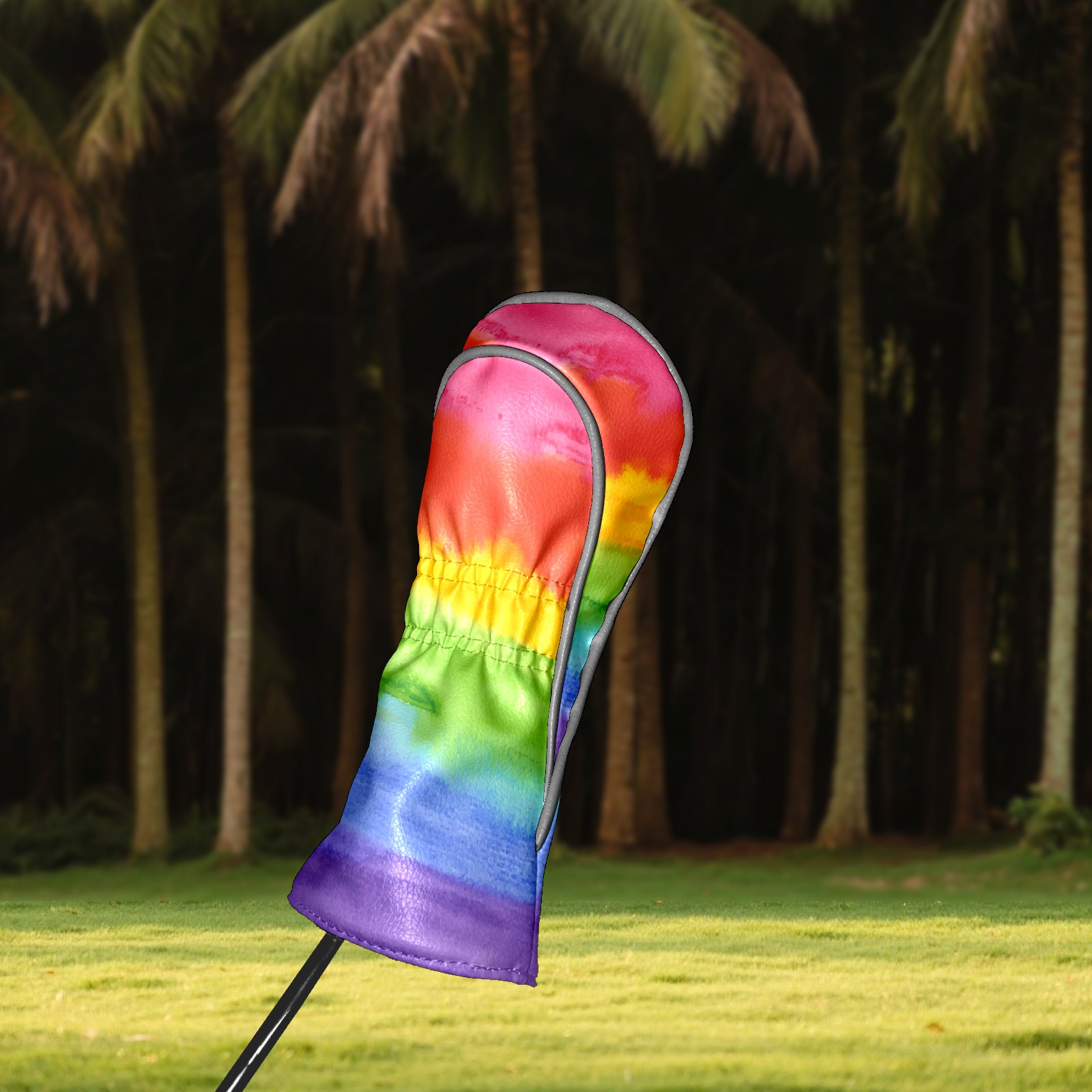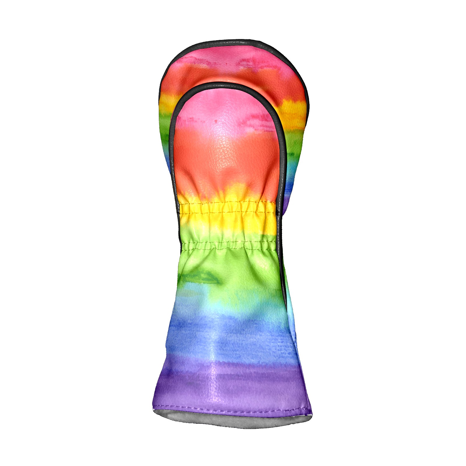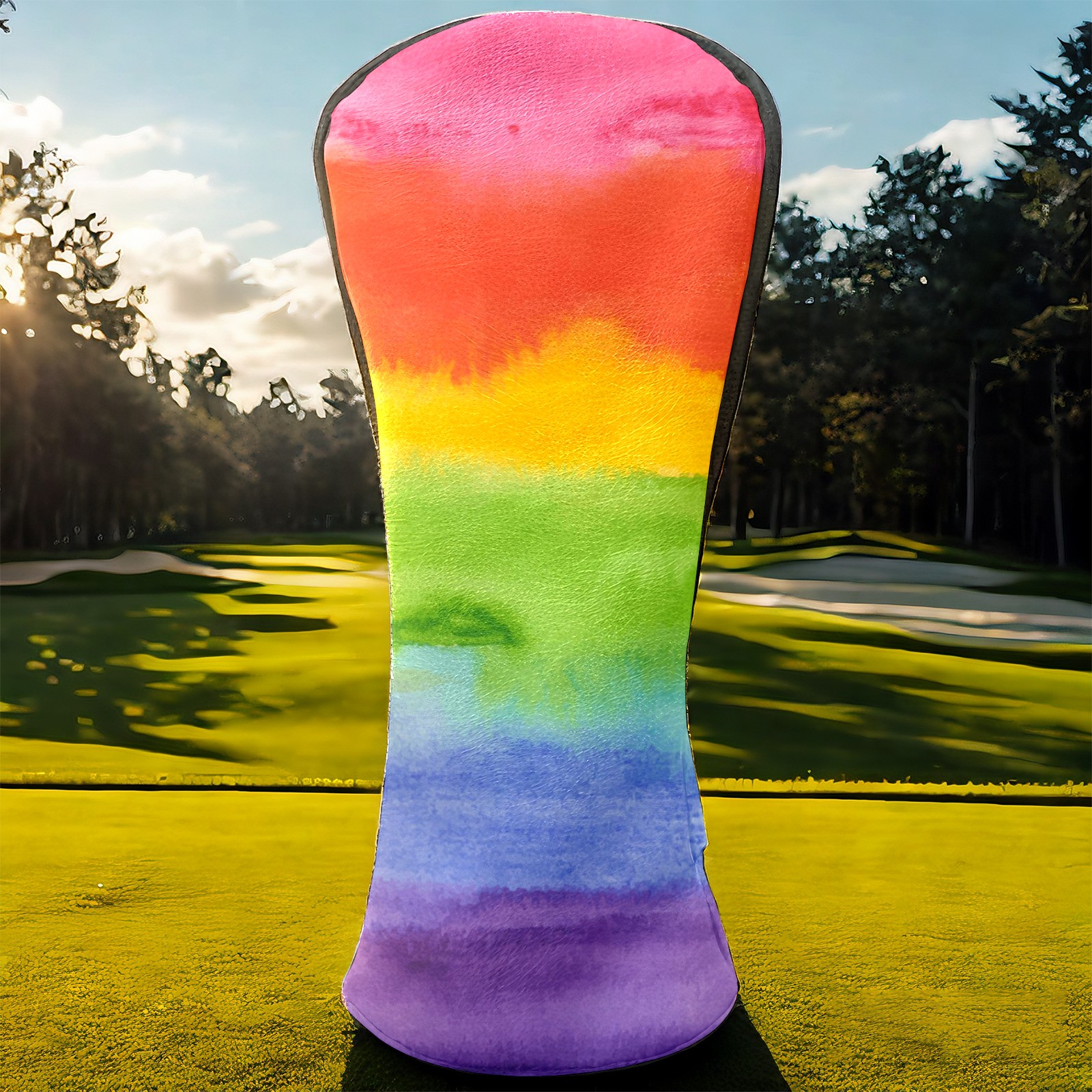 Golf Club Head Cover Premium Leather Driver Headcover, Golf Head Covers for Woods and Driver Waterproof Golf Headcovers with Anti-Scratch Lining for Men Women (Watercolor Rainbow Tie Dye)