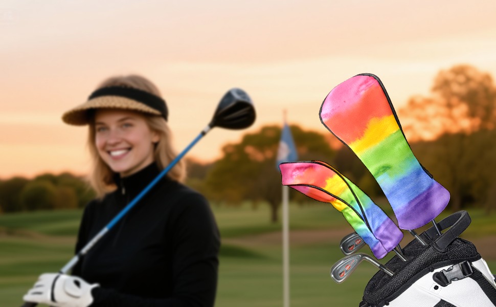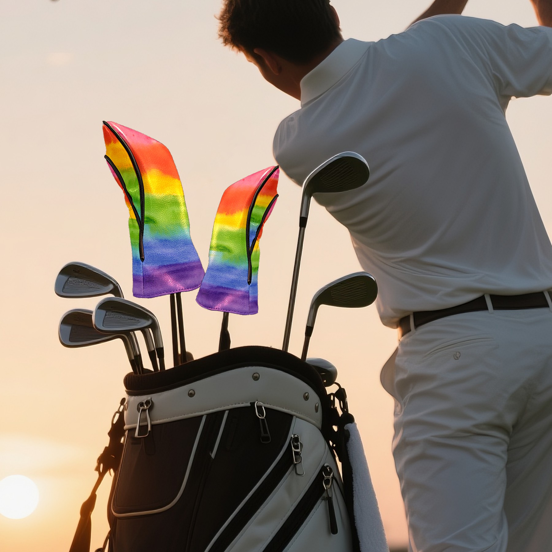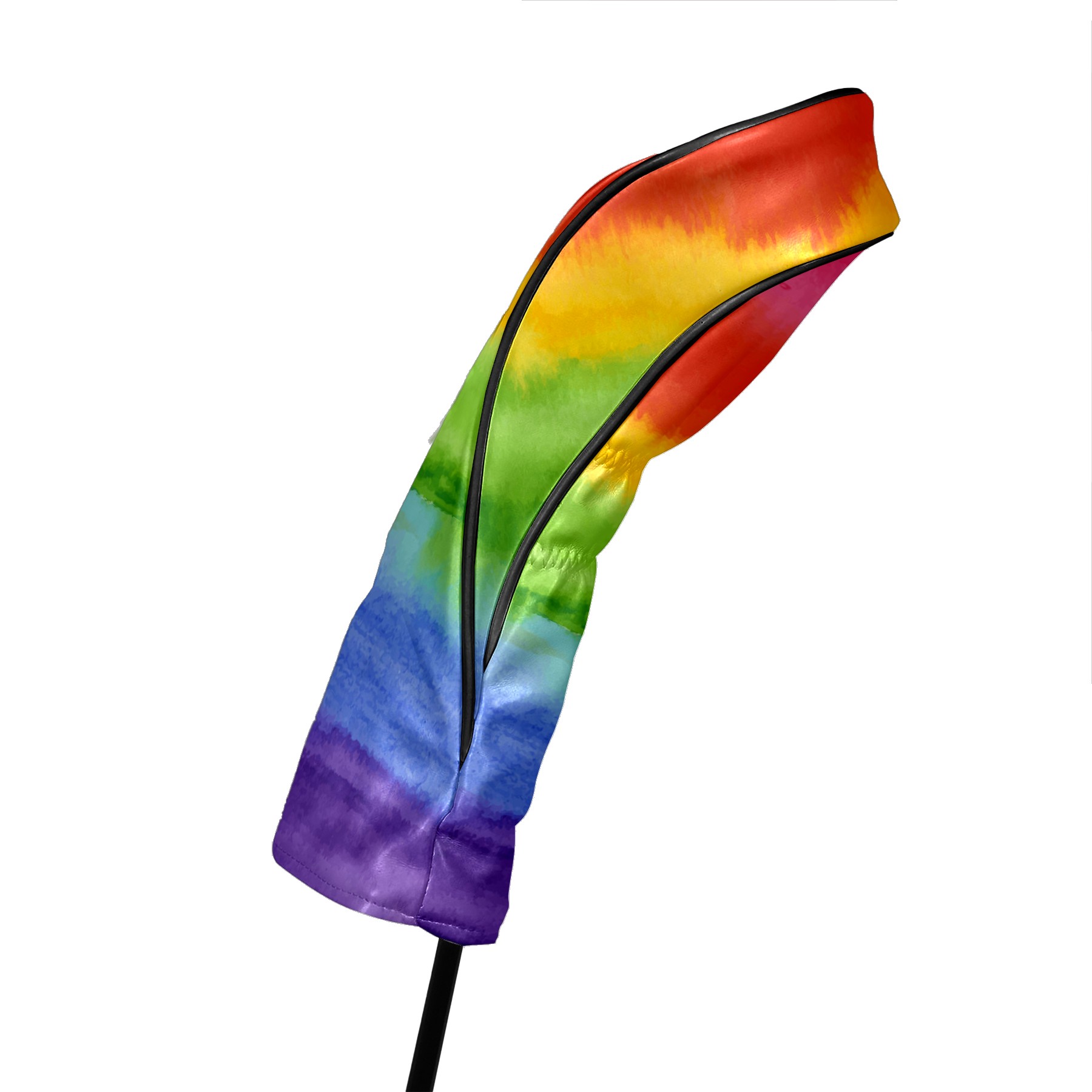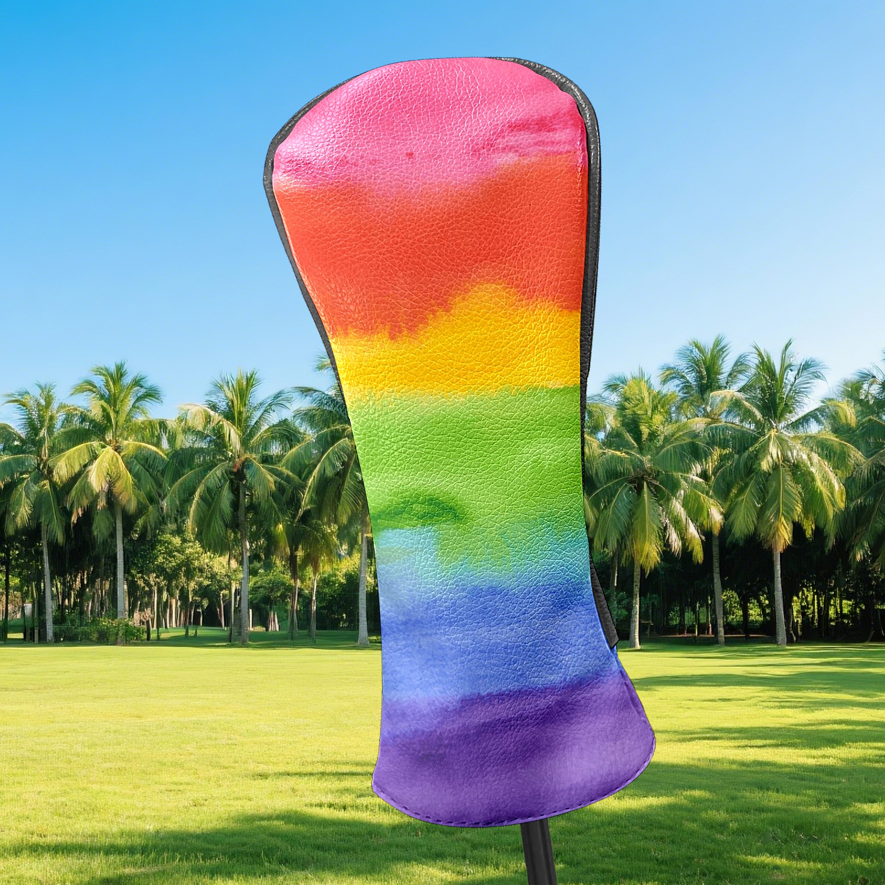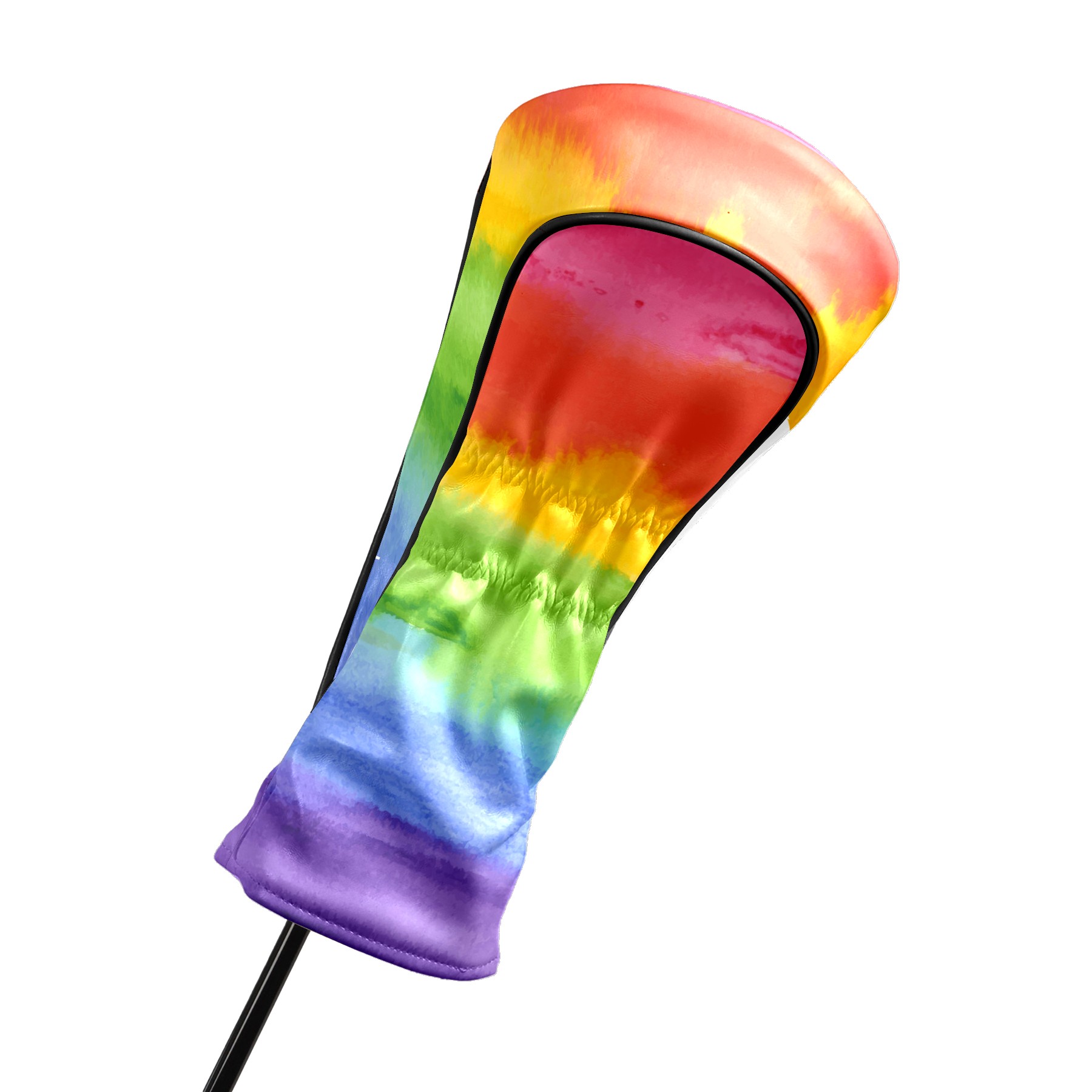 Golf Club Head Cover Premium Leather Driver Headcover, Golf Head Covers for Woods and Driver Waterproof Golf Headcovers with Anti-Scratch Lining for Men Women (Watercolor Rainbow Tie Dye)