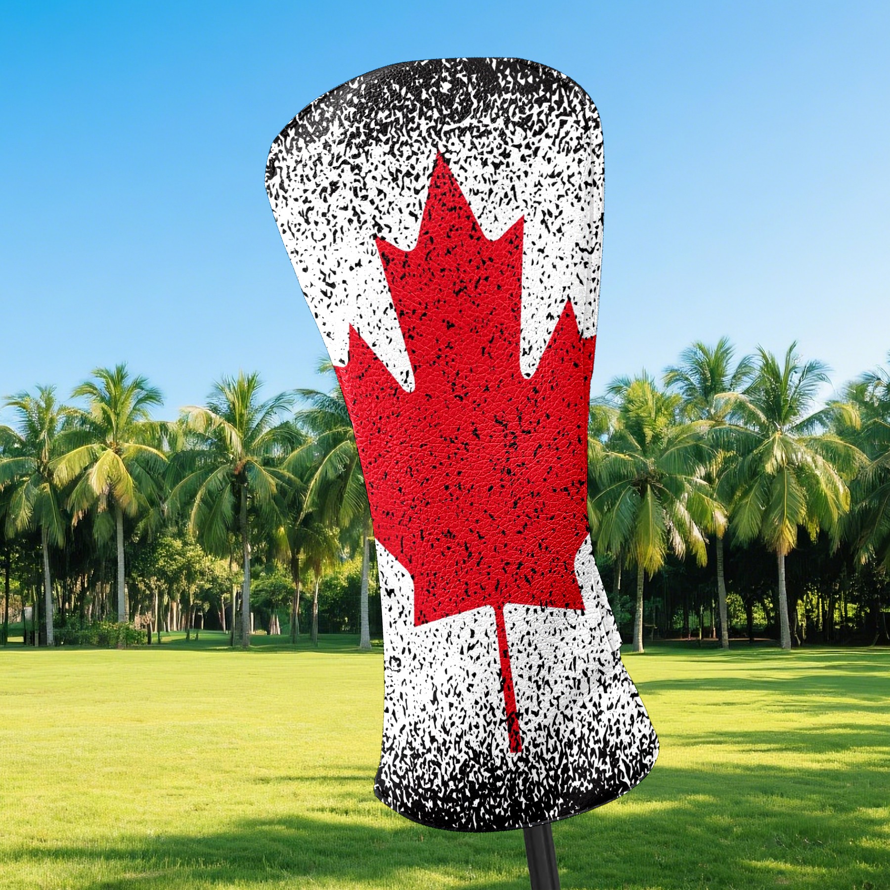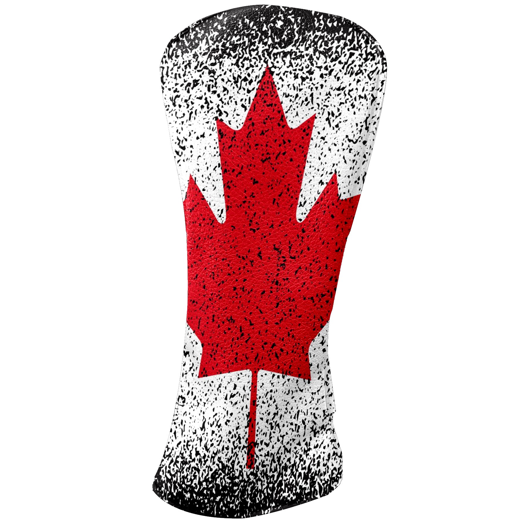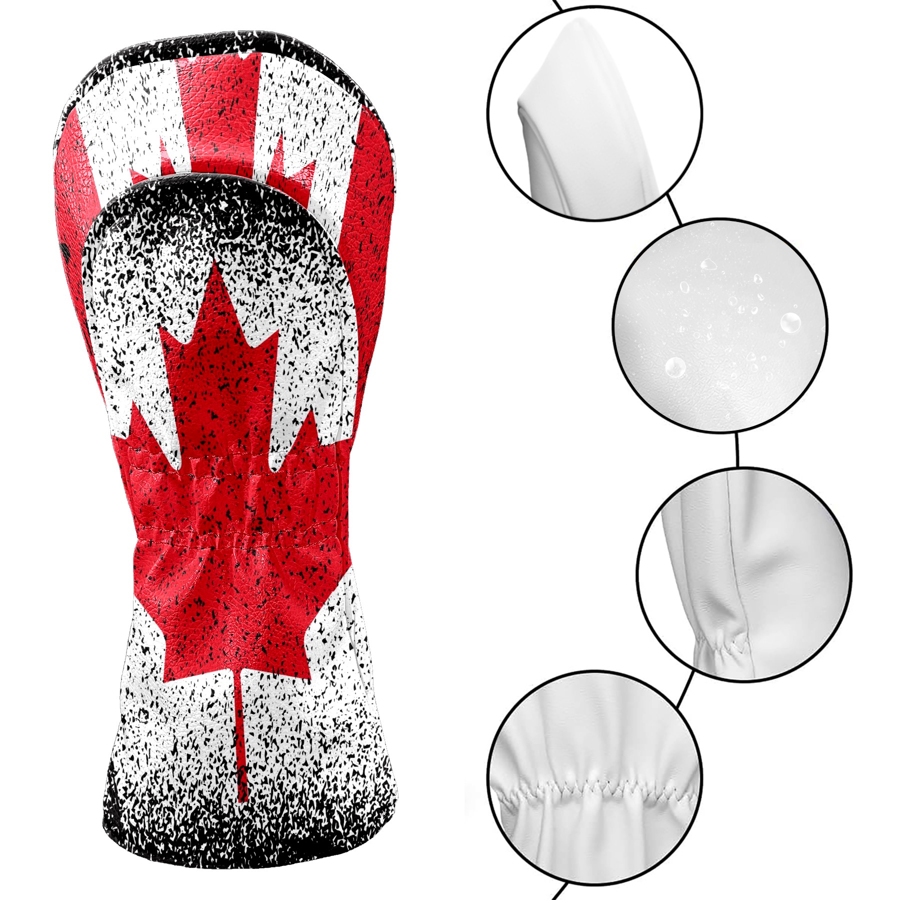 Golf Club Head Cover Premium Leather Driver Headcover, Golf Head Covers for Woods and Driver Waterproof Golf Headcovers with Anti-Scratch Lining for Men Women (Canada Grunge Flag Maple Leaf Red White Black)