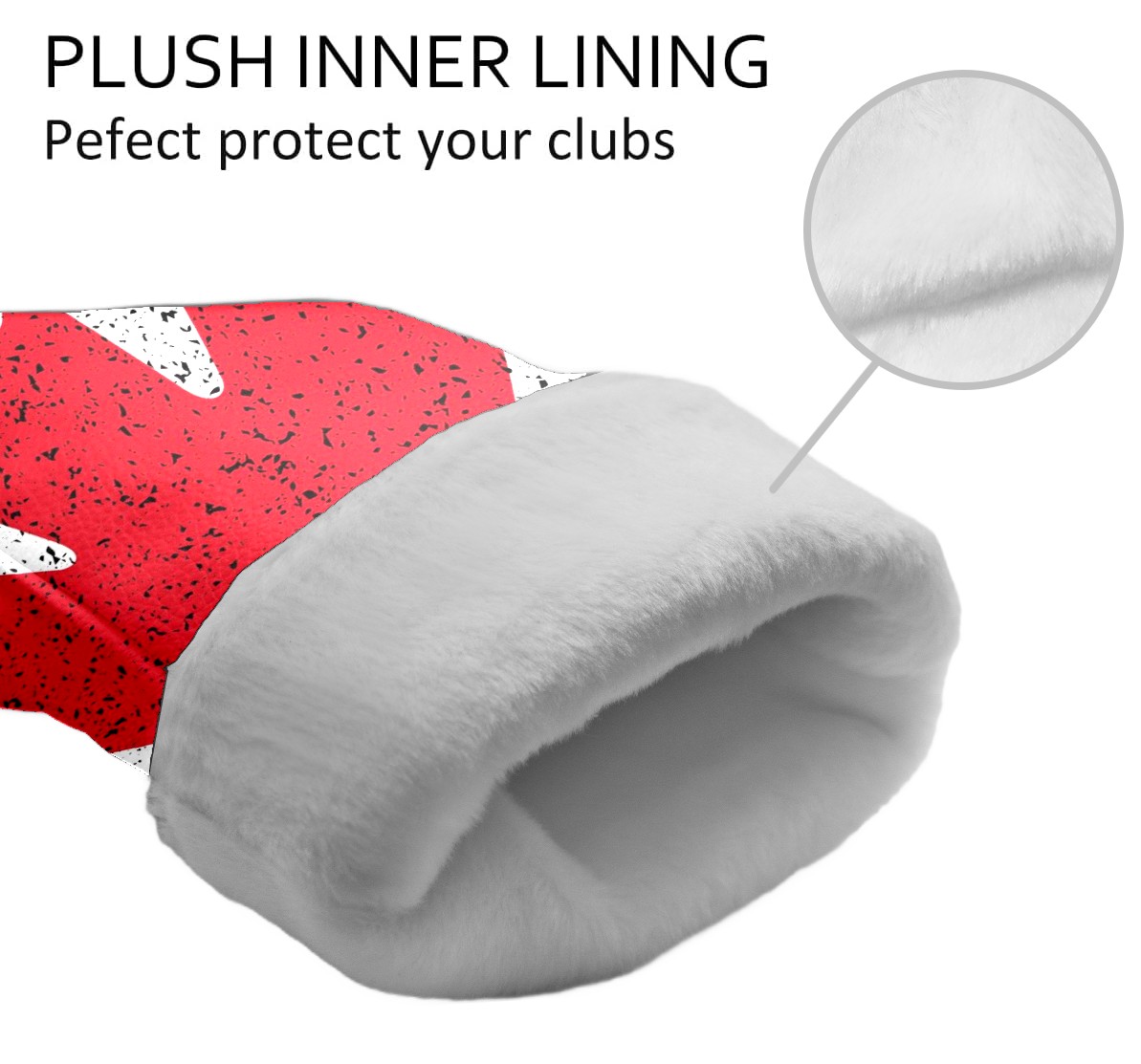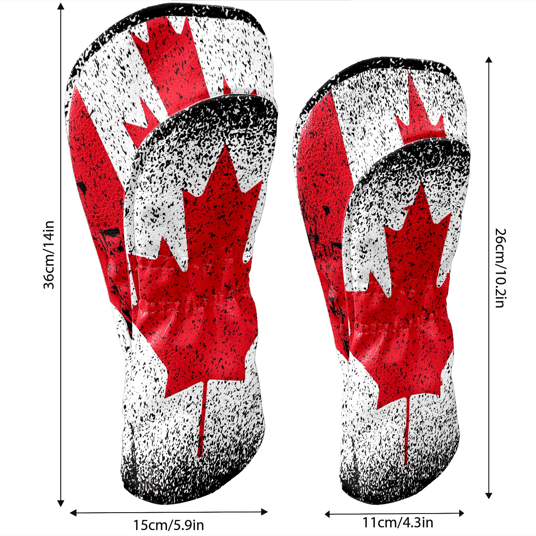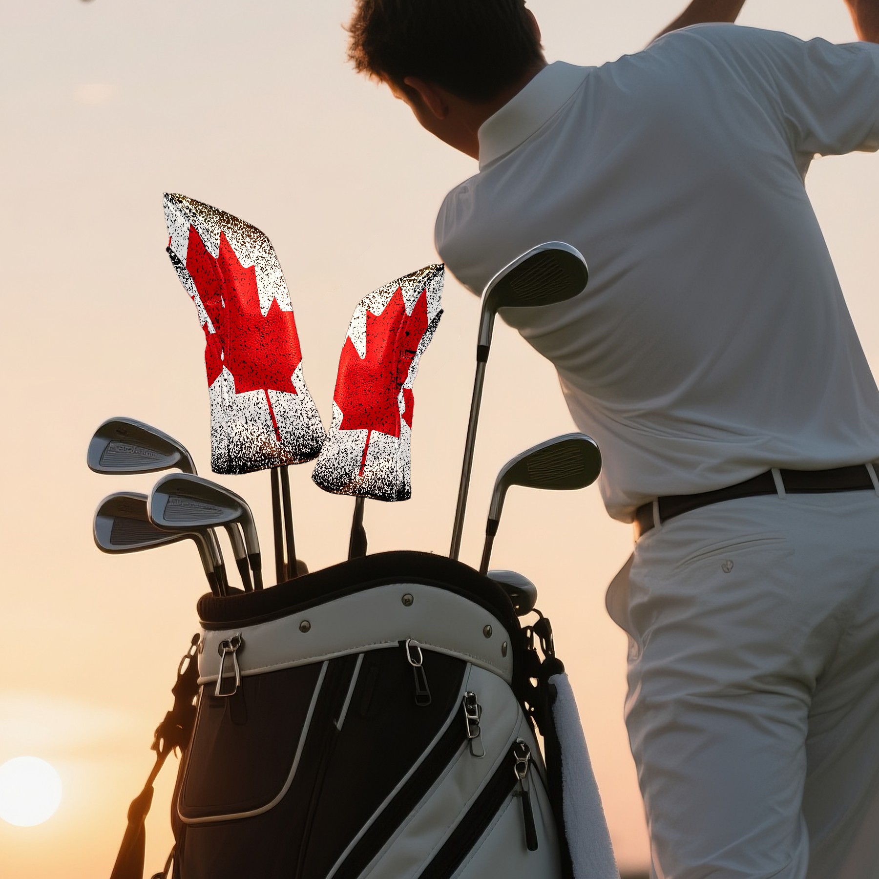 Golf Club Head Cover Premium Leather Driver Headcover, Golf Head Covers for Woods and Driver Waterproof Golf Headcovers with Anti-Scratch Lining for Men Women (Canada Grunge Flag Maple Leaf Red White Black)