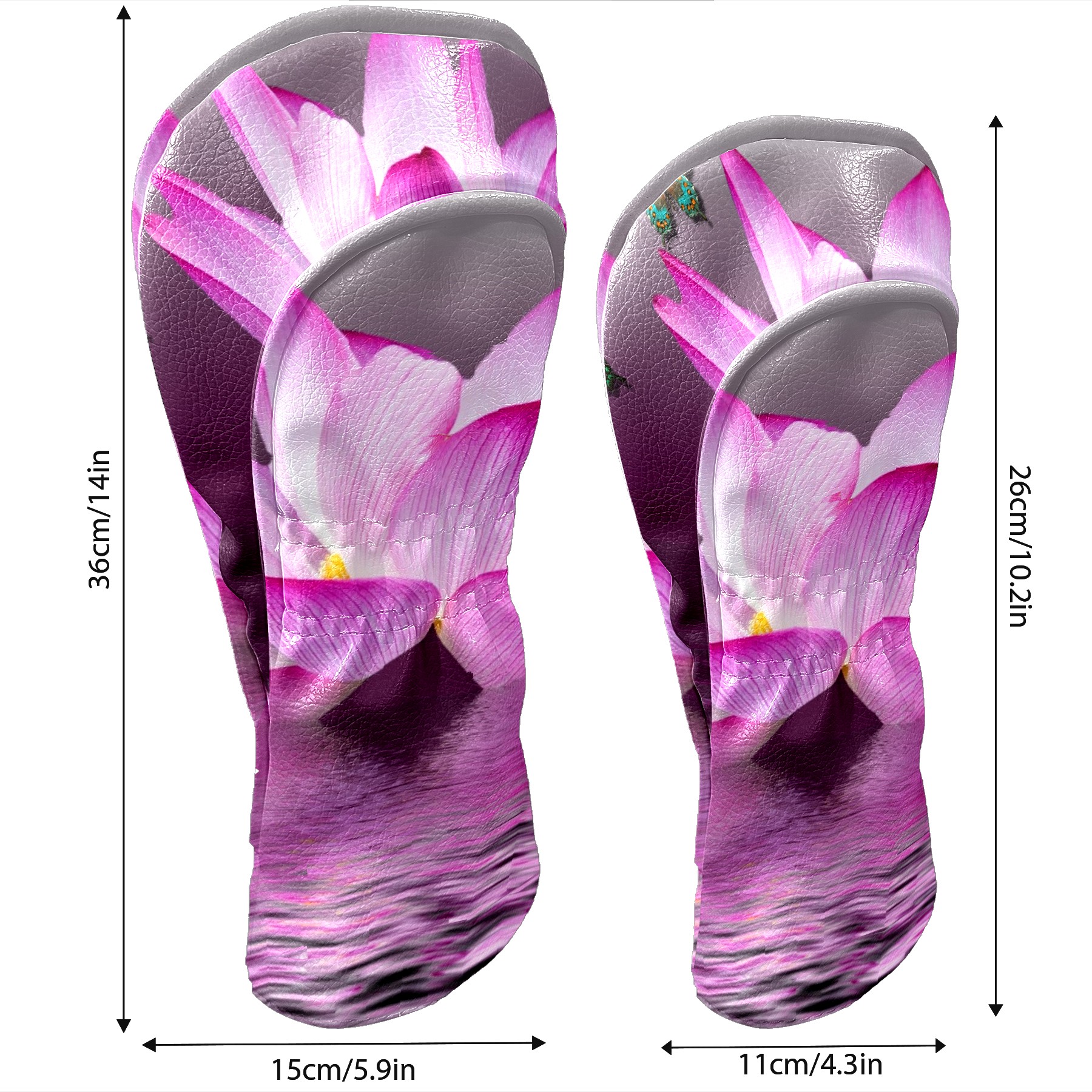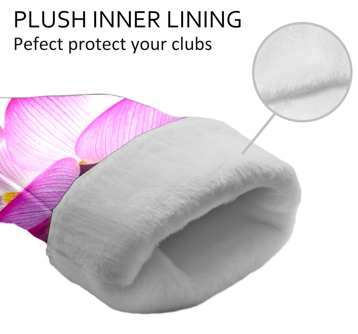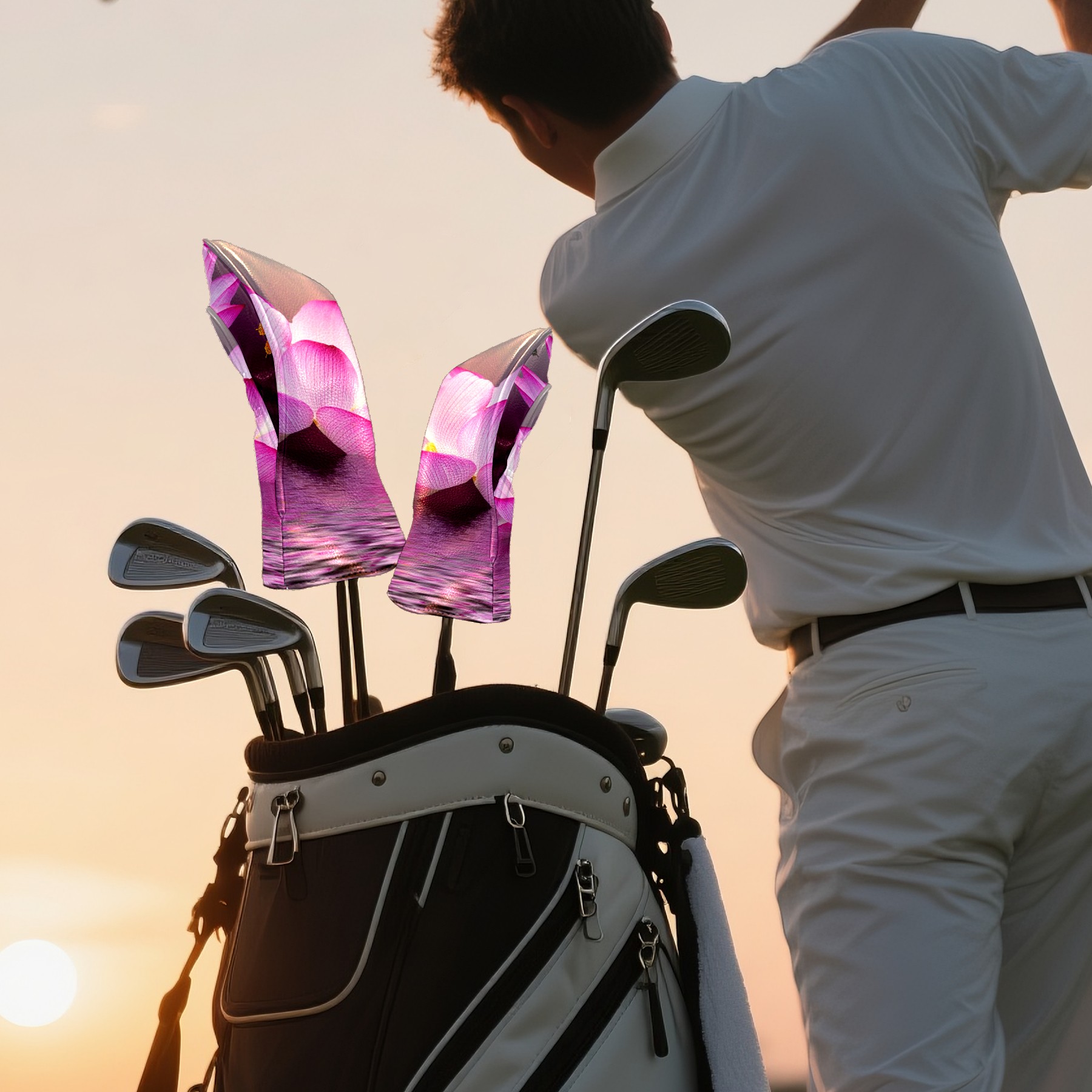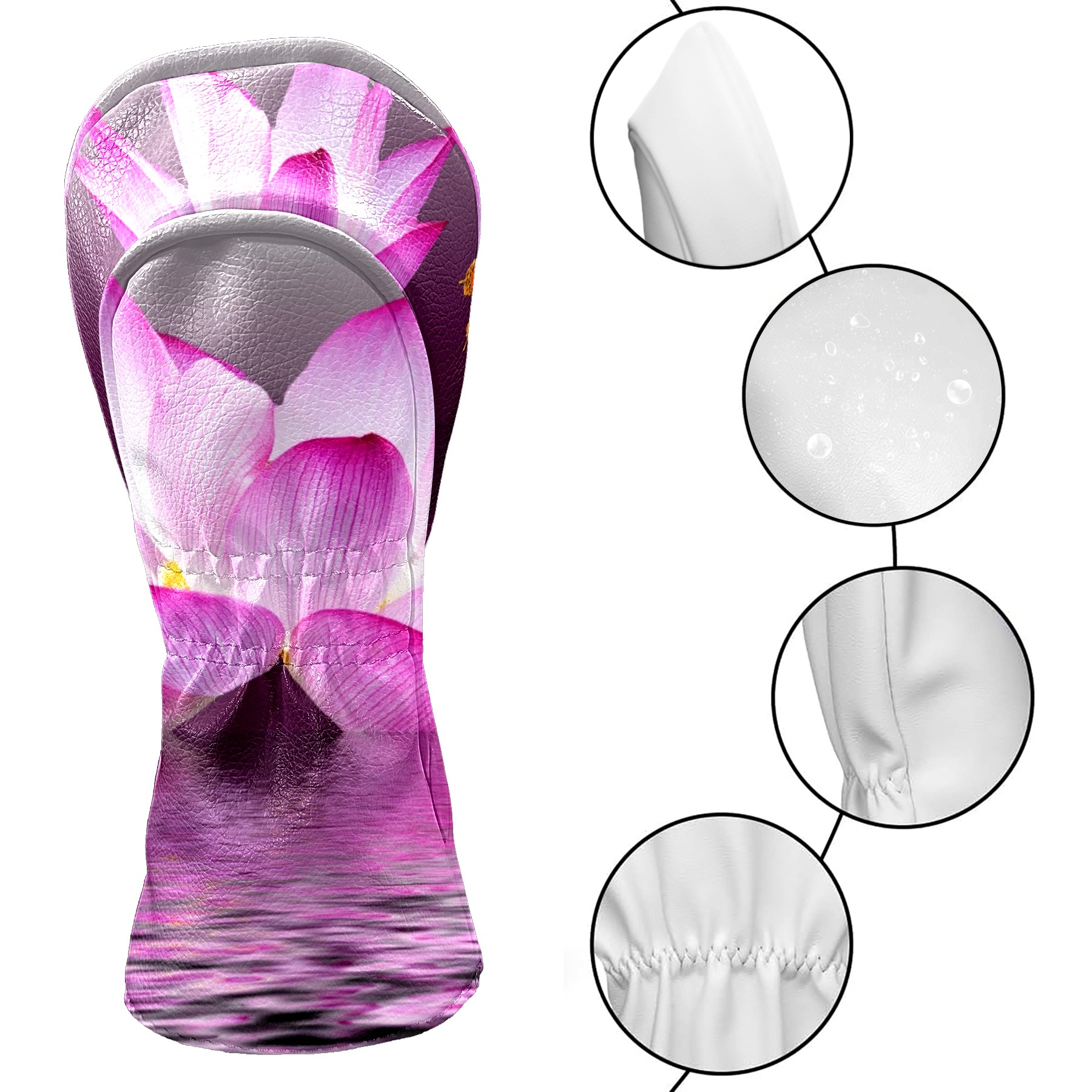 Golf Club Head Cover Premium Leather Driver Headcover, Golf Head Covers for Woods and Driver Waterproof Golf Headcovers with Anti-Scratch Lining for Men Women (Butterfly Pink Lotus Flower)