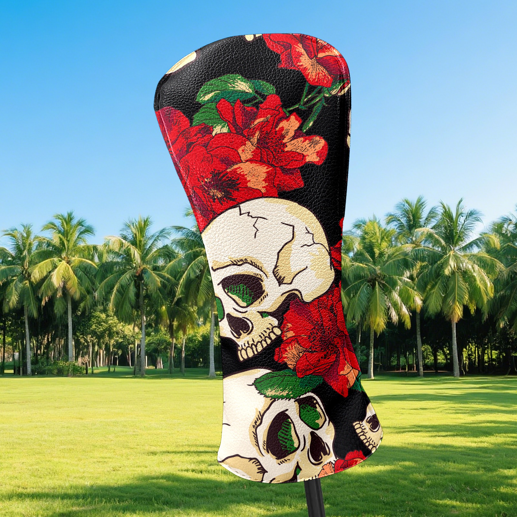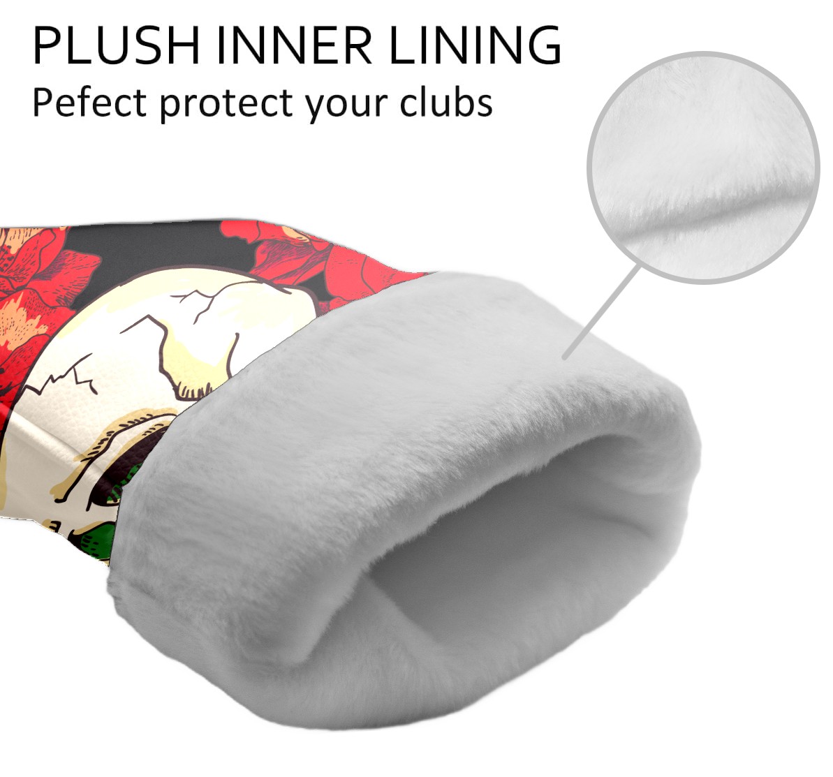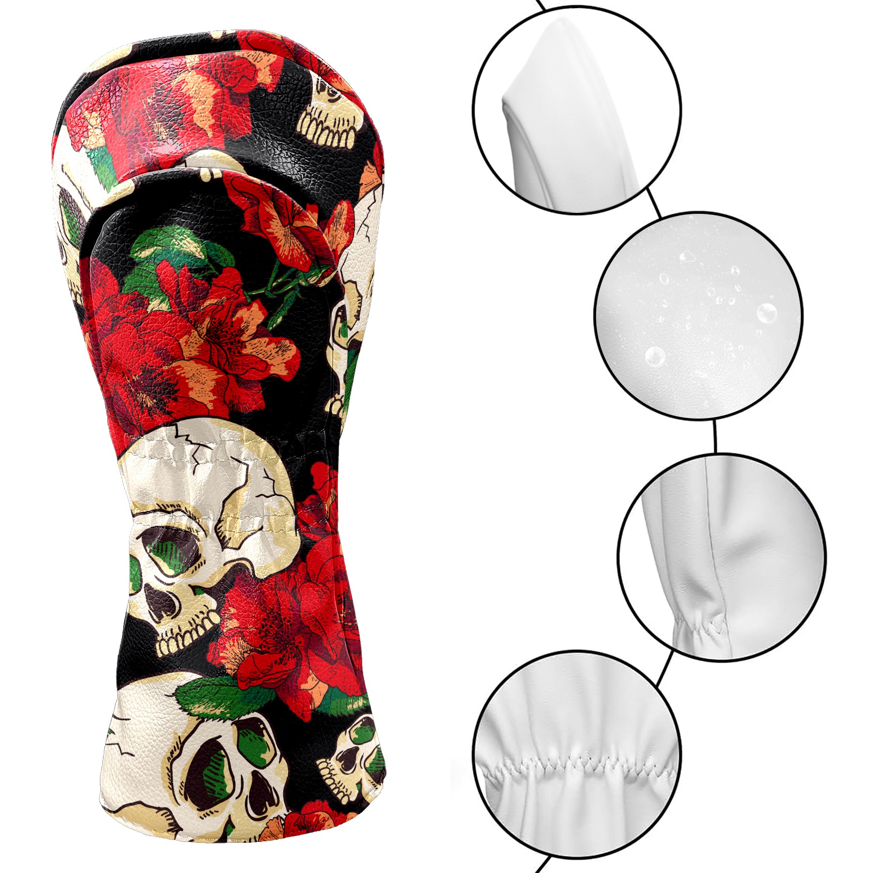 Golf Club Head Cover Premium Leather Driver Headcover, Golf Head Covers for Woods and Driver Waterproof Golf Headcovers with Anti-Scratch Lining for Men Women (Halloween Skeleton Rose)