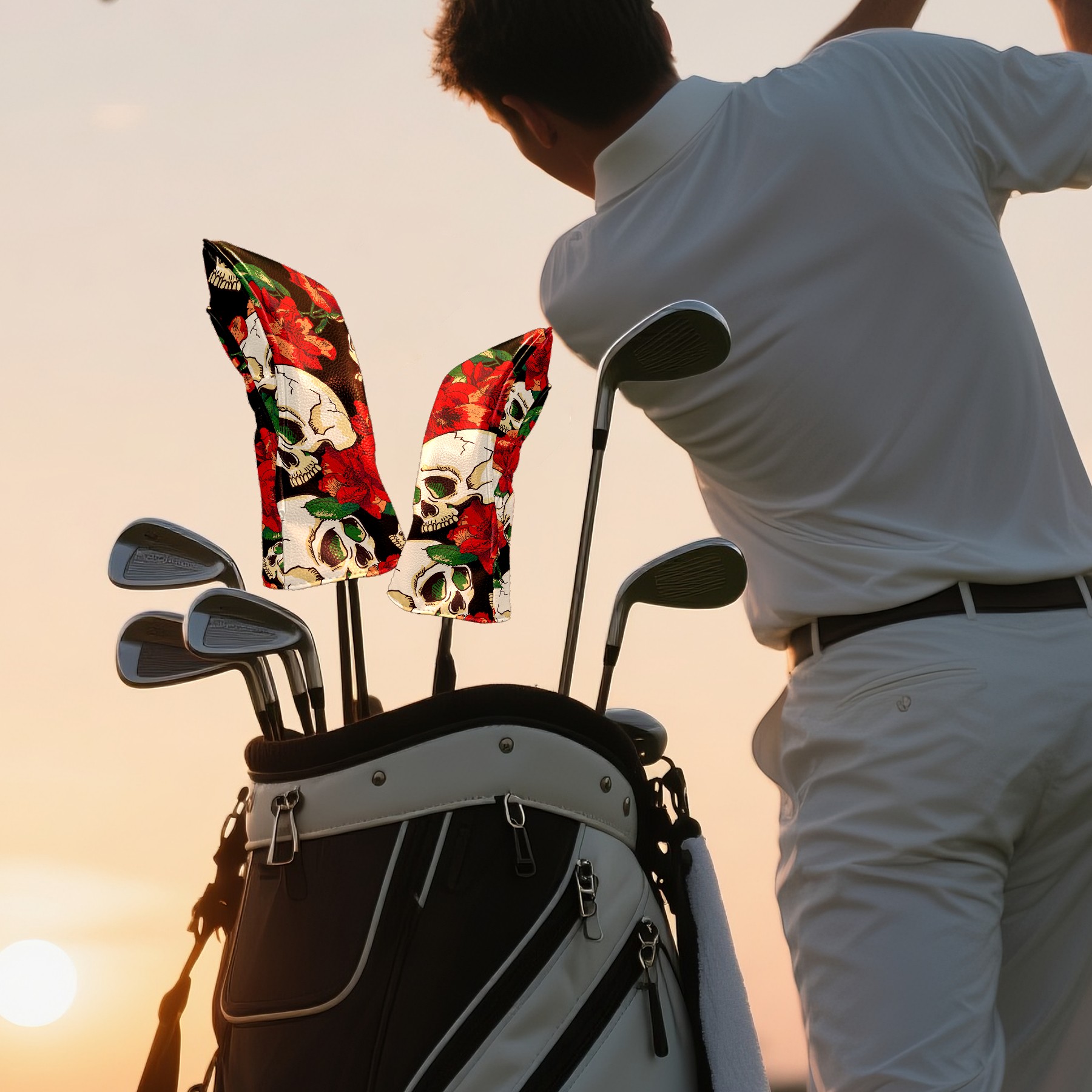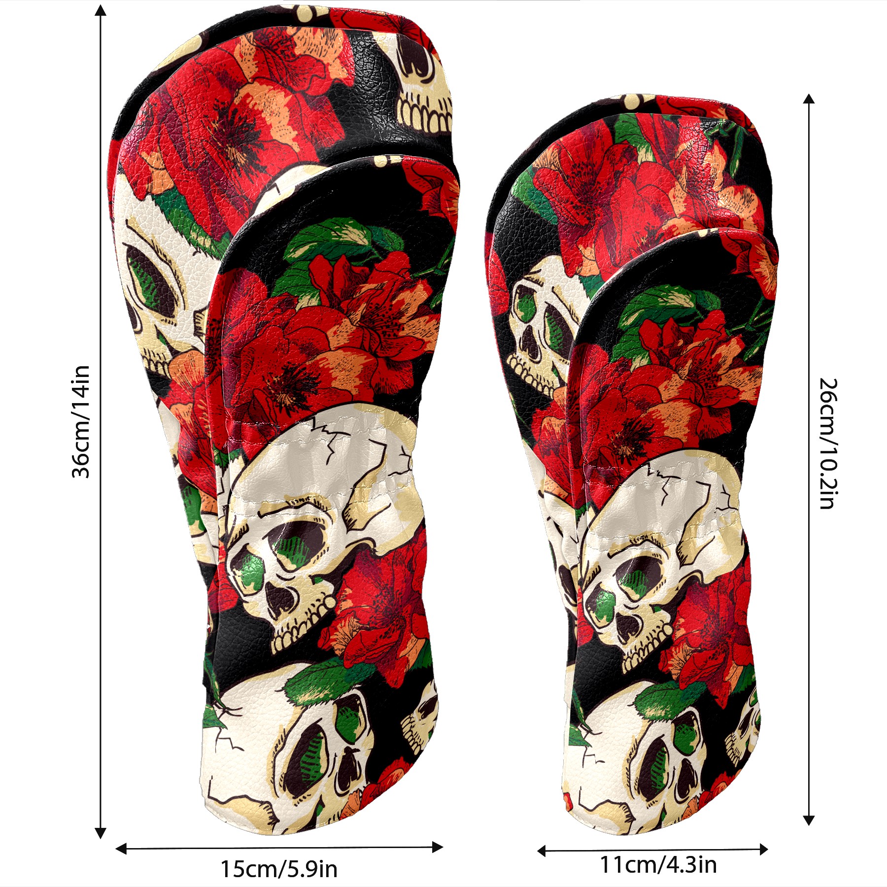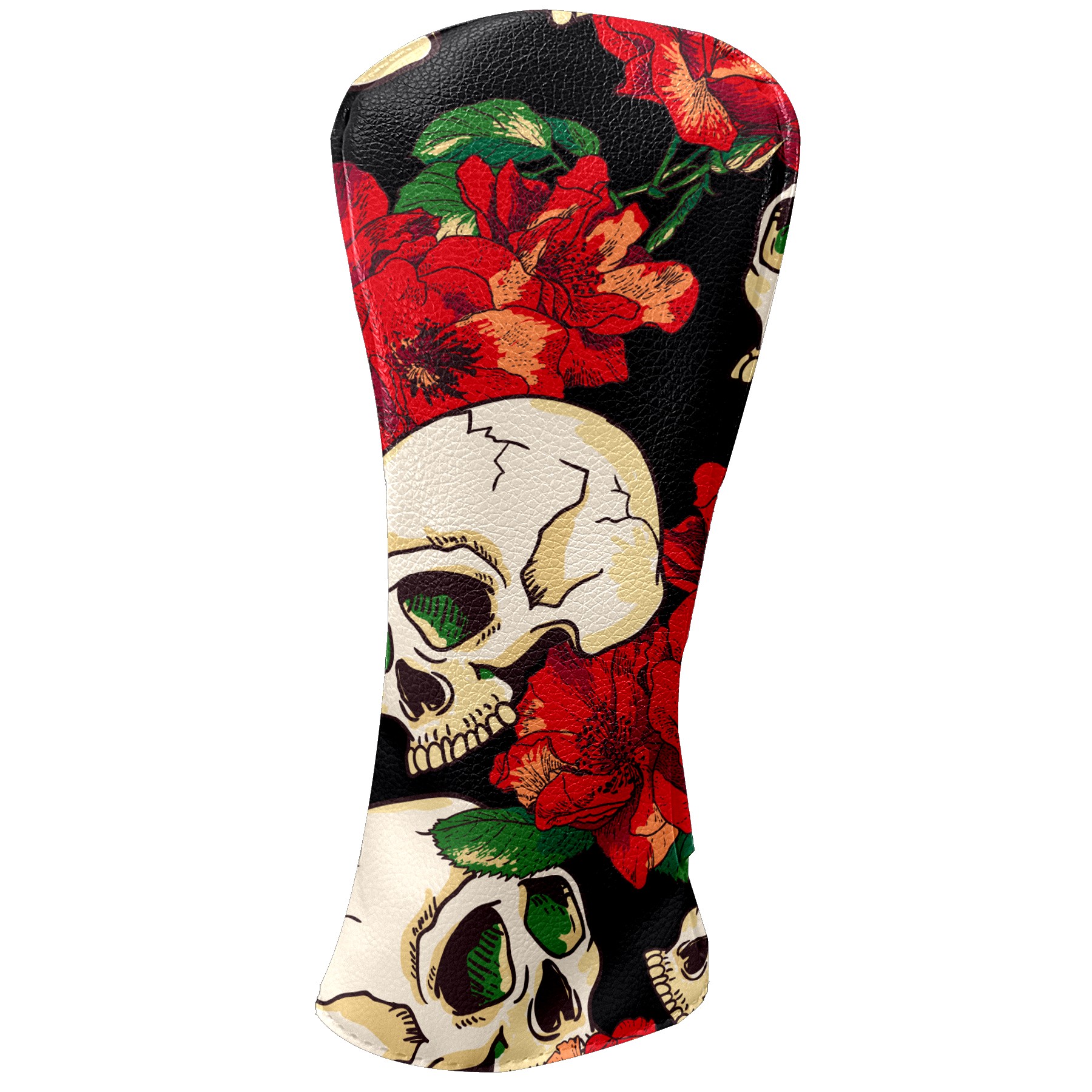 Golf Club Head Cover Premium Leather Driver Headcover, Golf Head Covers for Woods and Driver Waterproof Golf Headcovers with Anti-Scratch Lining for Men Women (Halloween Skeleton Rose)