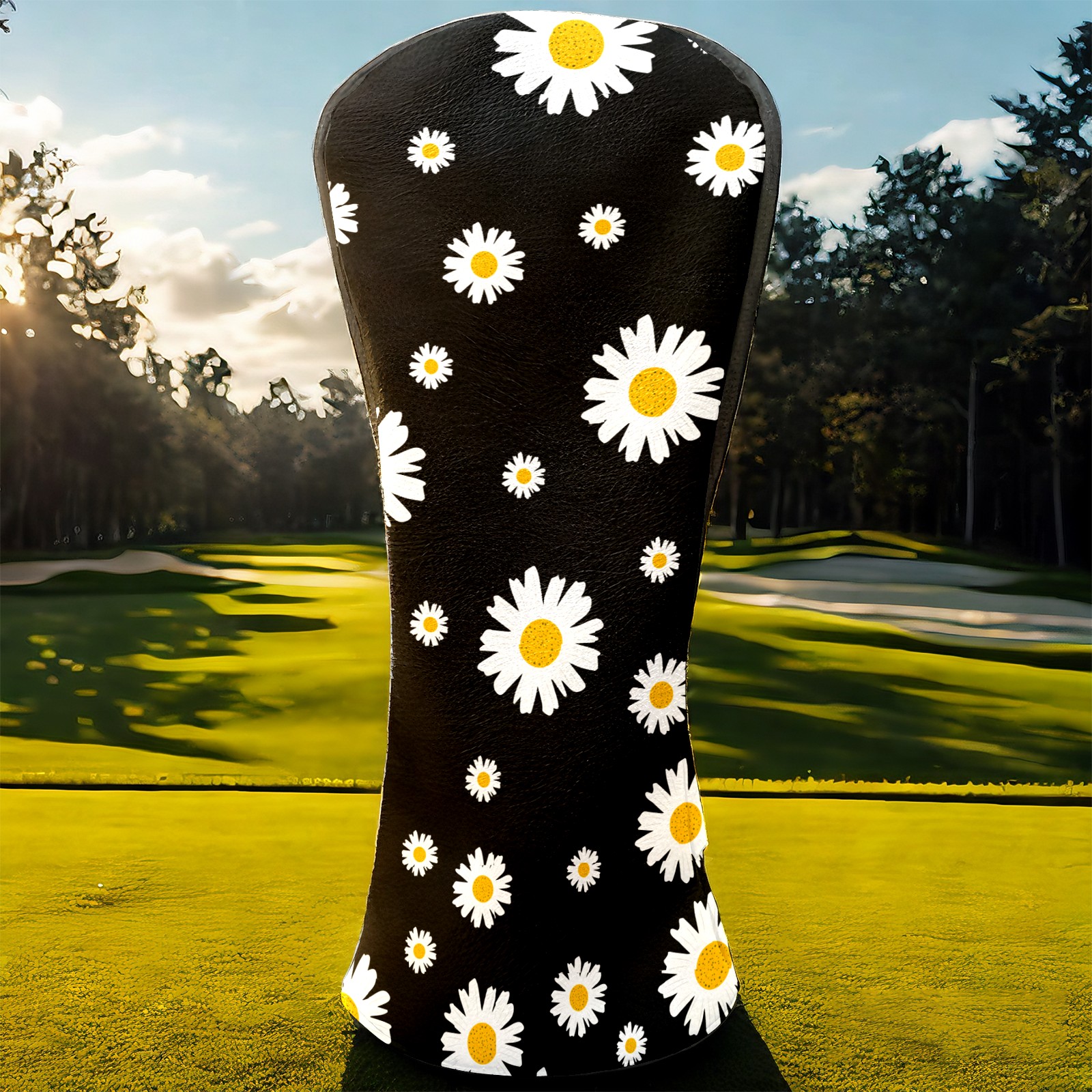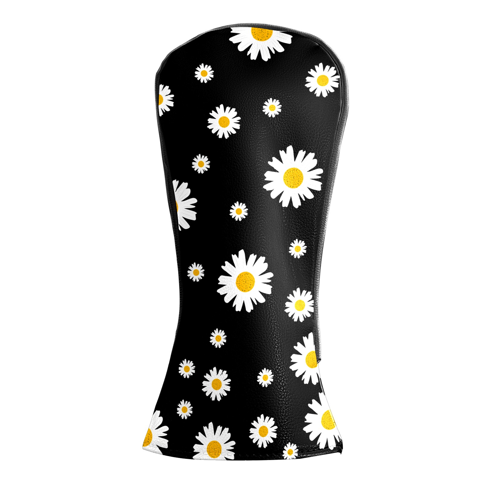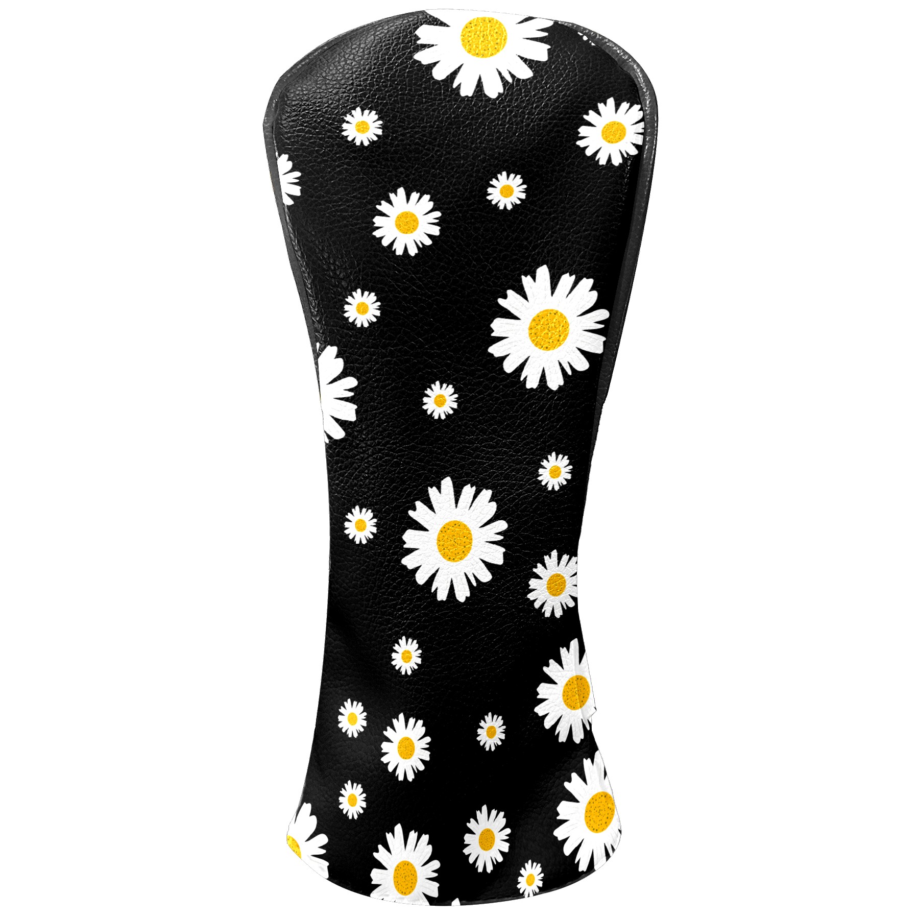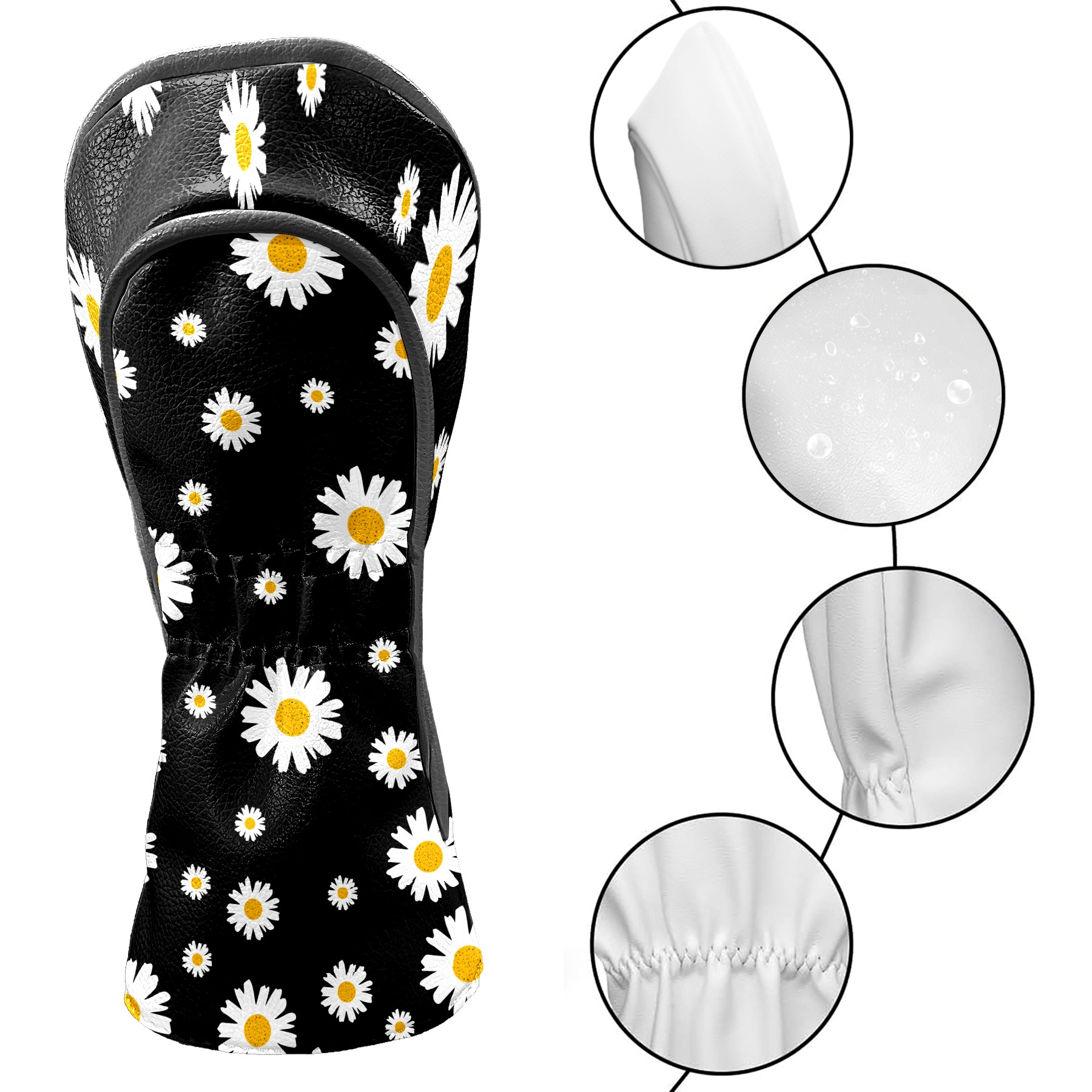 Golf Club Head Cover Premium Leather Driver Headcover, Golf Head Covers for Woods and Driver Waterproof Golf Headcovers with Anti-Scratch Lining for Men Women (White Yellow Daisy Flower Black)