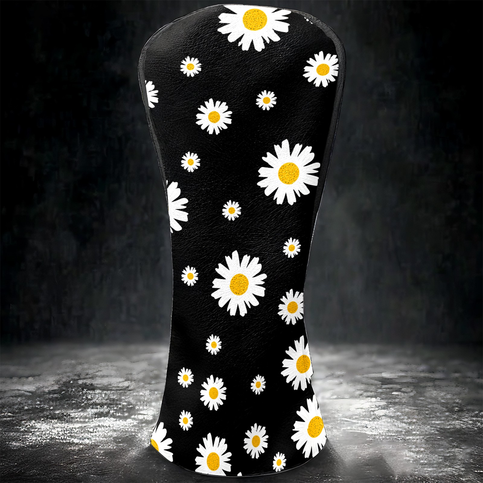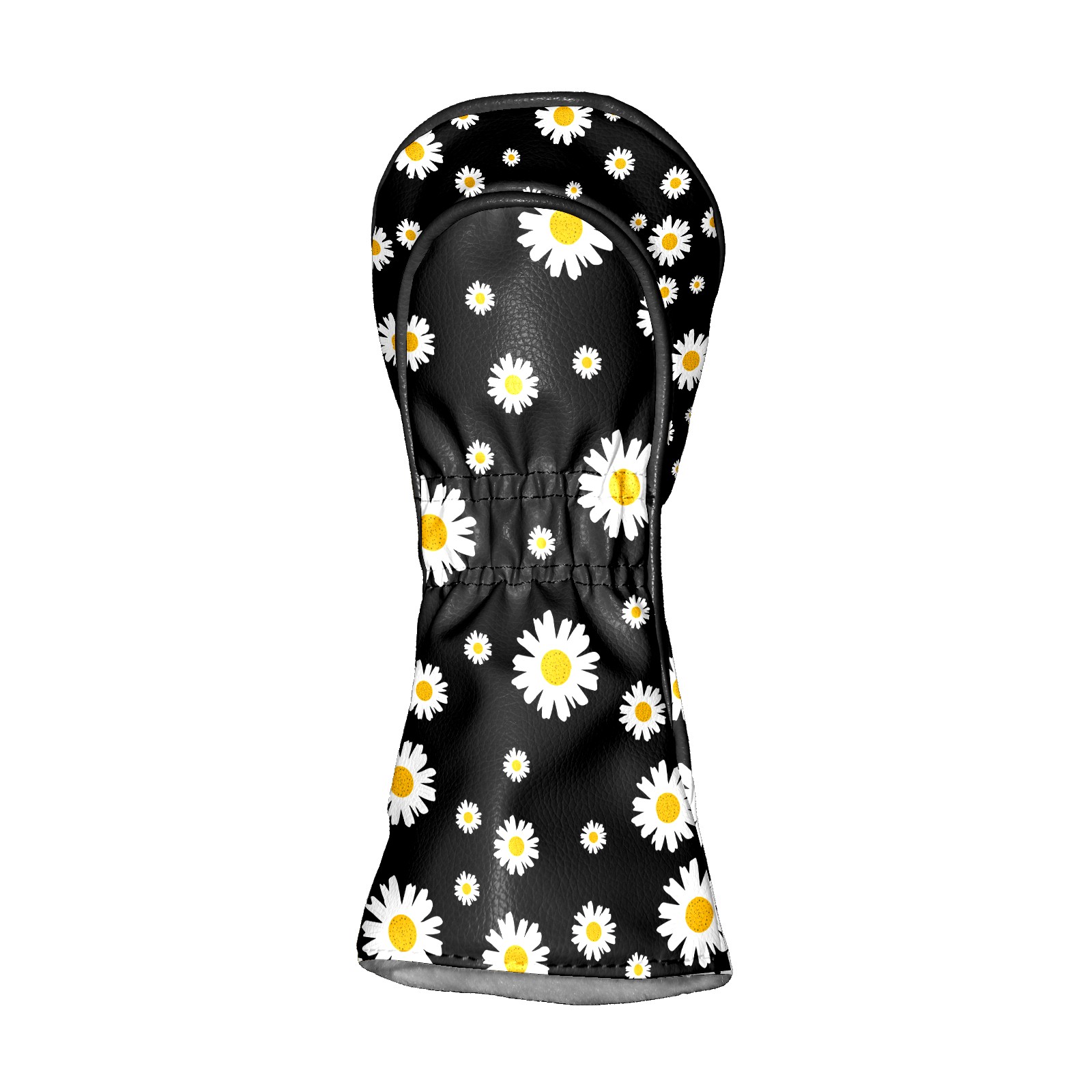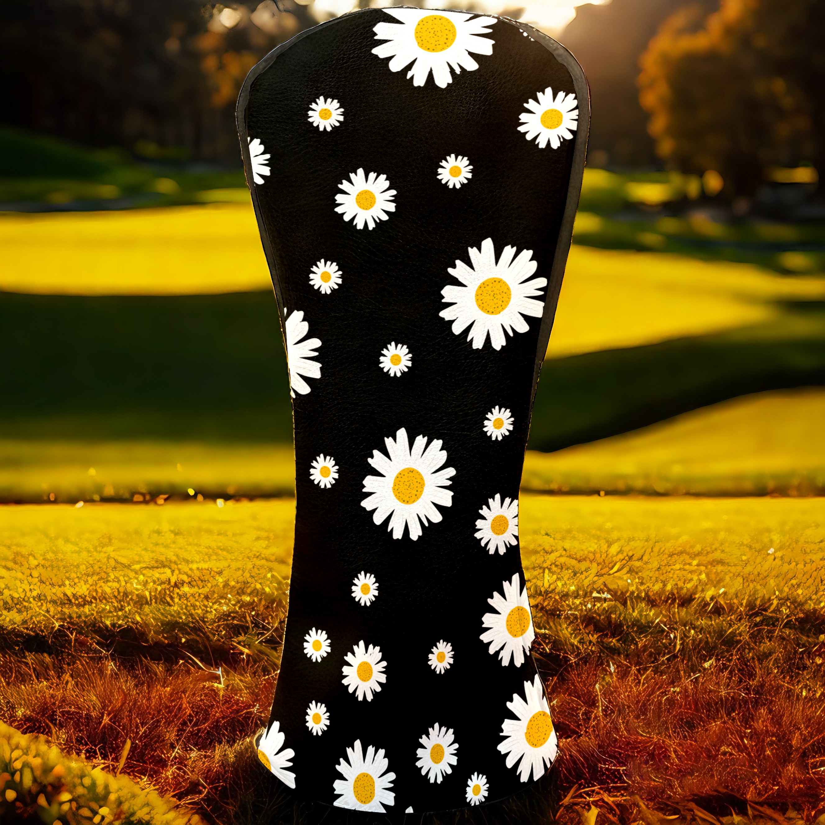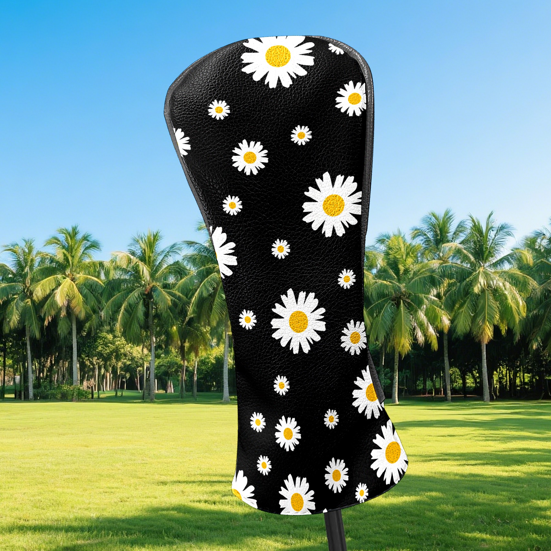 Golf Club Head Cover Premium Leather Driver Headcover, Golf Head Covers for Woods and Driver Waterproof Golf Headcovers with Anti-Scratch Lining for Men Women (White Yellow Daisy Flower Black)