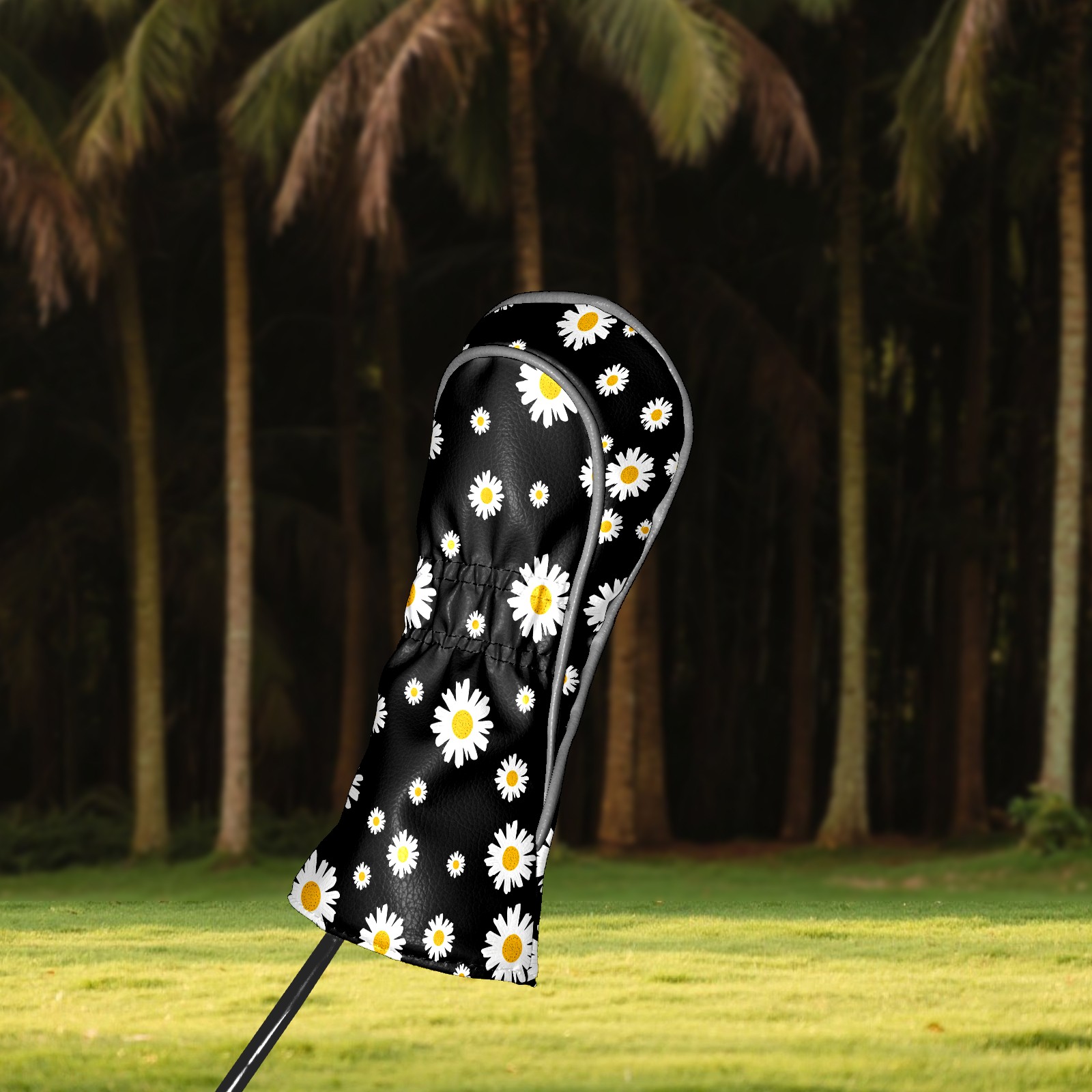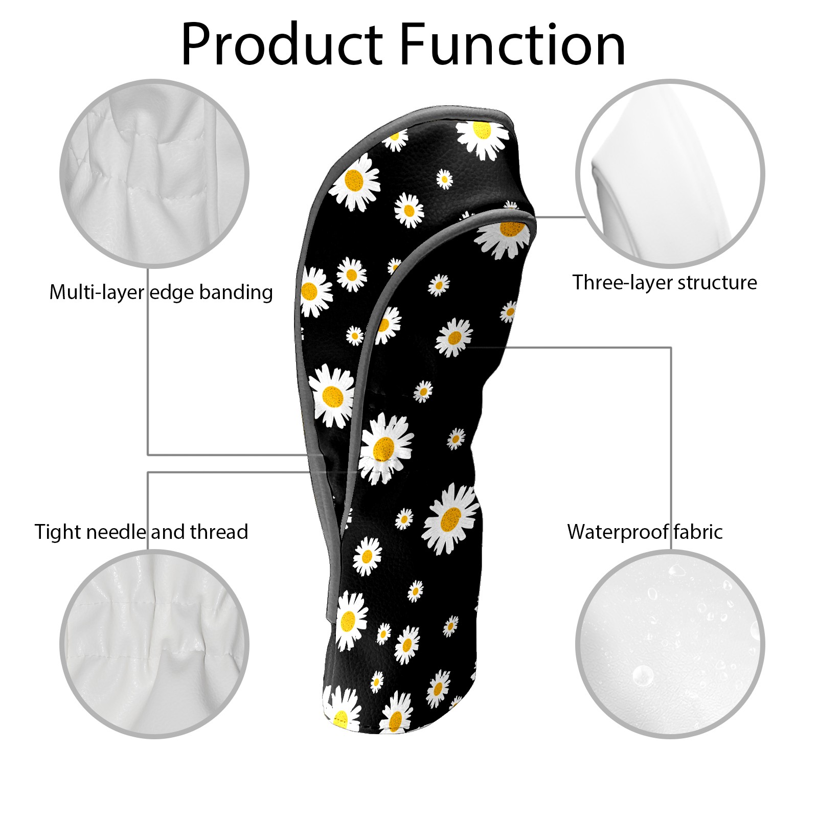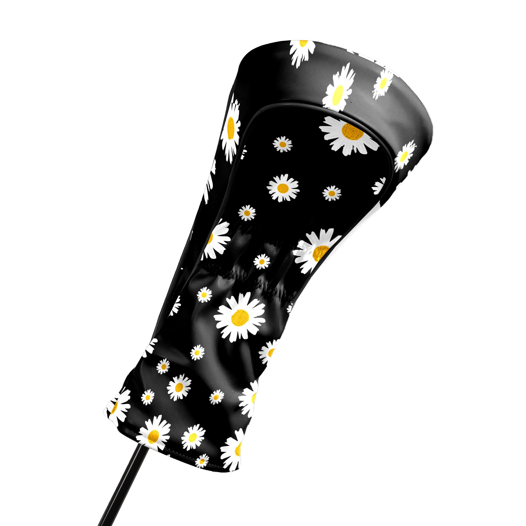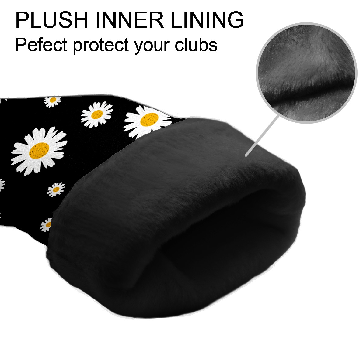 Golf Club Head Cover Premium Leather Driver Headcover, Golf Head Covers for Woods and Driver Waterproof Golf Headcovers with Anti-Scratch Lining for Men Women (White Yellow Daisy Flower Black)