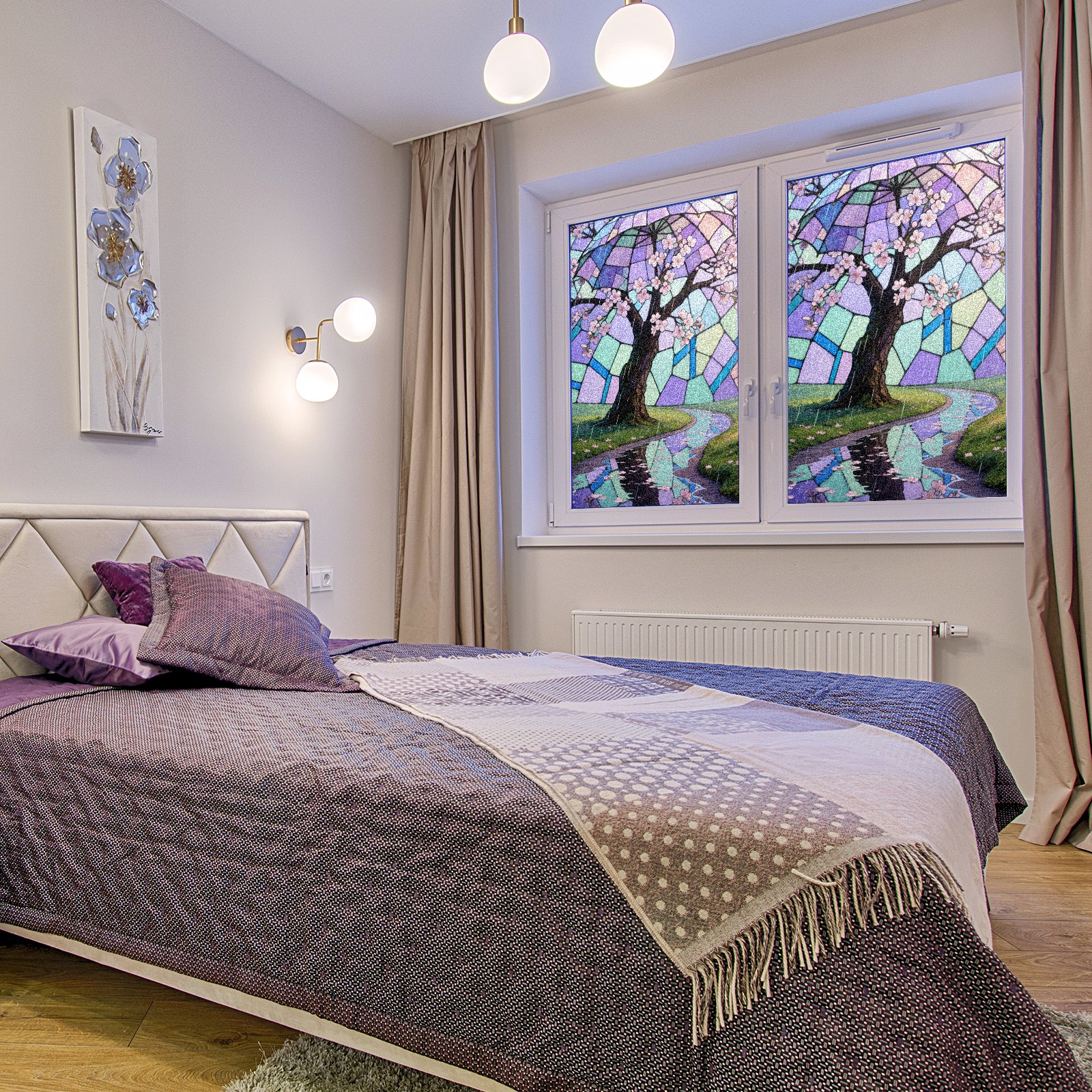 • <p>The main body is made of PET single-sided frosted material, with a smooth surface that adheres to the glass. The frosted surface forms a hazy blocking effect, effectively protecting privacy while retaining soft light.The pattern covers the entire surface of the sticker, adopting a seamless design with clear and three-dimensional texture, breaking the traditional sticker's sense of fragmentation.</p>