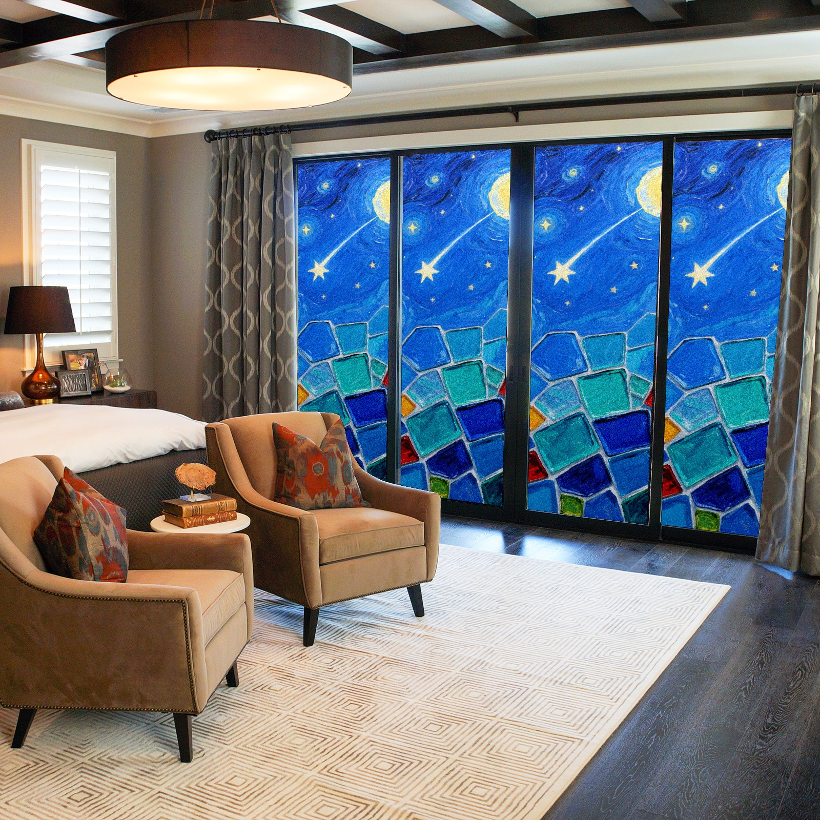 • <p>The main body is made of PET single-sided frosted material, with a smooth surface that adheres to the glass. The frosted surface forms a hazy blocking effect, effectively protecting privacy while retaining soft light.The pattern covers the entire surface of the sticker, adopting a seamless design with clear and three-dimensional texture, breaking the traditional sticker's sense of fragmentation.</p>