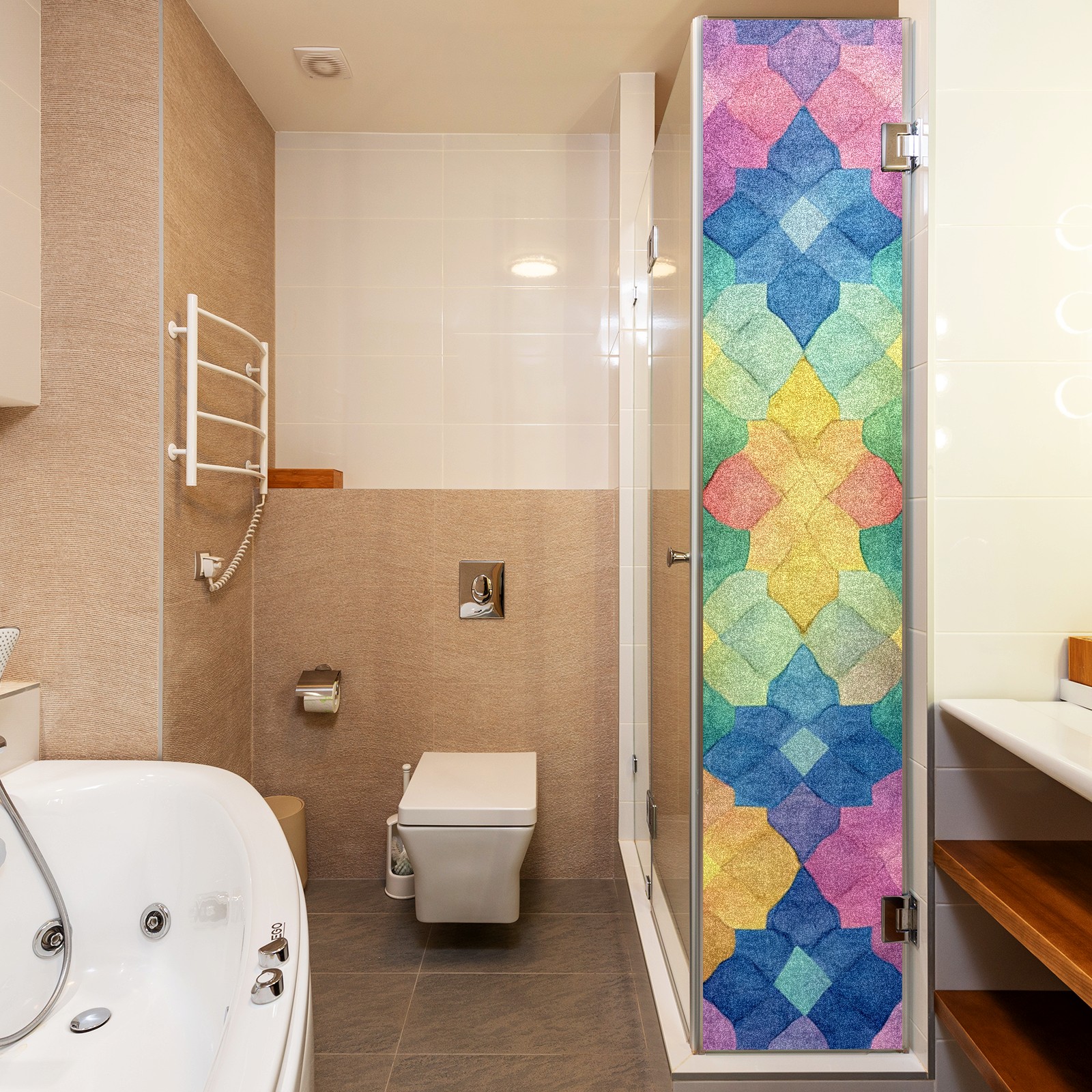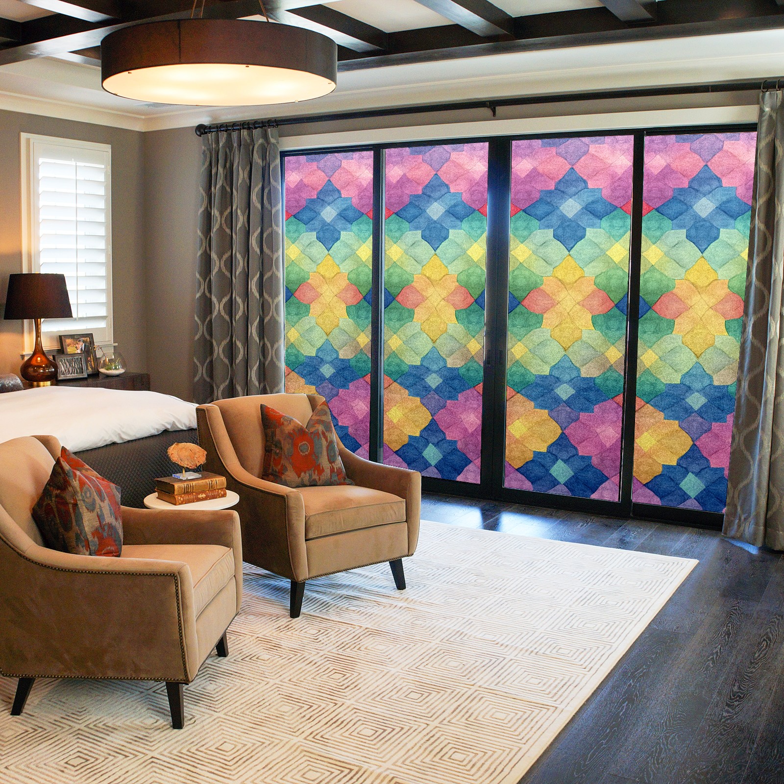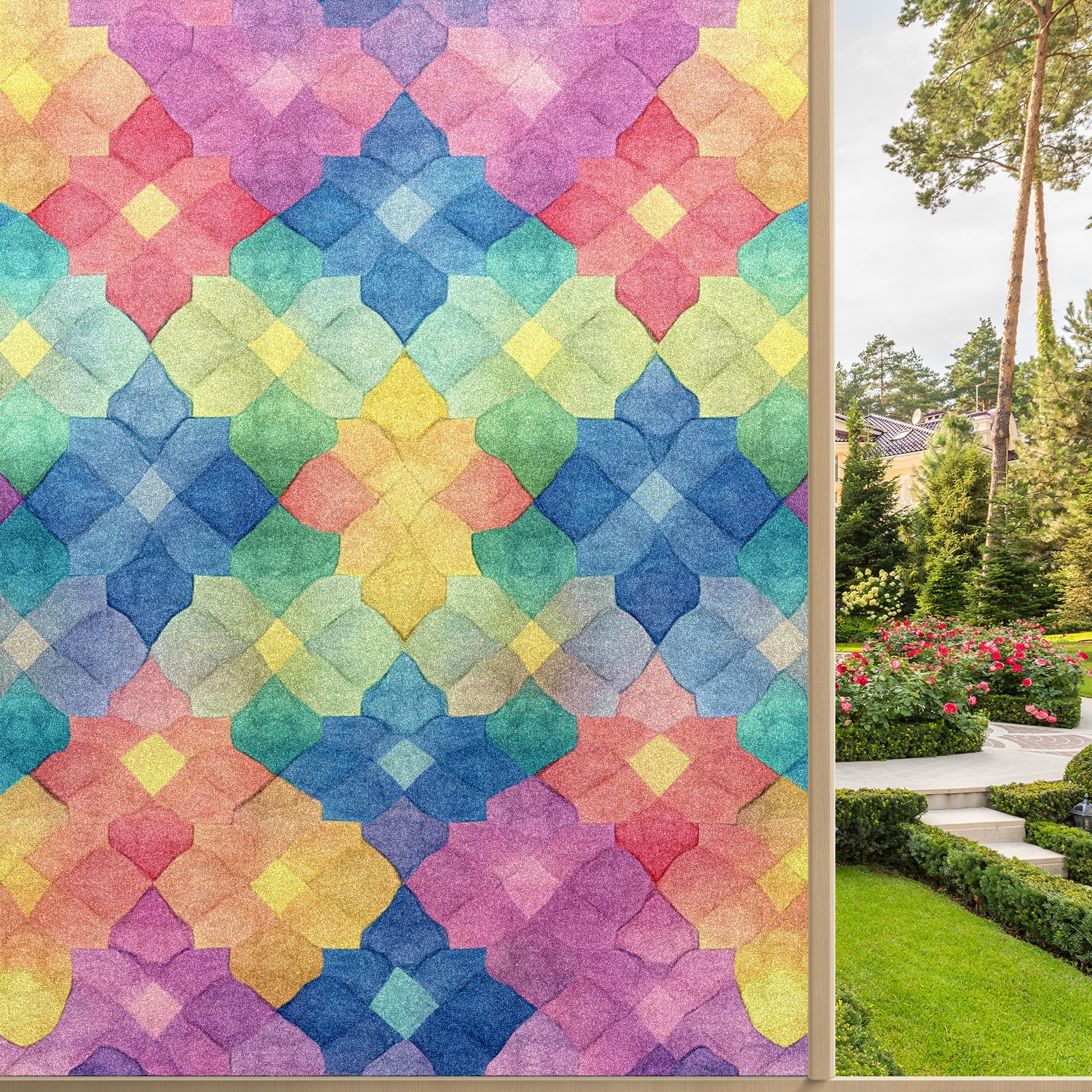 Single sided frosted full screen printed glass sticker soft pink green stripe seamless embroidery pattern privacy decoration Colorful Quilted Background